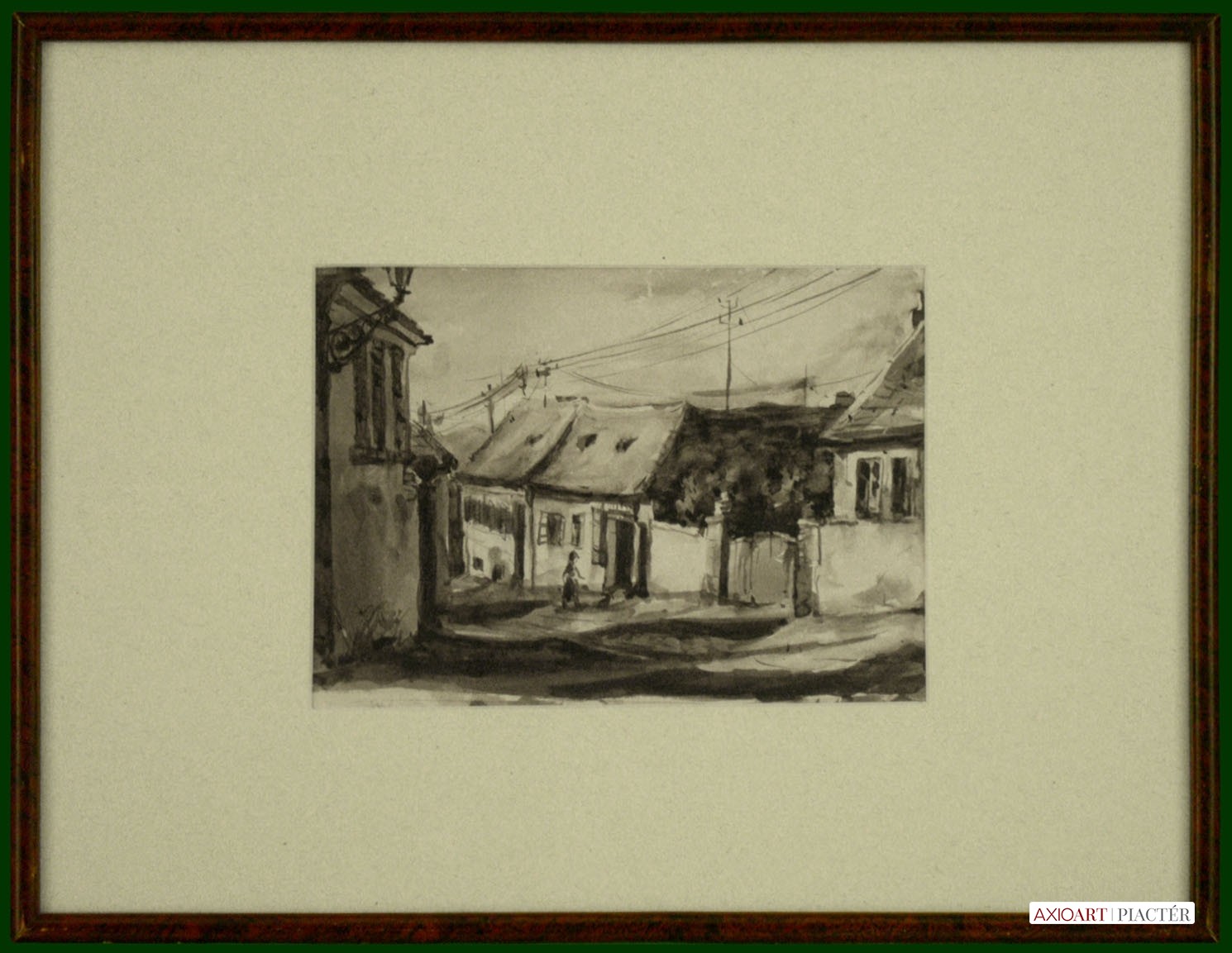 [1Y037/144] Papír tusrajz üveglap mögött, vékony léckeretben. Azonnal falra akasztható, ajándékozható állapotban. Jelezve jobbra lent: FEJÉR CS. '66 Magasság: 39.5 cm Szélesség: 60 cm Súly: 1.395 kg Fejér Csaba festő Karcag, 1936-03-25 Elhalálozott: Hódmezővásárhely, 2002. szeptember 17. 1954-1959: Magyar Iparművészeti Főiskola, díszítőfestő szak, mesterei: Z. Gács György, Rákosi Zoltán. 1962-1965: Derkovits-ösztöndíj; 1966: a XIII. Vásárhelyi Őszi Tárlat Tornyai-plakettje; 1968: Koszta József-érem, Szentes; 1970: a Római Magyar Akadémia ösztöndíja; 1971: a VII. Szegedi Nyári Tárlaton Szeged város díja; 1974, 1976: a Hatvani Tájképbiennálé közönségdíja; 1986: a Csongrád megyei Tanács alkotói díja. Hódmezővásárhelyt él. Az alföldi realisták örökségét etikai alapon felújító vásárhelyi iskola második nemzedékének prominens képviselőjeként a sorsfordulójához érkezett paraszti világ azon pillanatáról ad sajátos röntgenfelvételt, amikor a régi és az új küzdelme már eldőlt, s az egykori rideg életforma már csak töredékeiben, a külsőségek, ill. az emlékek szintjén él tovább. Verista szemléletmódja, s ezt híven tolmácsoló dokumentarista stílusa egyszerre tükröz megértést és kritikát, szenvedélyes tettvágyat és objektív kívülállást, az értékek relatív voltából adódó kétkedést és türelmes, szívós bizonyosságkeresést. Mindezt két szín, a szürke és a barna sokhangú regiszterén, lebilincselő mívességgel, a gesztusfestészet eszközbeli eredményeinek egyéni asszimilálásával adja elő. Irodalom  képei előtt, Művészet, 1970/5. SZUROMI P.: ~ vak hordárja, Hevesi Szemle, 1979/1. KOVÁCS F.: ~ festményei, Művészet, 1981/2. TASNÁDI A.: Megvallatott rekvizitumok, in: Gondolatok a képtárban, Miskolc, 1966. Egyéni kiállítások Egyéni kiállítások 1972 • Műcsarnok, Budapest • TV-Galéria, Budapest • Gulácsy Terem, Szeged 1975 • Magyar Intézet, Szófia 1980 • Csontváry Terem, Pécs (kat.) 1982 • Festőterem, Sopron. Válogatott csoportos kiállítások Válogatott csoportos kiállítások knak -, valamint a magyar művészet külföldi bemutatóinak • szerepelt a vásárhelyi iskola budapesti retrospektív kiállításain • 1964 • Vásárhelyi Tárlat 1954-1963, Magyar Nemzeti Galéria, Budapest 1974 • Vásárhelyi Tárlat 1964-1973, Magyar Nemzeti Galéria, Budapest 1979 • A hódmezővásárhelyi Őszi Tárlatok negyedszázados jubileuma alkalmából rendezett retrospektív kiállítás, Műcsarnok, Budapest. Művek közgyűjteményekben Művek közgyűjteményekben Tornyai János Múzeum, Hódmezővásárhely. Forrás: artportal.hu