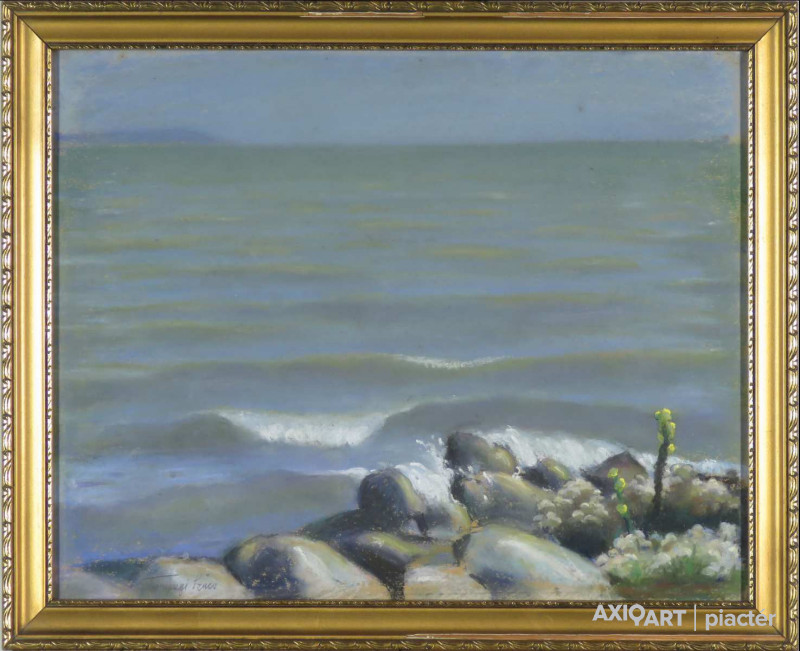 [FKB603/FL-1] A kép mérete: 60 x 49 cm keret nélkül. Készült: Pasztell, Papír A kép Jankay Tibor (Békéscsaba, 1899, Los Angeles, 1994) alkotása. Jelezve jobbra lent "Jankai Tibor" A festmény jó állapotban van. Keret: Ép Magyar festők és grafikusok életrajzi lexikona I-II. Műgyűjtők és kereskedők kézikönyve Festő és grafikus. A bp.-i Képzőművészeti Főiskolán végezte tanulmányait. Olasz-, Német- és Franciaországban, val. Ausztriában volt tanulmányúton. 1947-ben "Mártírok" címen megrázó erejű lapokat ad közre a békéscsabai Tevan kiadásában. Első budapesti kiállítása után már a bécsi Albertinában láthatók alkotásai, hogy azután New York, Cleveland, San Francisco, Pasadena és Los Angeles kiállító termei fogadják műveit. Los Angeles-ben, a George Pepperdine College tanáraként működött. 1971-ben Békéscsabán 43 temperát, 60 szén- és krétarajzot állított ki. Festői világa: házak, utcák, csatornapart, kertek és természetesen ebben a tájban élő, munkálkodó emberek, mind-mind gyermekkori emlékek. Szobrászattal is foglalkozott. (D.J.: Műv.-1971/4) Magyar festők és grafikusok életrajzi lexikona I-II. Festő, grafikus. 1918-ban kezdte meg tanulmányait a budapesti Mintarajziskolában Szinyei M. Pál és Balló Ede növendékeként. Később Vaszary Jánosnál, majd a párizsi Julian Akadémián, Drezdában és Bécsben tanult. Már a '20-as évek elejétől kezdve rendszeresen kiállította munkáit, kezdetben Békéscsabán, Gyulán és Orosházán, majd 1926-tól Budapesten, az Ernst Múzeumban a KUT művészeivel együtt, s külföldön is. A kritika már korai munkái kapcsán érzékelte Jankay biztos kompozíciós készségét; azt a képességét, hogy kevés eszközzel és kevés motívummal is képes rendet és feszültséget teremteni a képfelületen. A grafikák erejét és megkapó báját első komoly külföldi kritikája (Duisburg, 1927) is felismerte és méltányolta. Jankay első érett korszaka a '20-as évekre tehető. E korai munkái elsősorban szén- és színes krétarajzok. Párizsban dinamikus lendületű városképeket készített, az évtized végétől egyre gyakrabban használta az olajfestéket: szelíd és tompa színekkel dolgozott, témája az egyszerű emberek világa volt. E lírai, már-már idilli alkotásain az expresszionizmus erős formaegyszerűsítő tendenciája érvényesült. Az 1930-40-es évekre tehető annak a realista ízű stílusnak a kibontakozása, melynek fő motívuma ismét az egyszerű ember volt. A világos, derűs színes elkomorultak, modelljei öreg és fáradt emberek voltak. Ennek a stílusnak betetőzése a munkaszolgálatos megpróbáltatásokat, s a nejének lágerélményeit feldolgozó Mártírok c. megrázó erejű rajzalbum, melyet 1947-ben a békéscsabai Tevan Kiadó adott közre. Végső emigrációja előtt két ízben is megfordult az Egyesült Államokban. 1929 októberétől, 934 őszétől minkét alkalommal csaknem egy-egy évet töltött a USA-ban. Először Ohióban, majd öt évvel később Los Angelesben. Mindkét ott-tartózkodása komoly anyagi és művészi sikert jelentett; díjakat nyert, nagy múzeumokban szerepeltették képeit, vásároltak tőle. 1948-ban végleg kivándorolt Kaliforniában, ahol 1948-tól a University of Redlands tanársegéde, 1949-től pedig a Peperdine College tanára volt 1977-ig. Rajzot, festészetet, mintázást oktatott, s művészeti kurzusokat vezetett. Amerikában is szinte mindvégig a hazai élményeit és emlékeit festette újra, egyes motívumokat több példányban, s több variációban is. Első budapesti kiállítását követően már a bécsi Albertinában láthatók művei, hogy utána New York, Cleveland, San Fransisco, Pasadena és Los Angeles kiállító termei fogadják alkotásait. 1971-ben Békéscsabán 43 temperát, 60 szén- és krétarajzot állított ki. Festői világa: házak, utcák, csatornapart, kertek és természetesen ebben a tájban élő, munkálkodó emberek, mind-mind gyermekkori emlékek. A '80-as évek volt Jankay legtermékenyebb korszaka, festészetének legérettebb művei ekkor születtek. Ezeken nagy, összefoglaló formák uralkodnak, erős, tiszta színek ragyognak; kisméretű kompozícióit is nagyvonalúság, erős monumentális érzékre valló látásmód jellemezte. Témái csendéletek, arcok és fejek, a tengerparti sétányok alakjai, és a hazai emlékek. Vagyonát és hagyatékát (mintegy 3000 festmény, 5000 grafika, 278 db. szobor, több mint 300 vázlatkönyv, 143 tételes etnográfiai gyűjtemény, kb. 800 kötetes könyvtár) szülővárosára hagyta. (Bellák Gábor adatközlése nyomán, D.J.: Műv. 1971/4) Magyar festők és grafikusok adattára A Képzőművészeti Főiskolán tanulmányait befejezve fölkereste az európai művészet legfontosabb helyeit: Olasz- és Franciaország, valamint Ausztria legjelentősebb gyűjteményeit. Első budapesti kiállítása után már a bécsi Albertinában láthatók művei, hogy aztán New York, Vleveland, San Fransisco, Pasadéna és Los Angeles kiállító termei fogadják alkotásait. 1947-ben megrázó erejű lapokat ad közre a békéscsabai Tevan kiadásában Mártírok címen. Los Angelesben és George Pepperdie College tanáraként működik. 1971-ben Békéscsabán állított ki 43 kisebb temperát, grafikából 60 szén- és krétarajzot. - Irod.: Jankay Tibor kiállítása Békéscsabán. Művészet, 1971. 4. sz. Kortárs magyar művészeti lexikon I-III. [született Deutsch Tibor, később Jankay-Deutsch, olykor Jankai, végül Jankay] 1918 őszén kezdte meg tanulmányait a budapesti Mintarajziskolában Szinyei Merse Pál, Balló Ede növendékeként. Később Vaszary Jánosnál, majd a párizsi Julian Akadémián, Drezdában és Bécsben tanult. Már a 20-as évek elejétől kezdve rendszeresen kiállította munkáit, kezdetben Békéscsabán, Gyulán, Orosházán, 