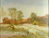 Havas táj kunyhóval olaj farost festmény barna keretben. Azonnal falra akasztható, ajándékozható állapotban.