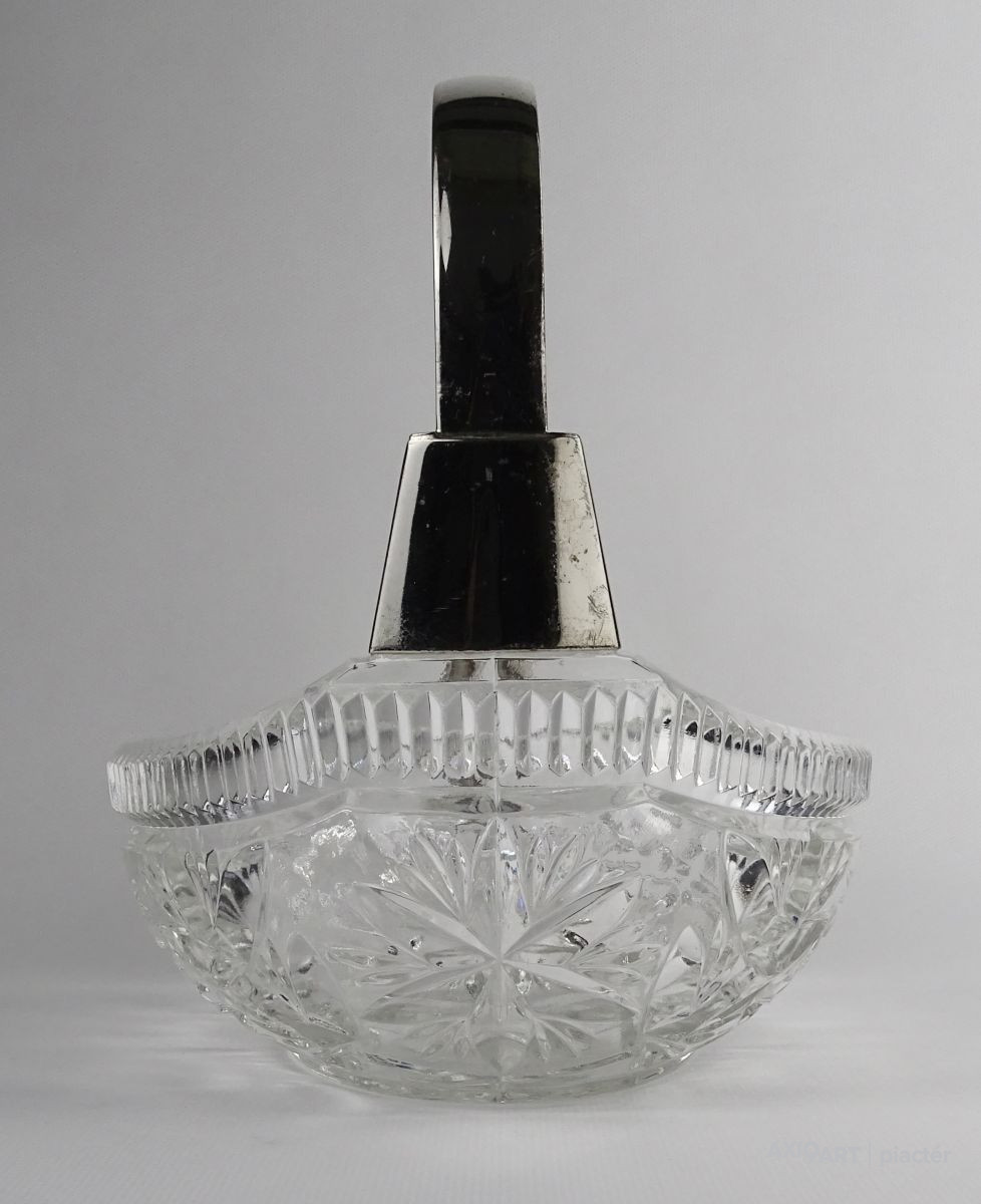 Üveg asztalközép kínáló kosár fém füllel 25 cm