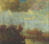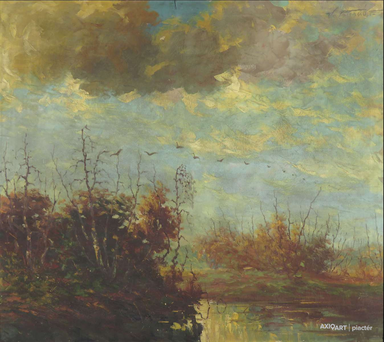 V. Faragó F. jelzéssel magyar művész 1940 körül : Folyóparti táj