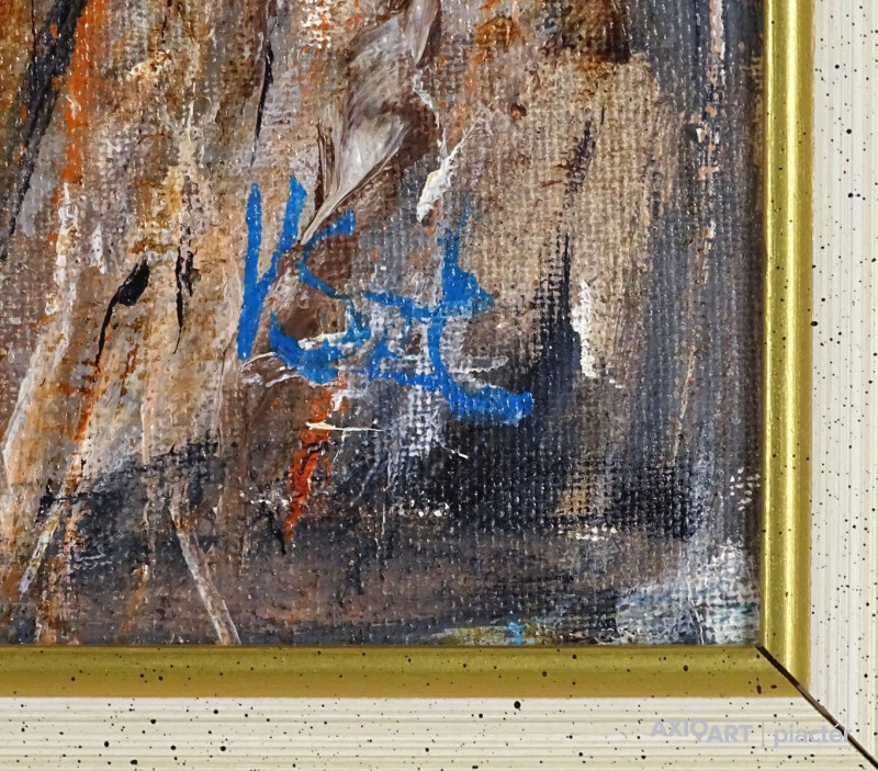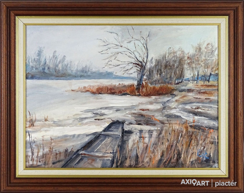 [FK0037/Z018] A kép mérete: 50 x 70 cm keret nélkül. Készült: Olaj, Vászon A kép Paizs László (Szentpéterúr, 1935) alkotása. Jelezve Jobbra lent "P. L." A festmény jó állapotban van. Keret: Ép A festmény hátoldalán a Képcsarnokvállalat címkéje található. Magyar festők és grafikusok életrajzi lexikona I-II. Festő. Tanulmányait a budapesti Iparművészeti Főiskolán végezte 1959-ben. Z. Gács György, Rákosy Zoltán és Szentiványi Lajos növendéke volt. A '60-as évek első felében hagyományosabb felfogású olajképeket festett, mozaikokat, freskókat, utóbb a pop-art körébe tartozó, a francia Arman munkáival rokon műveket alkotott. 1961 óta kiállító művész. Egyéni (Fényes Adolf Terem, Csók Galéria, Műcsarnok, Magyar Nemzeti Galéria, Halászbástya, Bástya Galéria, Vigadó Galéria, Budapest Galéria, Győr, Szombathely, Szeged, Zalaegerszeg, Duisburg, Aix-en-Provence, stb). és vegyes (Ernst Múzeum, Műcsarnok, Óbuda Galéria, Magyar Nemzeti Galéria, Csók Galéria, Vigadó Galéria, Székesfehérvár, Kaposvár, Pécs, Hódmezővásárhely, Firenze, Milano, Padova, Nápoly, Velence, Düsseldorf, Aachen, Genf, stb) tárlatokon vett részt. 1980-ban Munkácsy-díjjal jutalmazták, 1988-ban Érdemes Művész kitüntető elismerésben részesült. Munkáit őrzi a Magyar Nemzeti Galéria, a Fővárosi Képtár, a szombathelyi képtár, a pécsi Janus P. Múzeum, a székesfehérvári István Király Múzeum és a dunaszerdahelyi Kortárs Magyar Galéria. (H.B.: Műv, 1972/4, K.Gy.: Műv. 1977/2, K.G.: Műv. 1978/10, M.L.: Műv, 1983/5, R.G.: Műv, 1987/9, Sz.Gy.: Új Műv. 1995/4, MK) Magyar festők és grafikusok életrajzi lexikona I-II. Műgyűjtők és kereskedők kézikönyve Festő. Tanulmányait a bp.-i Iparművészeti Főiskolán végezte. Mozaikokat ferskókat, utóbb a pop-art körébe tartozó, a francia Arman műveivel rokon műveket alkotott. Mozaikok: a Szegedi Megyei Tanács, a Pécsi Óvoda, a Gödöllői Agrártudományi Egyetem. Freskók: Budapest - Csatárka úti Gyermekotthon. 1971-ben a Fényes Adolf Teremben volt kiállítása, 1983-ban pedig a szegedi Móra Ferenc Múzeumban nagyszabású tárlatokon mutatta be munkáit. 1988-ban érdemes művész kitüntető elismerésben részesült. (MK) Magyar festők és grafikusok adattára Az Iparművészeti Főiskolán végzett 1959-ben. Mozaikokat (Szeged, Megyei Tanács; Pécs, Óvoda; Gödöllő, Agrártudományi Egyetem), freskókat (Budapest, Csatárka úti Gyermekotthon), újabban a pop art körébe tartozó, a francia Arman műveivel rokon műveket alkotott. 1971-ben a Fényes Adolf Teremben nyílt kiállítása. 1983 februárjában a szegedi Móra Ferenc Múzeumban megrendezett nagyszabású tárlaton mutatta be alkotásait. 1988-ban érdemes művész kitüntető elismerésben részesült. - MK Művészeti lexikon I-IV. (Szentpéterur, 1935. dec. 26.- ): festő. Az Iparművészeti Főiskolán 1959-ben végzett Rákosy Zoltán, Z. Gách György és Szentiványi Lajos növendékeként. Épületdiszítő mozaikokat, (Szeged, Megyei Tanács, 1961; Pécs, Óvoda, 1964), műanyagfreskókat (Bp., Csatárka úti Gyermekotthon, 1964) és gobelinterveket készít. Kortárs magyar művészeti lexikon I-III. Festő, szobrász, grafikus. 1959: MIF, mesterei: Z. Gács György, Rákosy Zoltán, Szentiványi Lajos. 1980: Munkácsy-díj; 1988: érdemes művész. Főiskolás éveinek második felében, majd azt követően számos murális munka kivitelezésében vett részt, Fónyi Géza, Konecsni György, Z. Gács György, Rákosi Zoltán és Domanovszky Endre mellett dolgozva. A 60-as évek első felének hagyományosabb fölfogású olajképeket festett. 1964-ben a Velencei B.-n megismerkedett az amerikai pavilonban a pop art Európában akkor még újnak számító törekvésével, és részben ez inspirálta, hogy 1967-ben textil, fém, bőr anyagú "varrottas" képeket küldjön az FKS éves tárlatára; a megnyitó előtt többek között az ő munkáit is eltávolították a falról. A 70-es években pop art-os objekteket (A trónörököspár politikai gyilkosság áldozata lett, 1970, plexiüveg, újság, szarvasbogarak), majd konstruktív, átlátszó plexiüveg plasztikákat készített belső fénytörő határfelületekkel. A 80-as években készültek az anyagában színezett, konstruktív, nagyméretű poliészter szobrai, majd színes poliészter táblaképeket alkotott, mesterségesen roncsolt felületekkel, mintha régészeti leletek vagy atomtámadás utáni festmény-szurrogátumok lennének. Ekkor kezdett organikus plaszikájú bronzszobrokat is mintázni. A 90-es években, a táblaképek és szobrok mellett nagyméretű, egyedi grafikákat készített, formavilágában némileg a roncsolt táblaképekből kiindulva, de szinte kizárólag az emberi alakból elvonatkoztatott torzókat megjelenítve. Ek: 1966: Művészklub, Győr; 1971: Fényes A. T.; 1972: Bercsényi 28-30 G.; 1973: BME B-épület; 1976: Csók G.; 1977: G. Hildebrandt, Duisburg (NSZK); 1979: Bástya G., Halászbástya; Helyőrségi Műv. H., Nagyatád; József A. Műv. Közp., Szeged; Göcsej M., Zalaegerszeg; 1982: Bezzegh G., Küsnacht (CH); 1983: Móra F. M., Szeged; 1987: Műcsarnok (kat.); MNG; 1988: Pandora G., Badacsonytomaj; 1989: Parktheatter, Iserlohn (NSZK); Qualitas G.; Hevesi S. Színház, Zalaegerszeg; 1990: Vasarely Fondation (Ferdinánd Judittal, Fóth Ernővel), Aix-en-Provence (FR); 1994: Vigadó G.; 1997: Pest Center G.; 1998: Budapest G. (kat.); 1999: Pest Center G. (kat); G. Arcis, Sárvár; MMA, Bp.; 2001: SZK, Szhely; Ernst M. (kat.) Vcsk: 1961, 1964, 1966: FKS, Ernst M.; 1962: 9. Magyar Képzőműv. kiállítás, Műcsarnok; 1967: Mai magyar festészet, Új-Delhi; 1969: Vas megyei művészek, Savaria M., Szhely; V. Orsz. Grafikai B., Miskolc; 1971: Új művek, Műcsarnok; 1972: Fiatal művészek Budapestről. Likovni Salon, Újvidék (YU); 1972, 1973: Balatonboglár