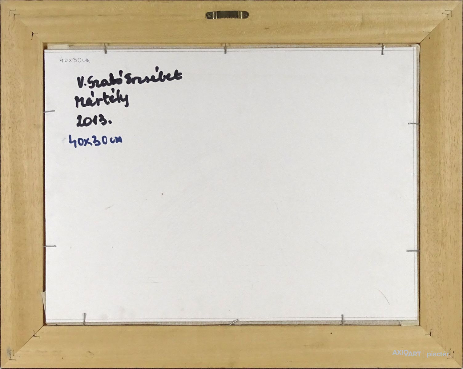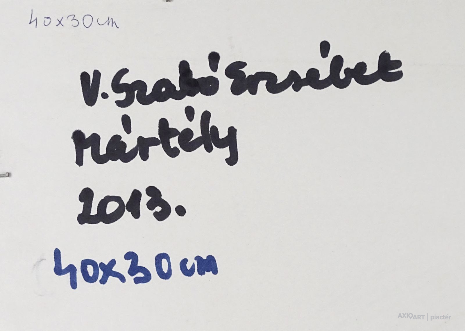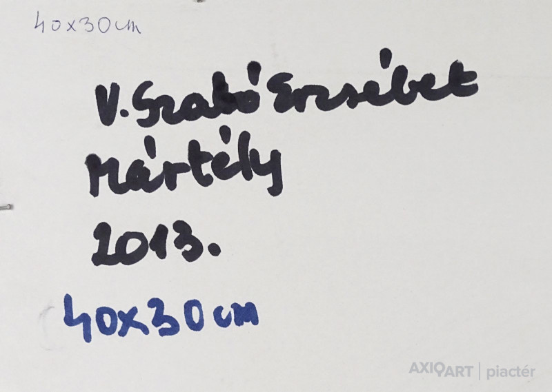 [1I371/048] 25% ÁRENGEDMÉNY MINDEN TERMÉKÜNKRE Dec. 14-ig Olaj vászon festmény hibátlan állapotú keretben, akasztási lehetőséggel. Azonnal falra akasztható, ajándékozható állapotban. Jelzés jobbra lent: VSZE Hátoldalán felirat: V. SZABÓ ERZSÉBET MÁRTÉLY 2013 40X30CM Magasság: 40 cm Szélesség: 50 cm Súly: 0.91 kg