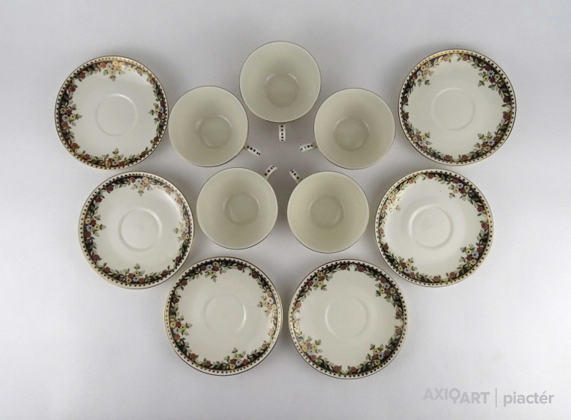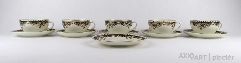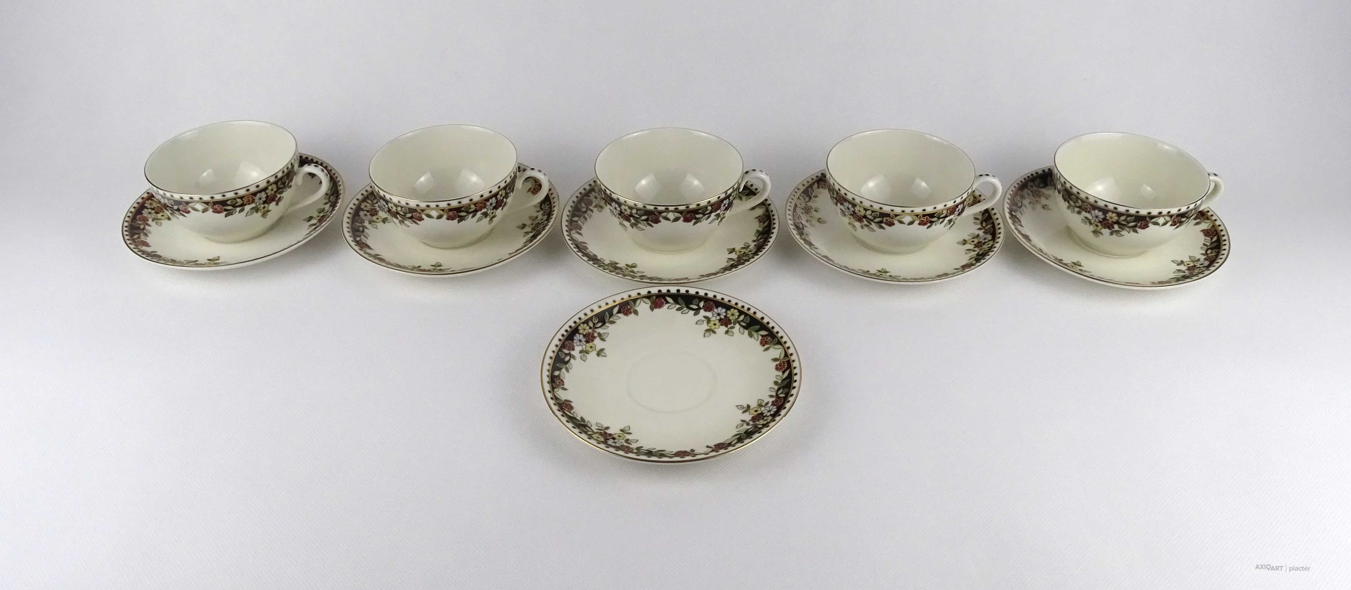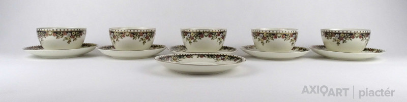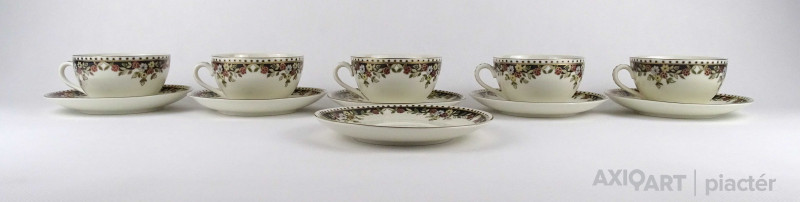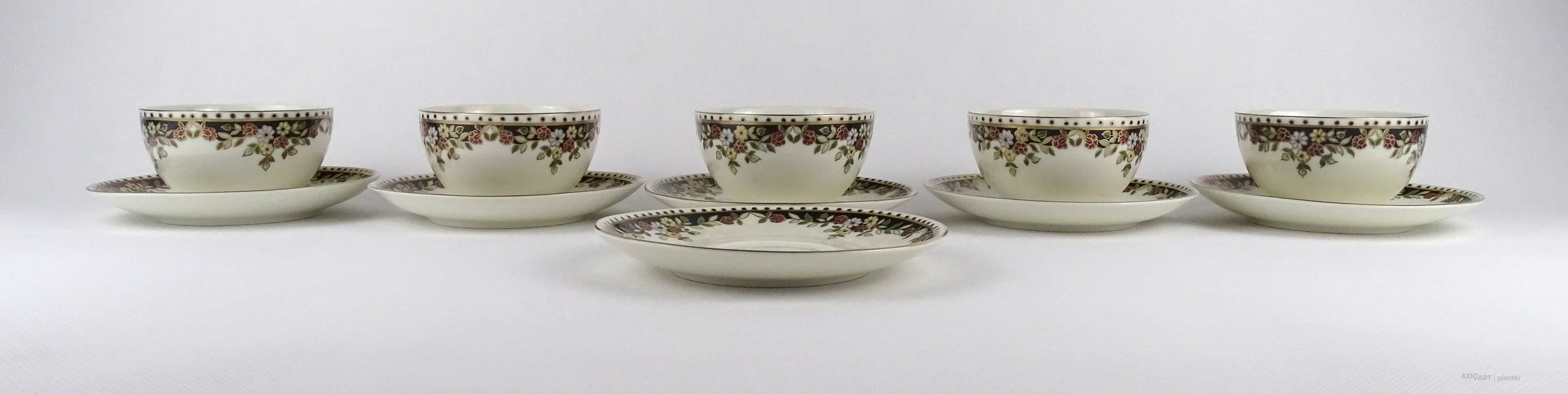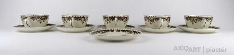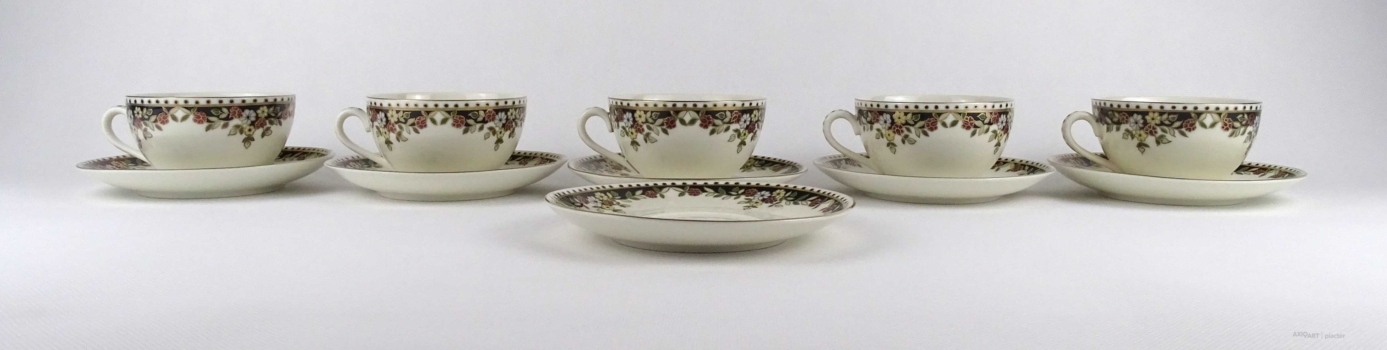 Hibátlan állapotú, vajszínű, Sissy mintás Zsolnay porcelán 5 személyes, 11 darabos teás csésze készlet.