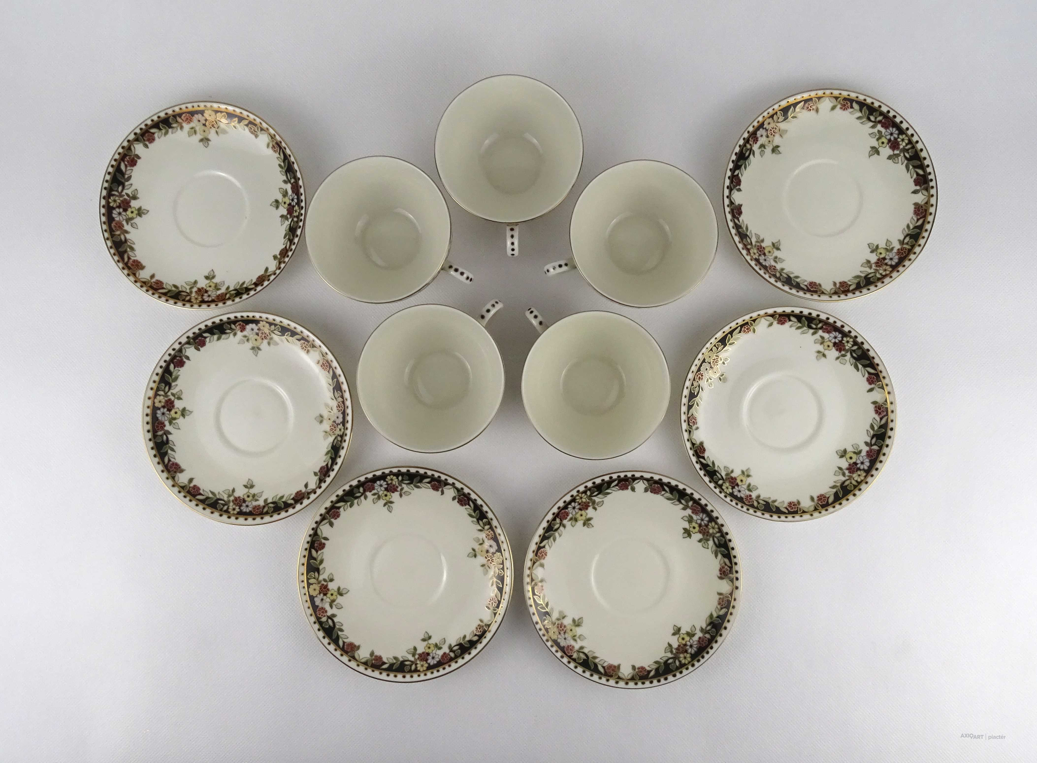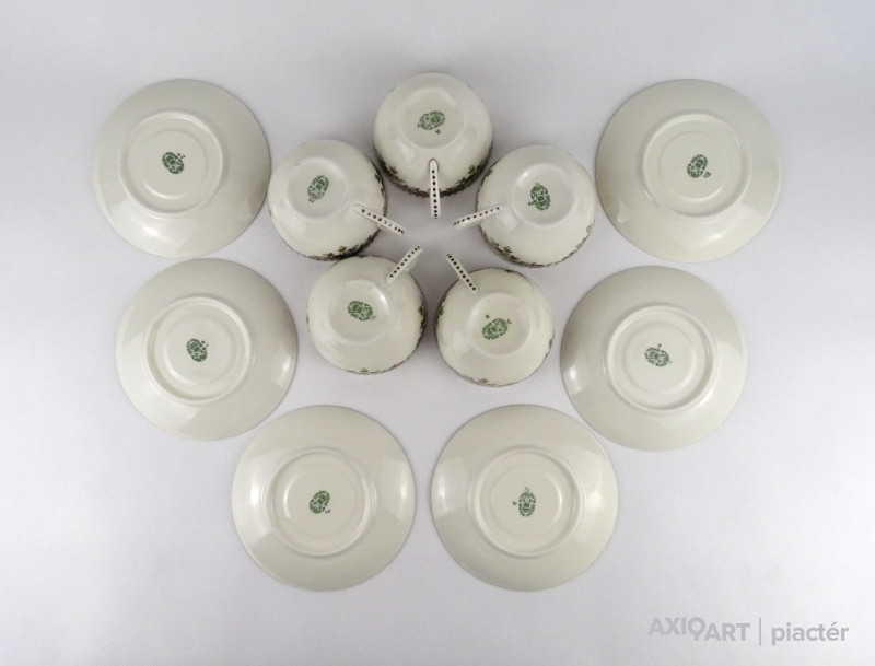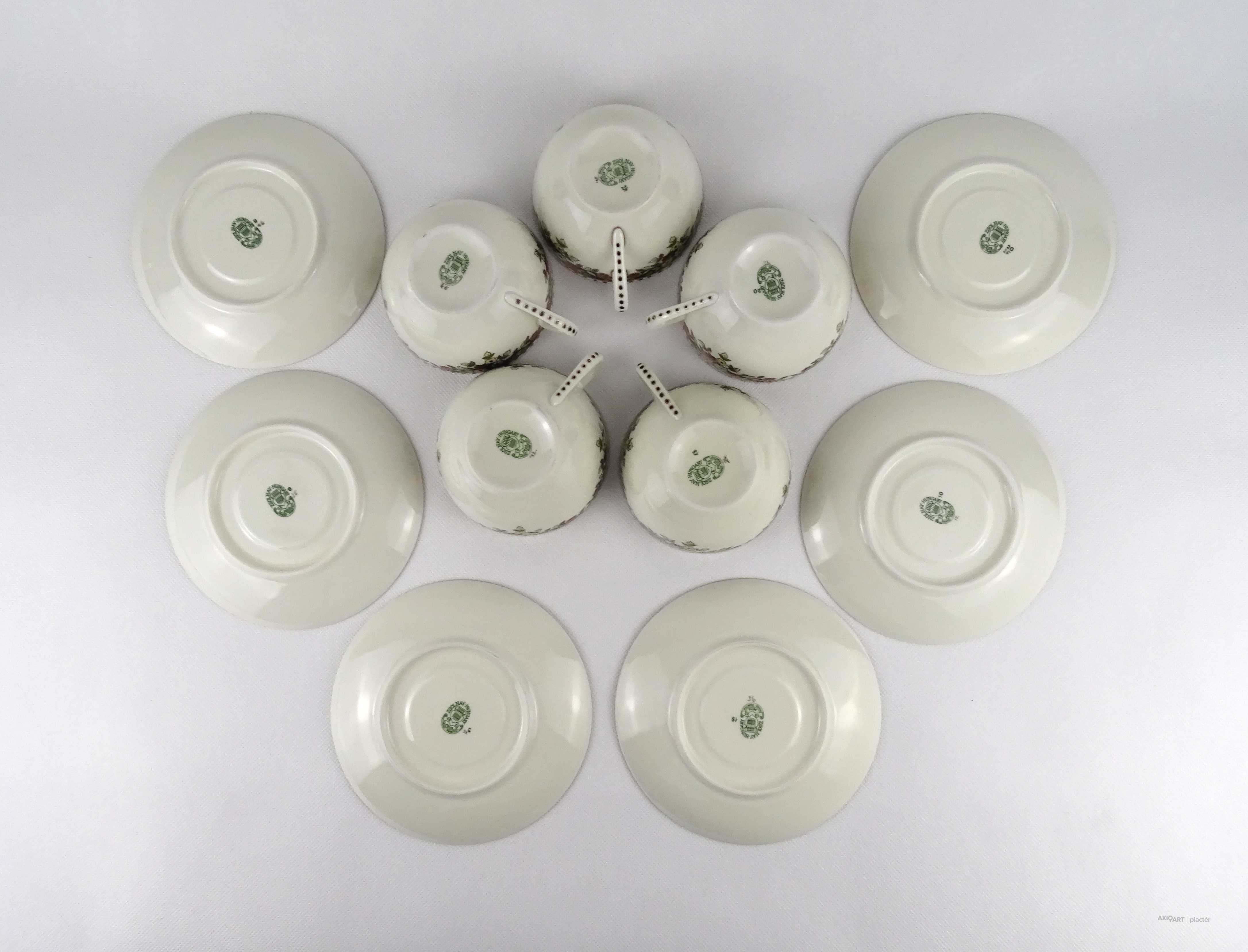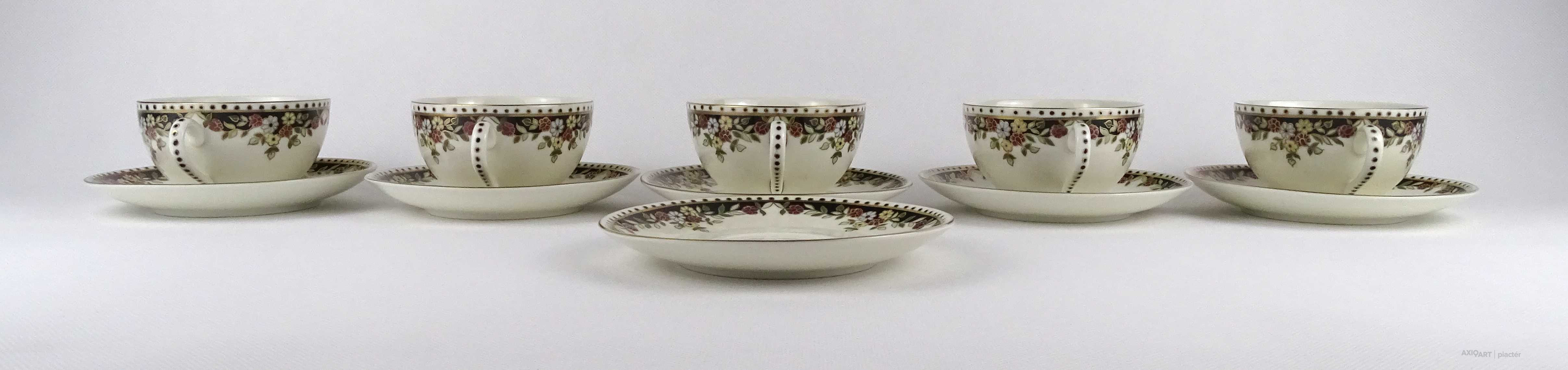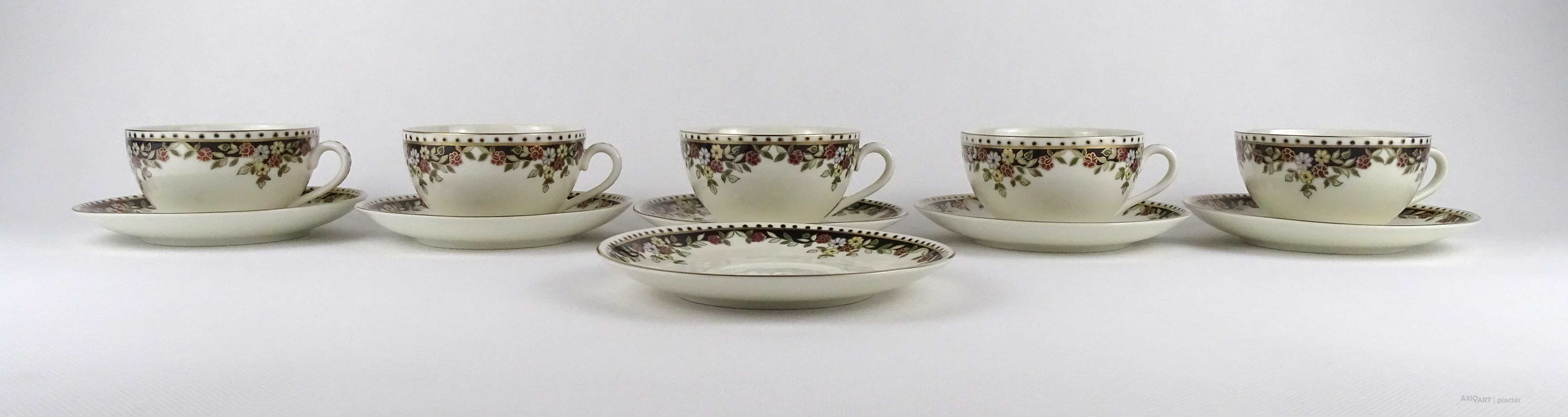 Hibátlan állapotú, vajszínű, Sissy mintás Zsolnay porcelán 5 személyes, 11 darabos teás csésze készlet.