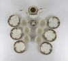 Hibátlan állapotú, vajszínű, Sissy mintás Zsolnay porcelán 6 személyes, 13 darabos kávéskészlet.