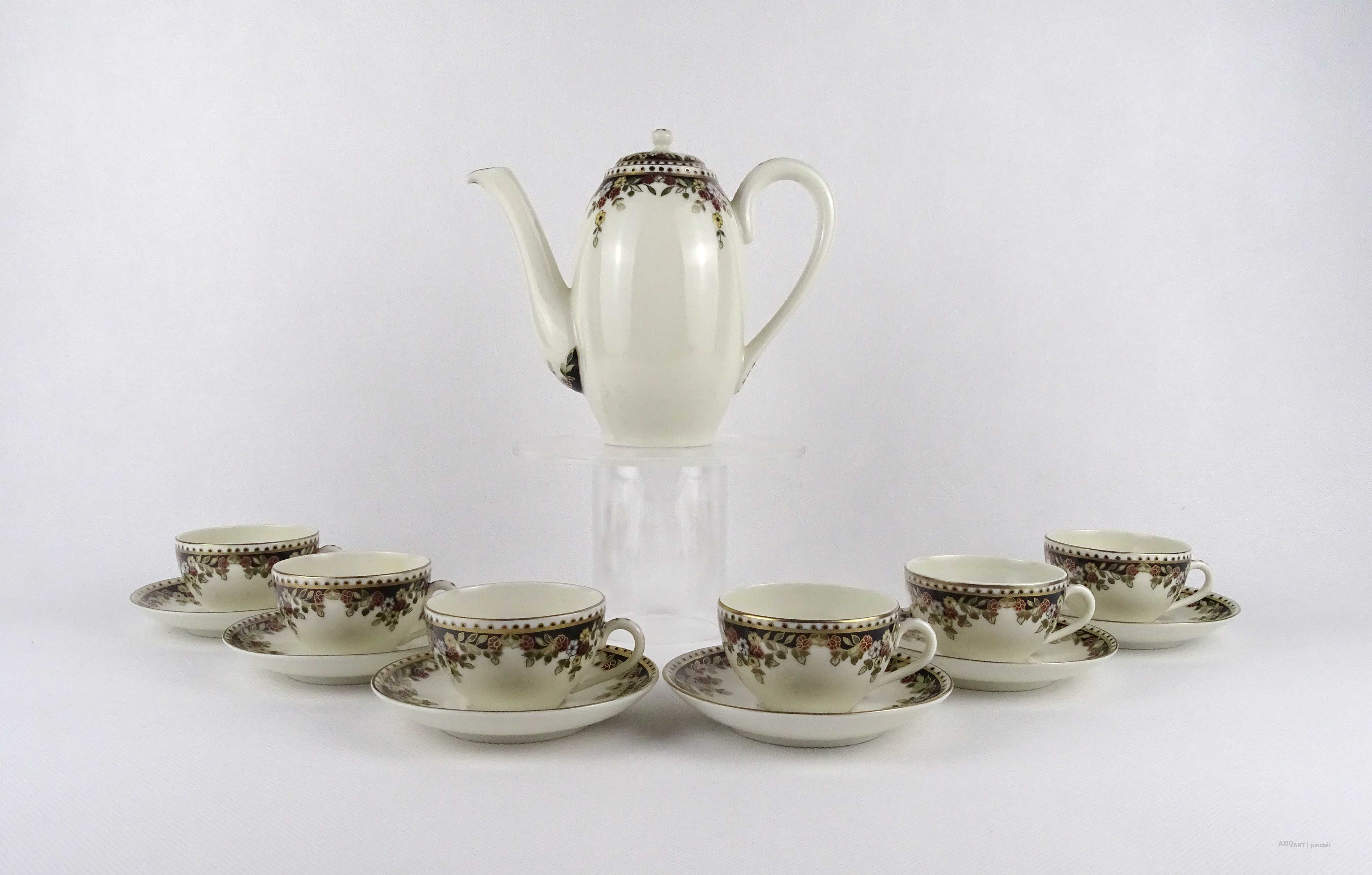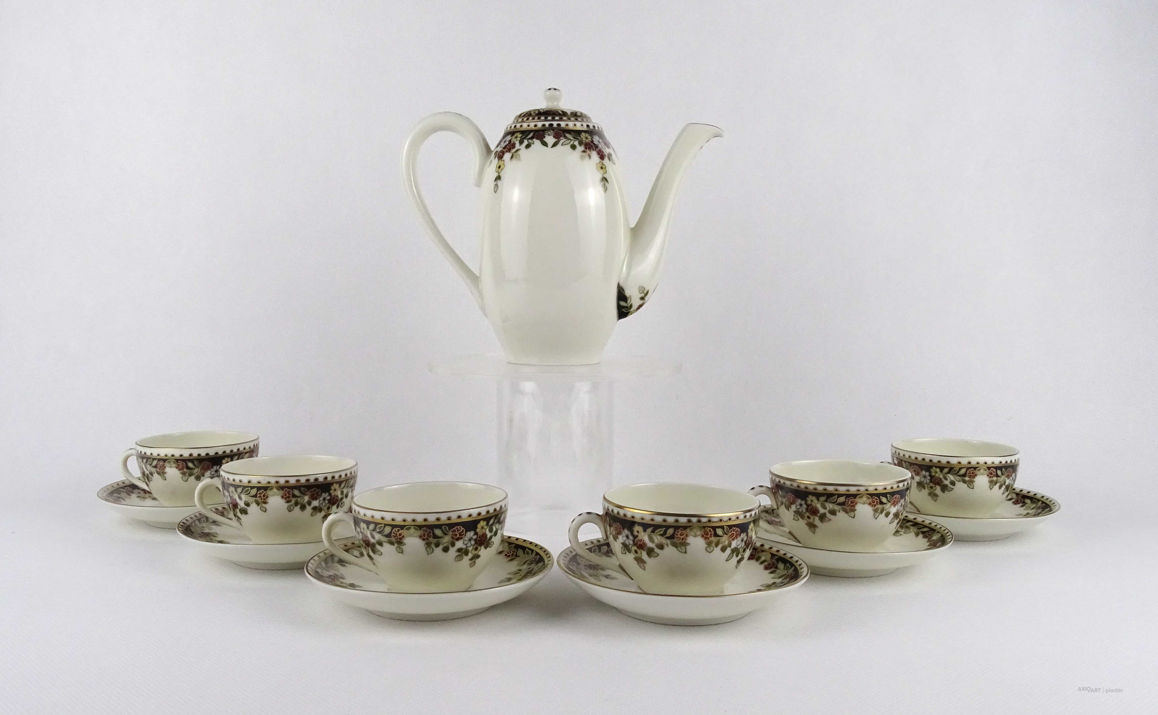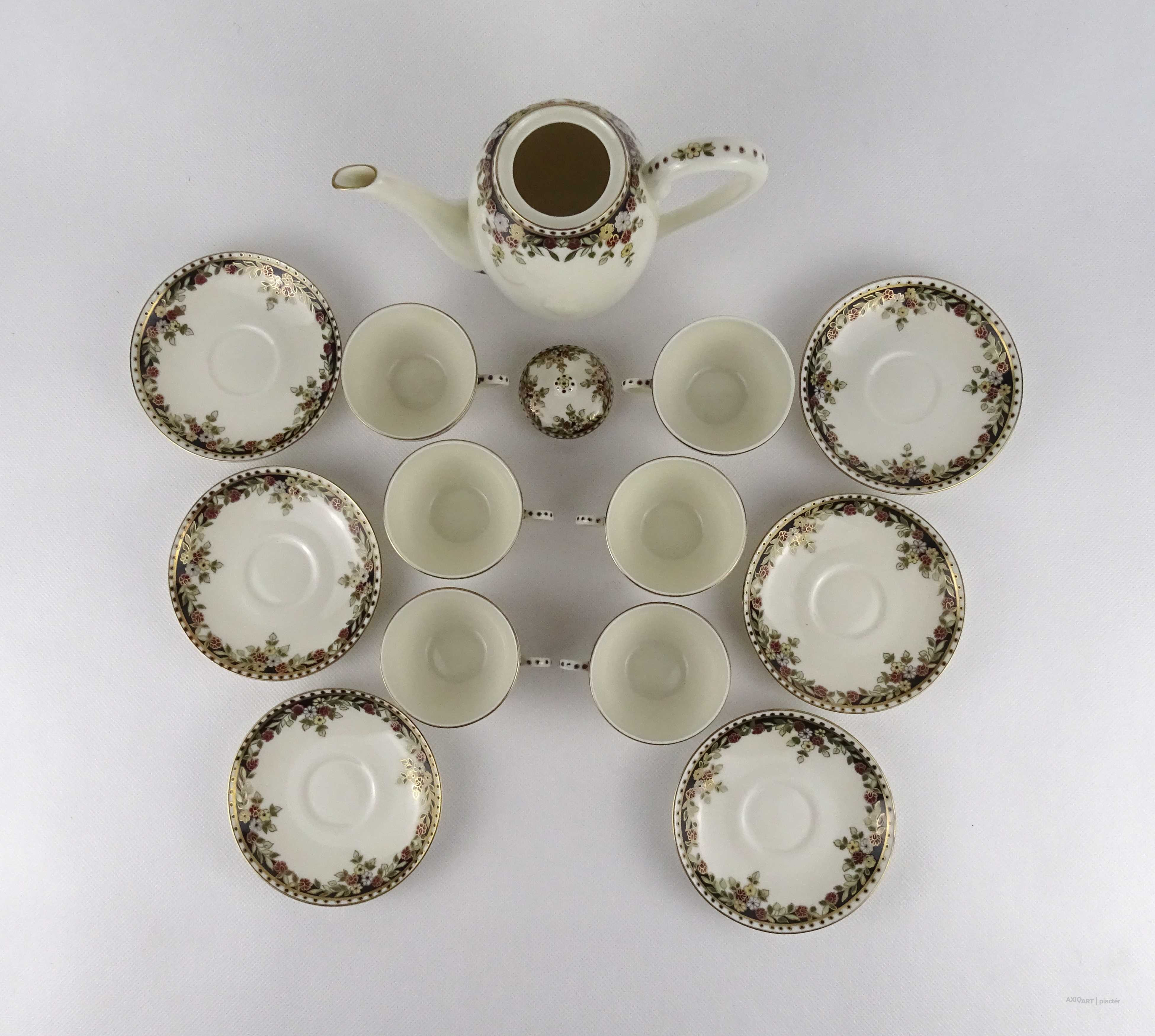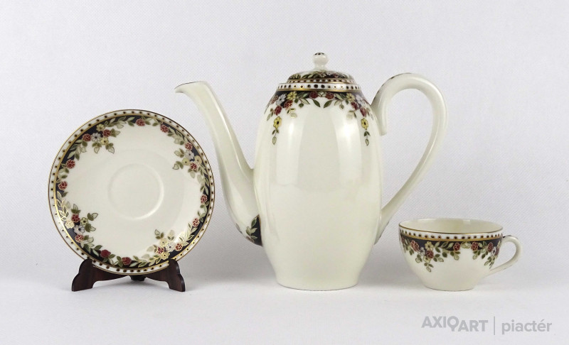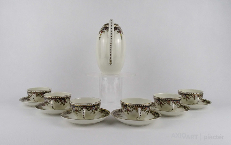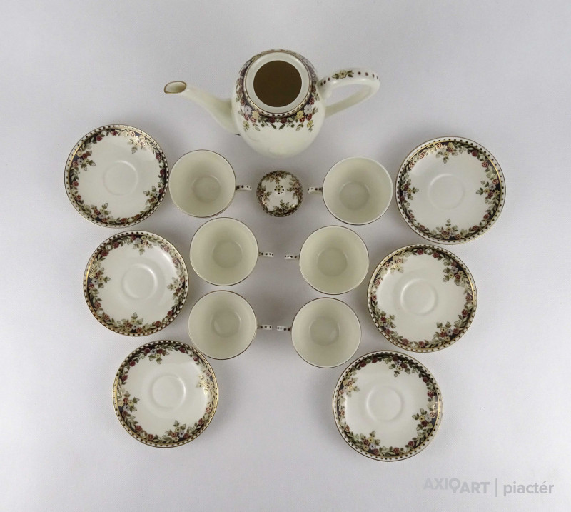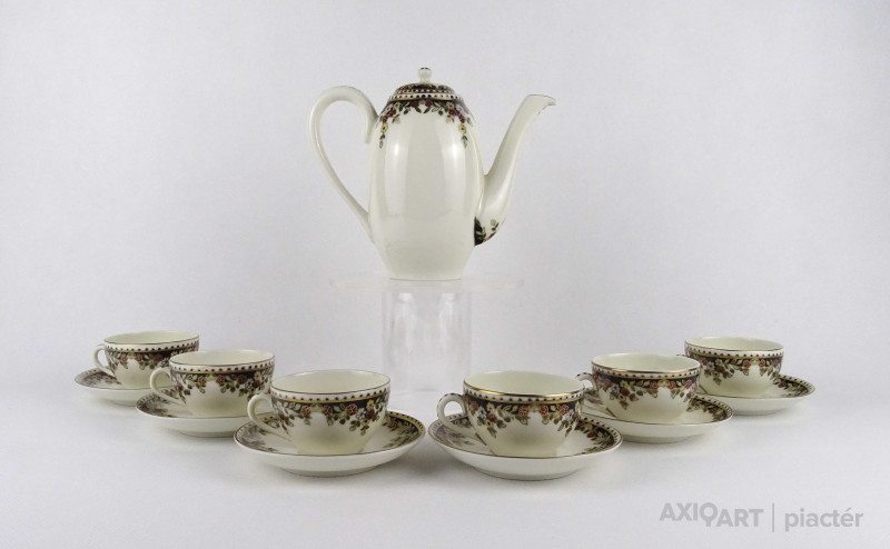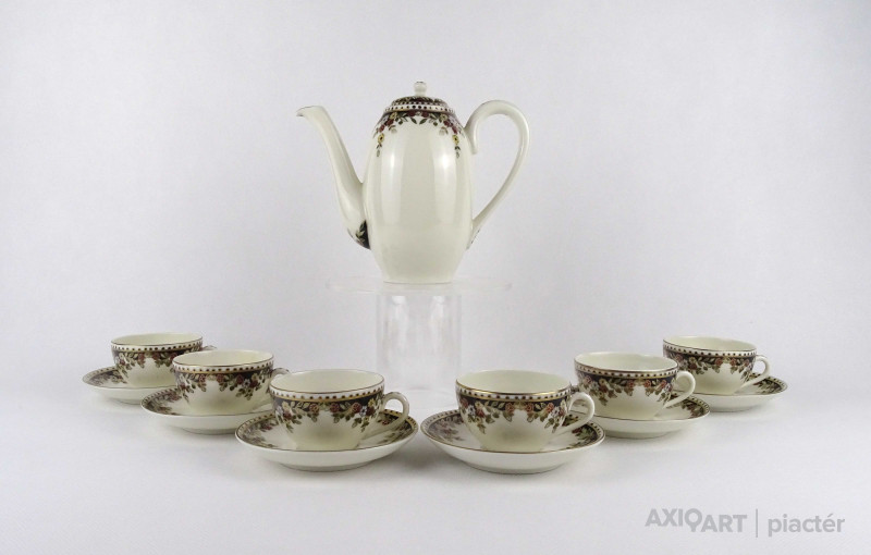 Vajszínű, 6 személyes, Sissy mintás Zsolnay porcelán kávéskészlet
