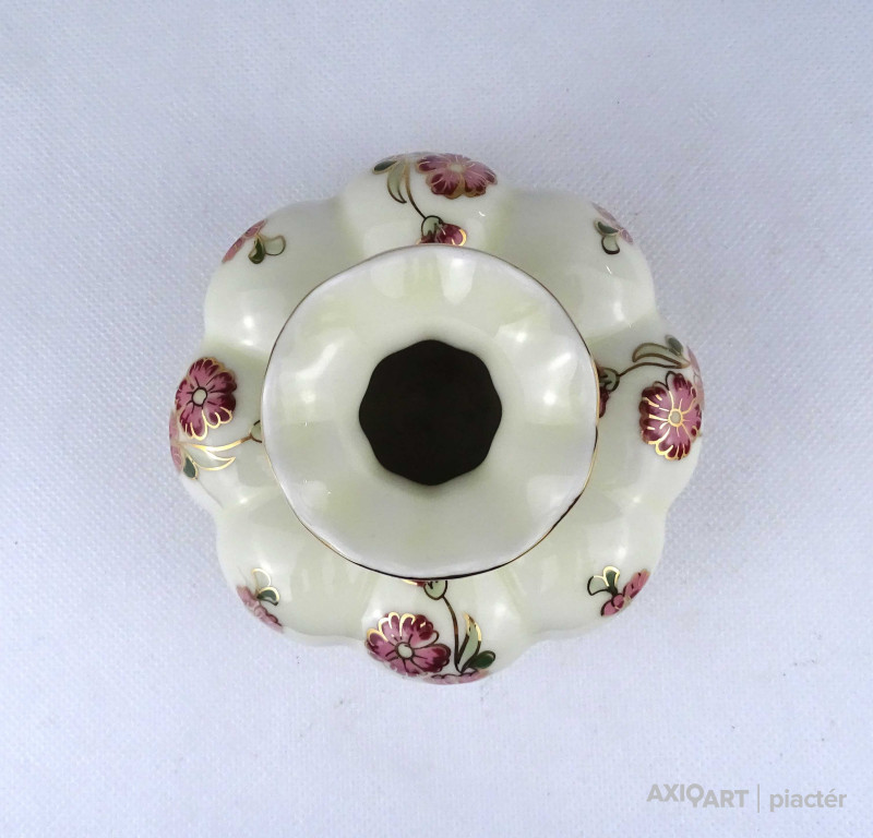 Vajszínű virágmintás gerezdes Zsolnay porcelán váza virágváza 15 cm