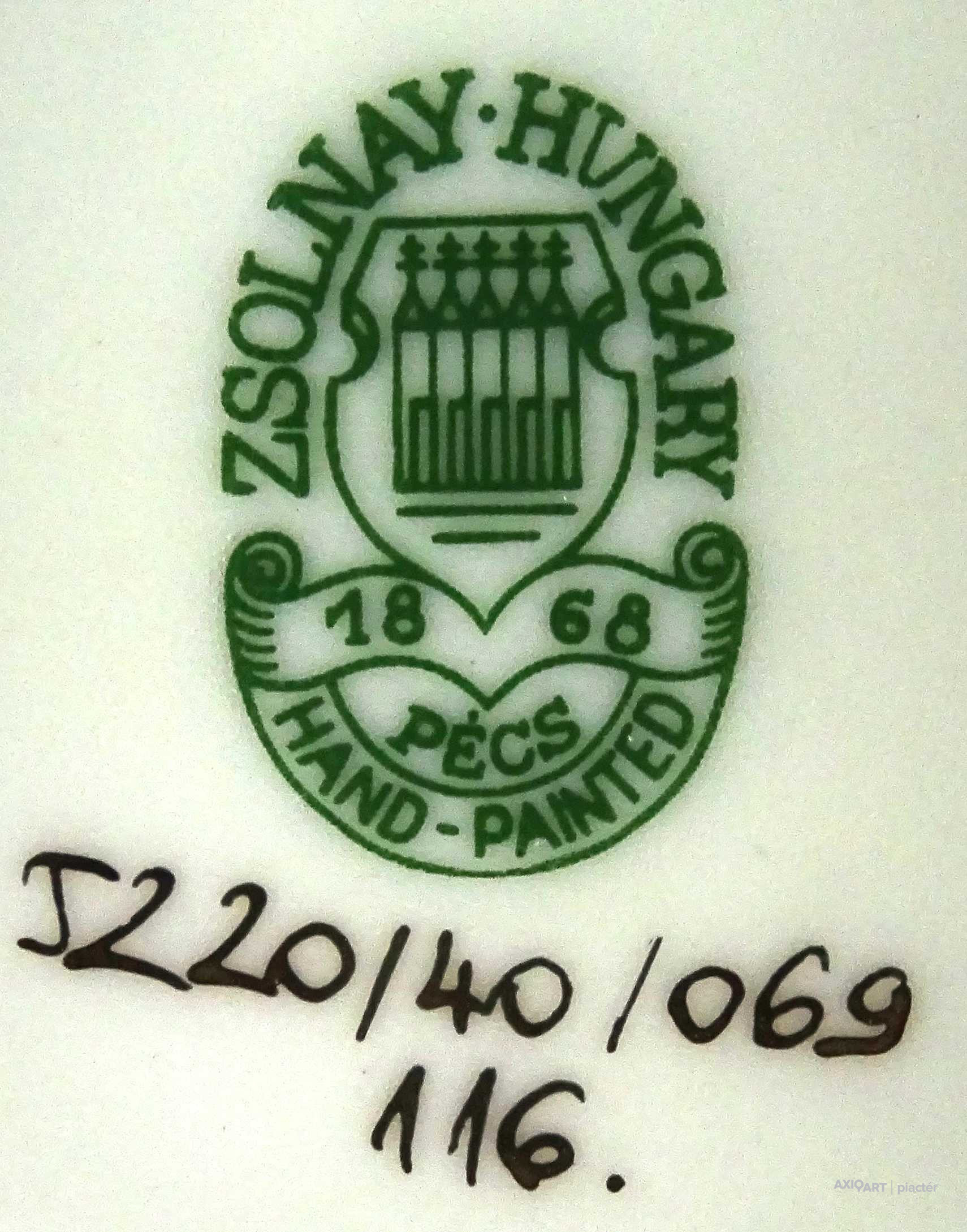 Alján zöld Zsolnay öttornyú márkajelzés: