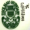 Alján zöld Zsolnay öttornyú márkajelzés: