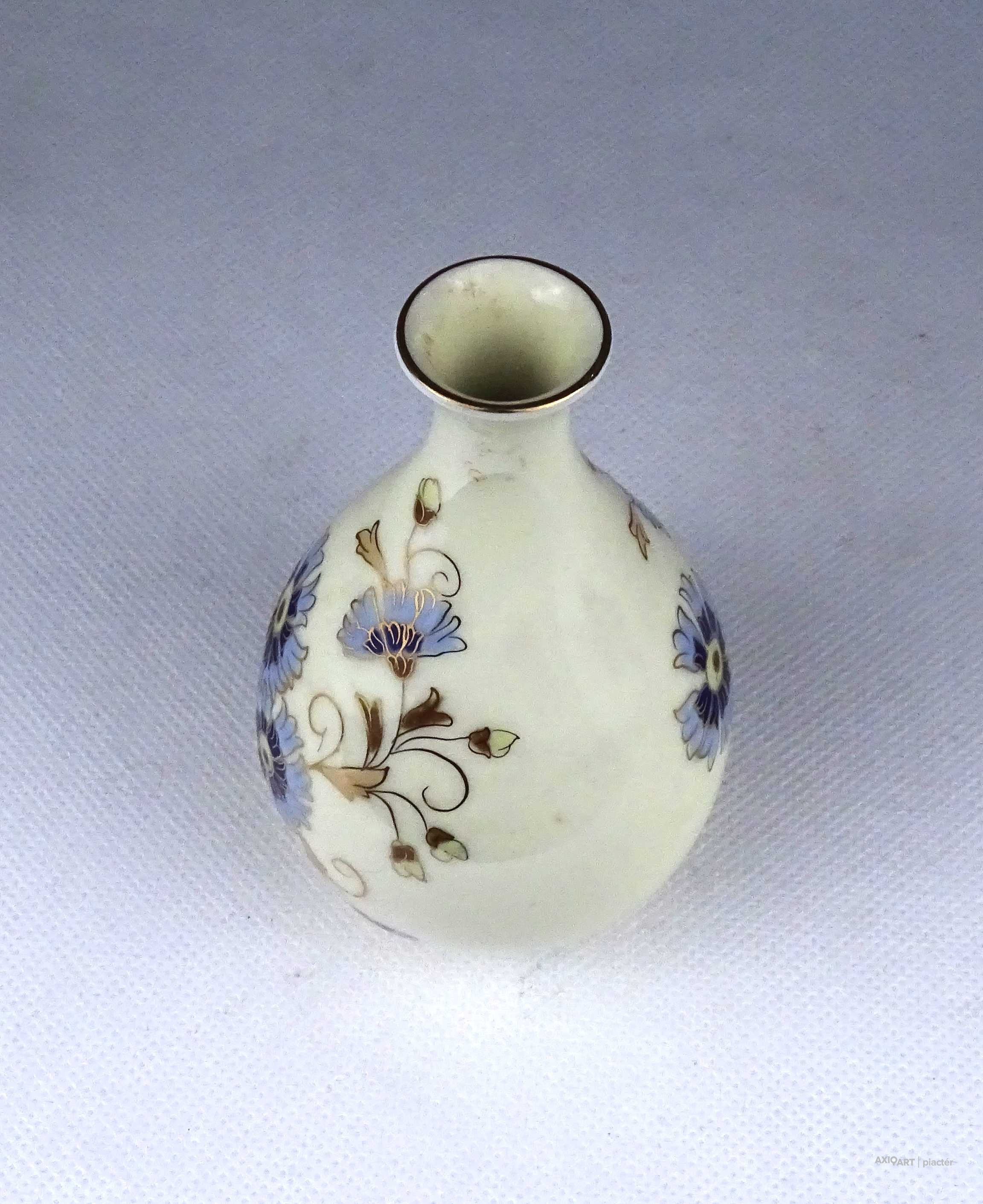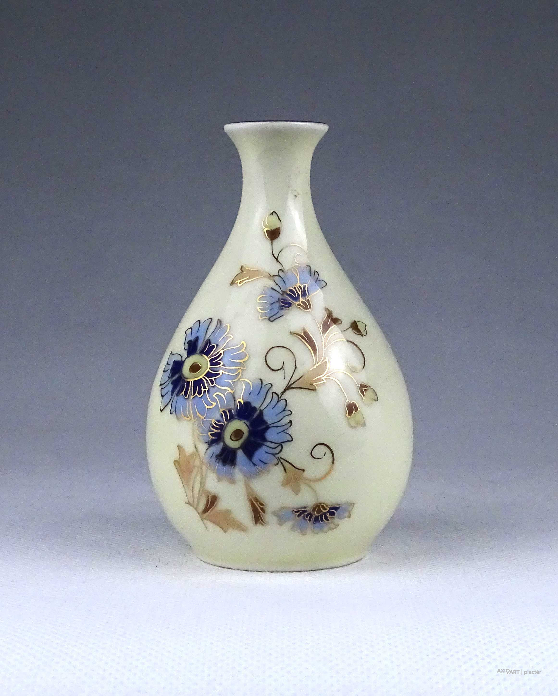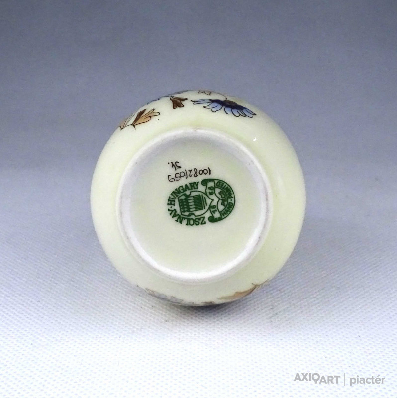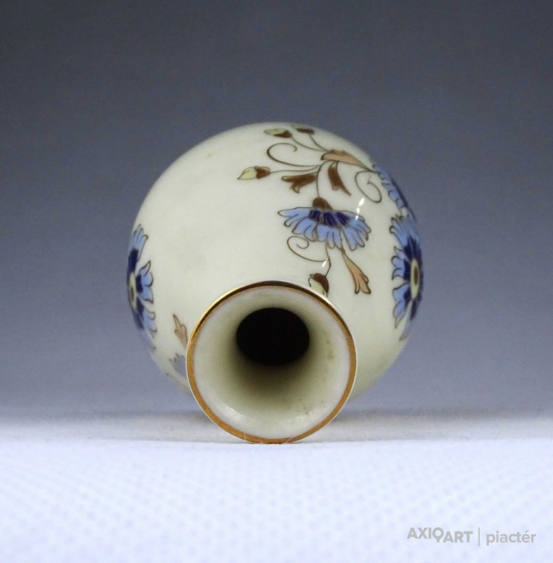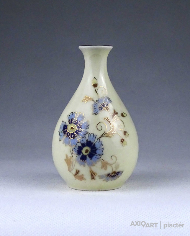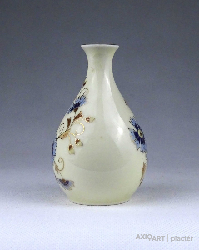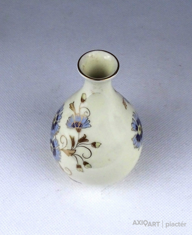 Vajszínű búzavirág mintás Zsolnay porcelán díszváza ibolyaváza 11 cm