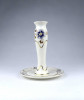Kék szegélyes, aranyozott Zsolnay porcelán gyertyatartó 14 cm