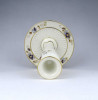 [1Q724/Z058] Hibátlan állapotú vajszínű, aranyozással gazdagon díszített pillangós, virágmintás talpas gyertyatartó. Alján zöld színű Zsolnay öttornyú márkajelzés: ZSOLNAY HUNGARY PÉCS 1868 HAND-PAINTED Arannyal formaszám: 3287/026 74 Magasság: 14 cm Szélesség: 12 cm Súly: 0.21 kg