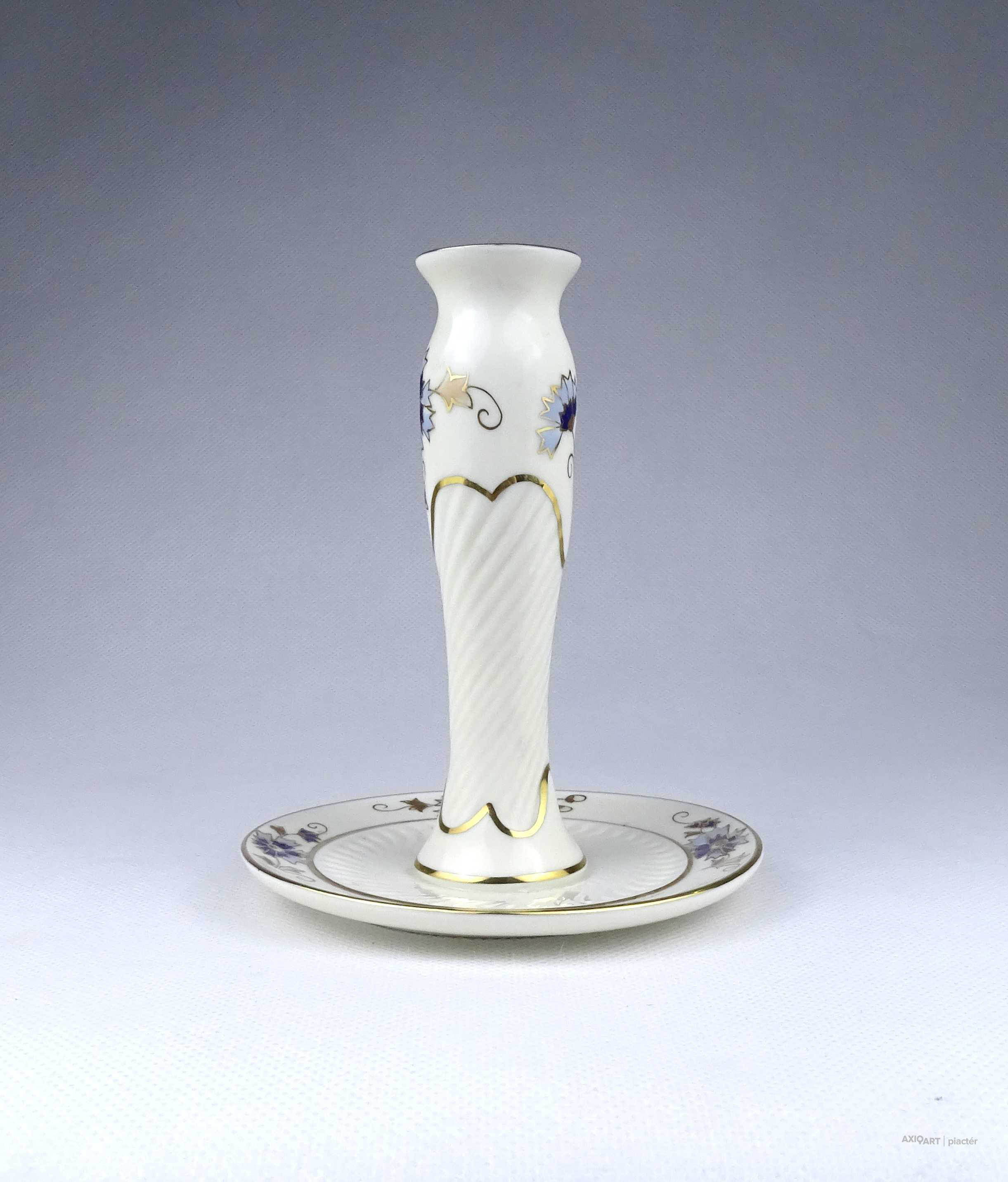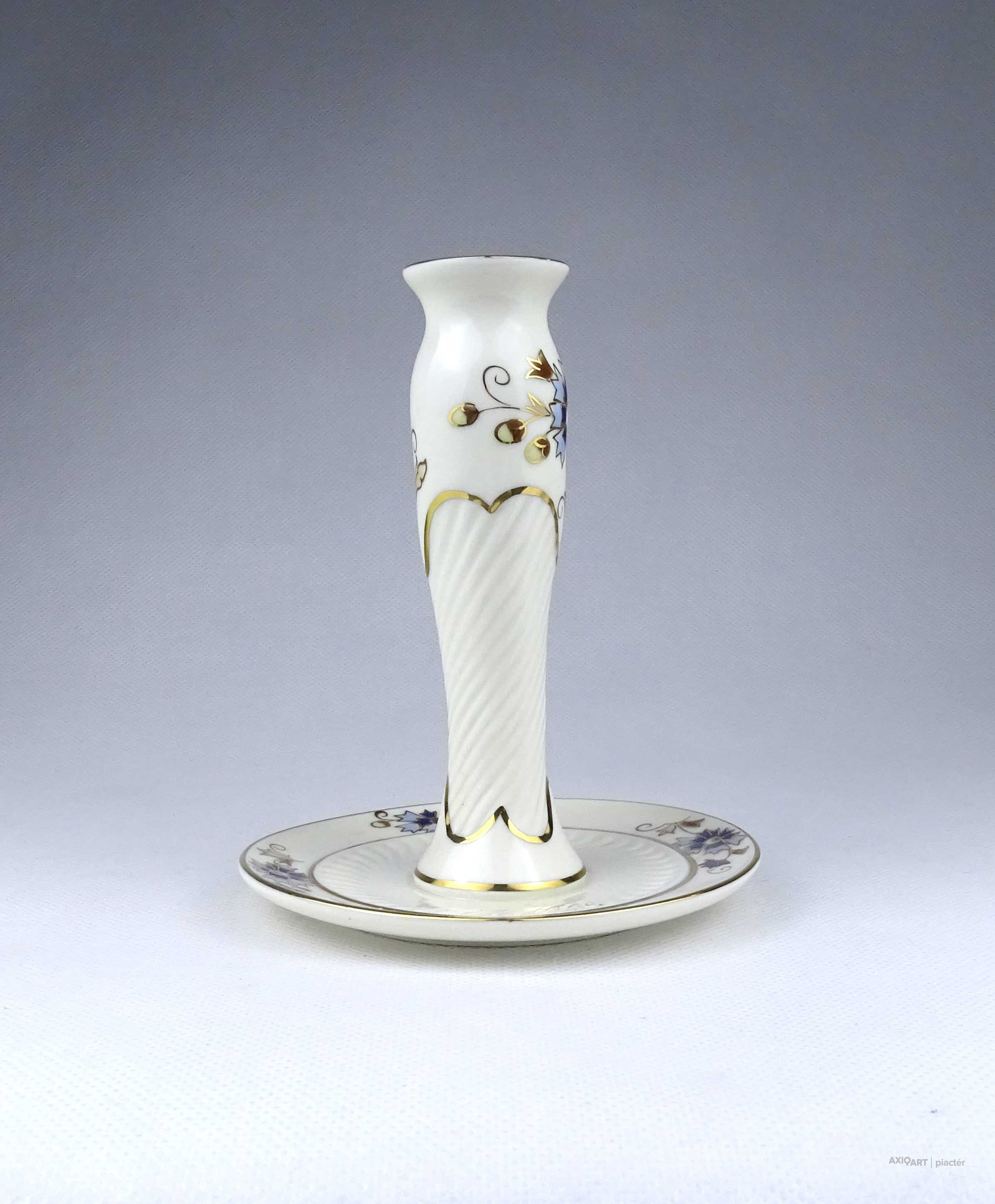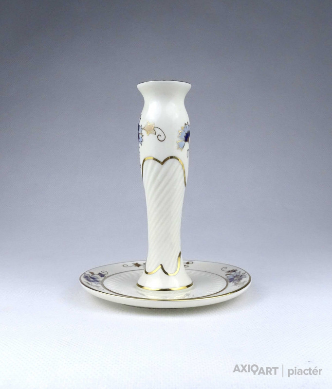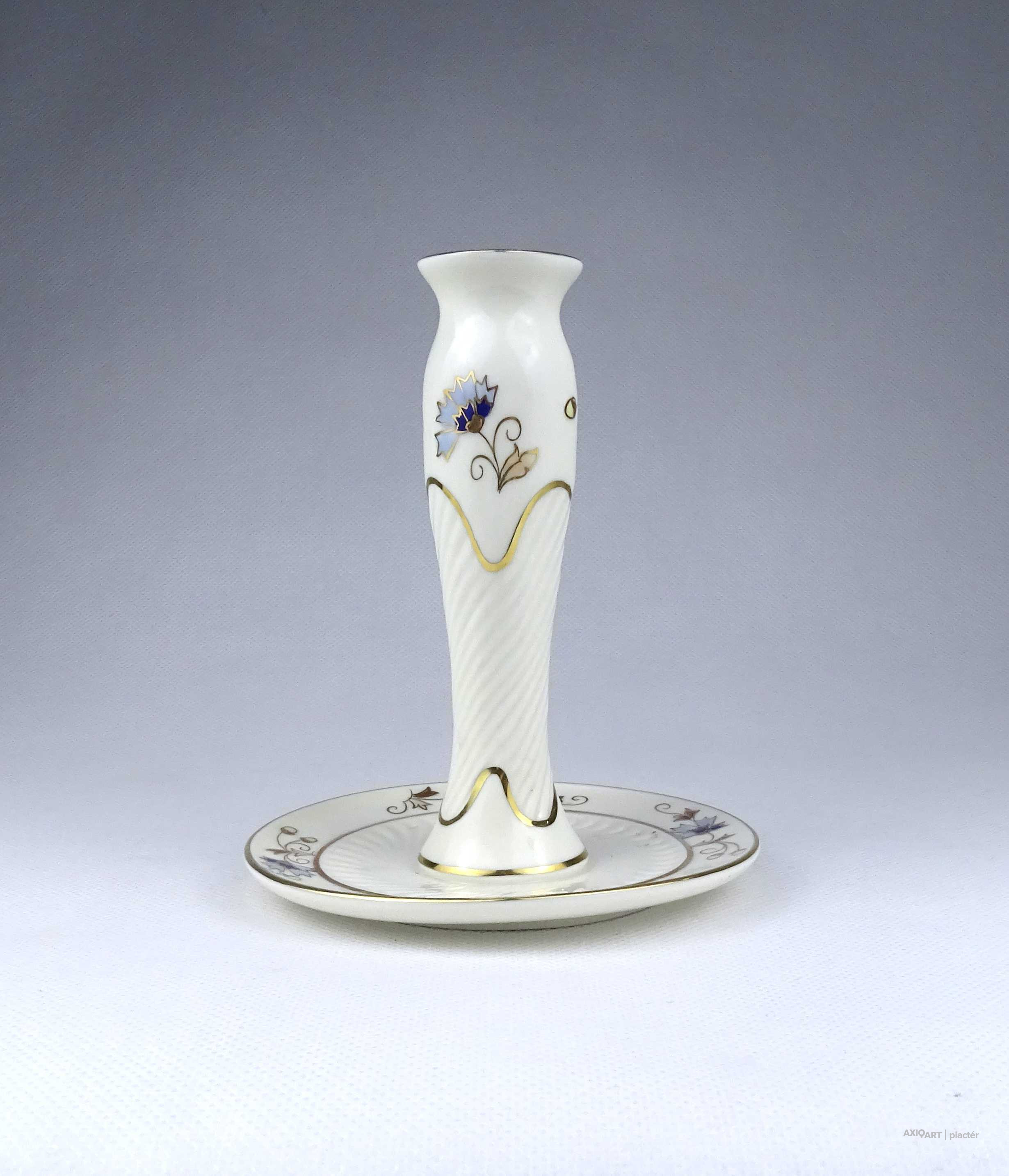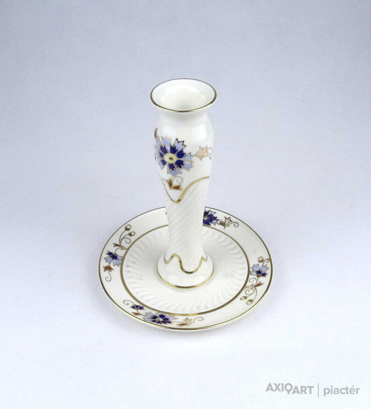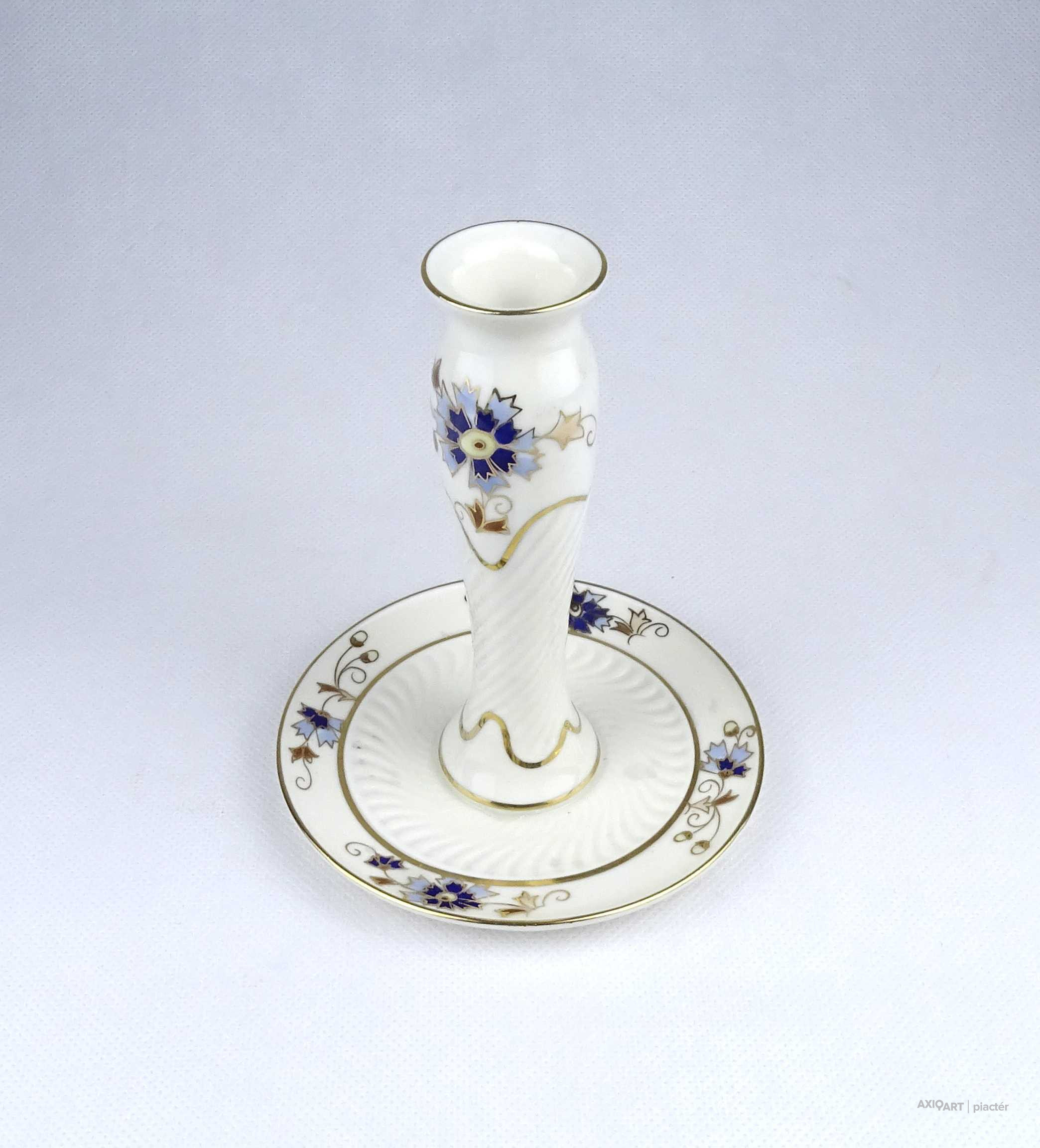 Vajszínű búzavirág mintás Zsolnay porcelán gyertyatartó 14 cm