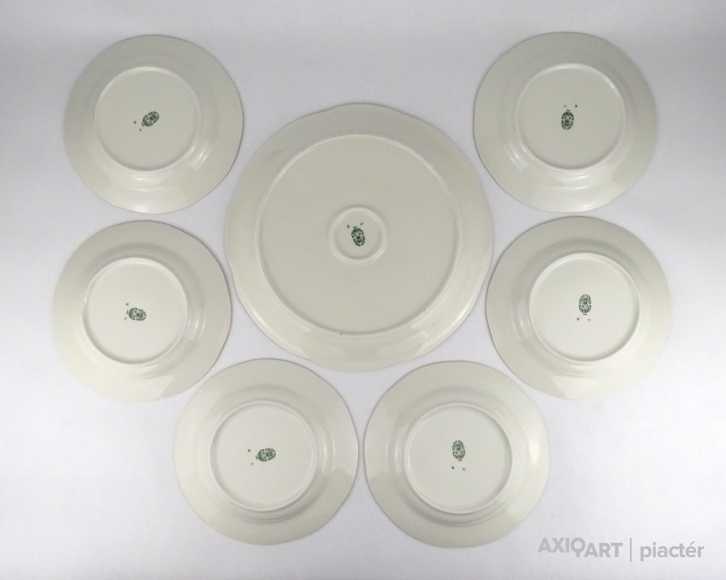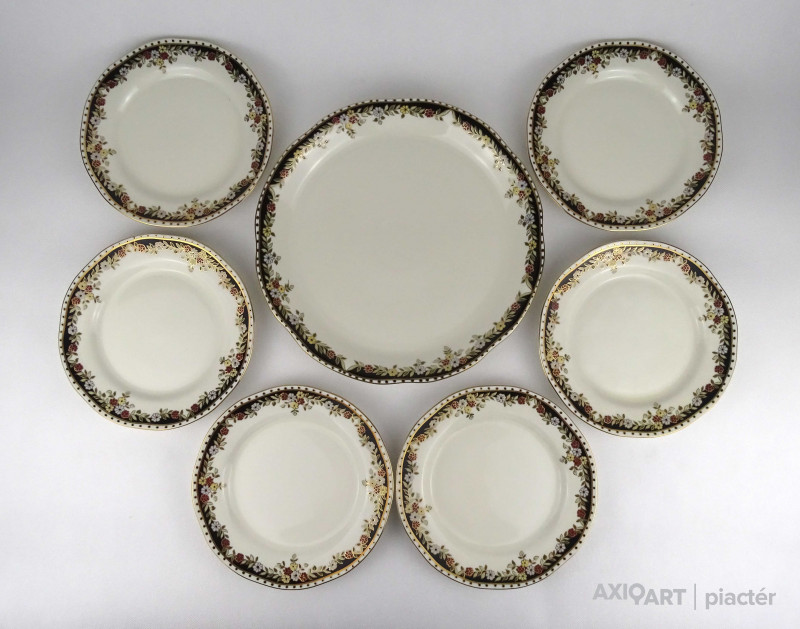Vajszínű, Sissy mintás, 6 személyes Zsolnay porcelán süteményes készlet