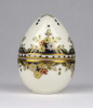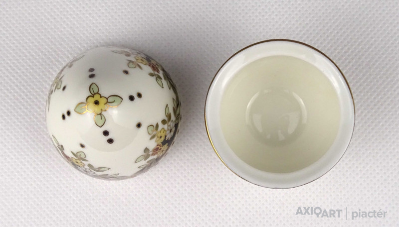 Vajszínű, Sissy mintás, jubileumi Zsolnay porcelán álló tojás bonbonier 6.6 cm