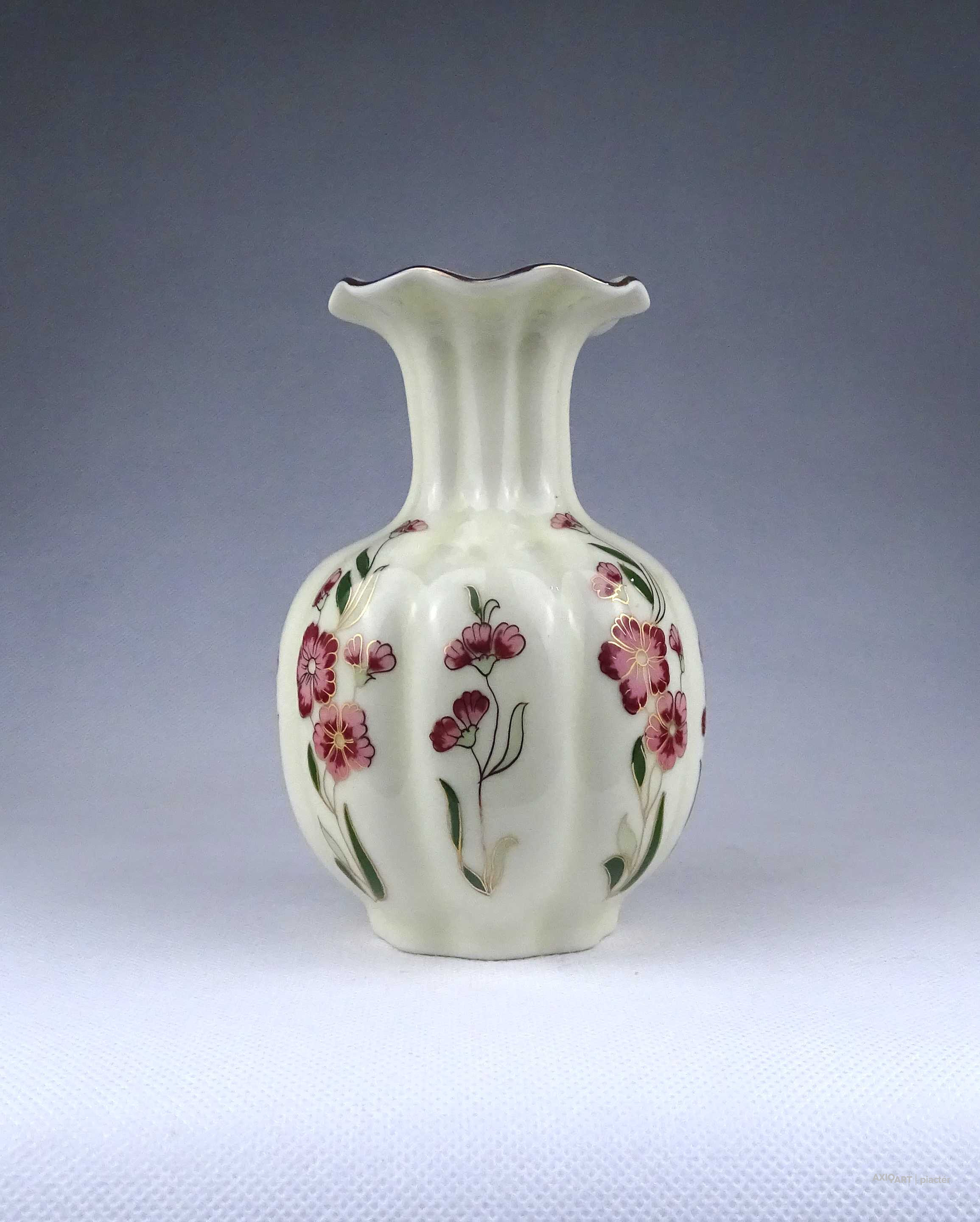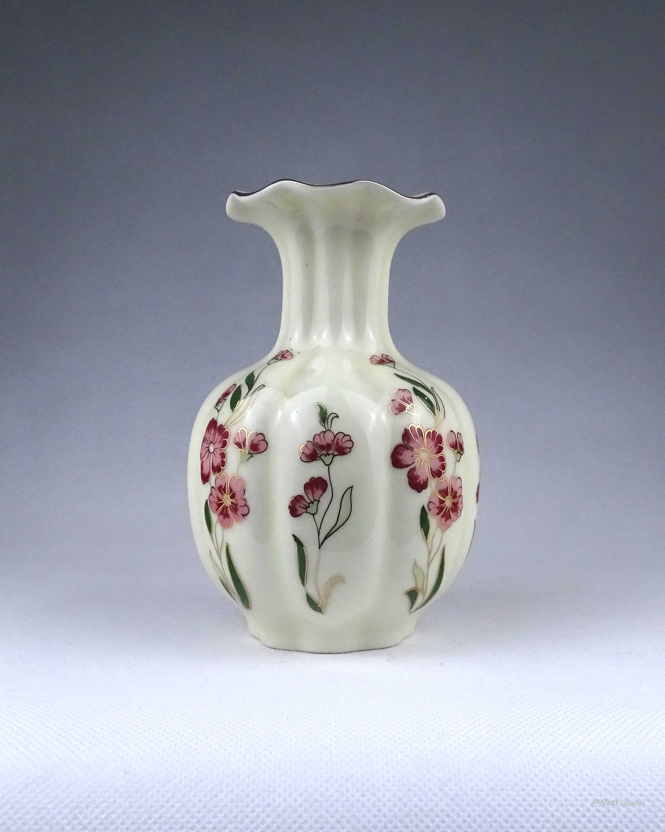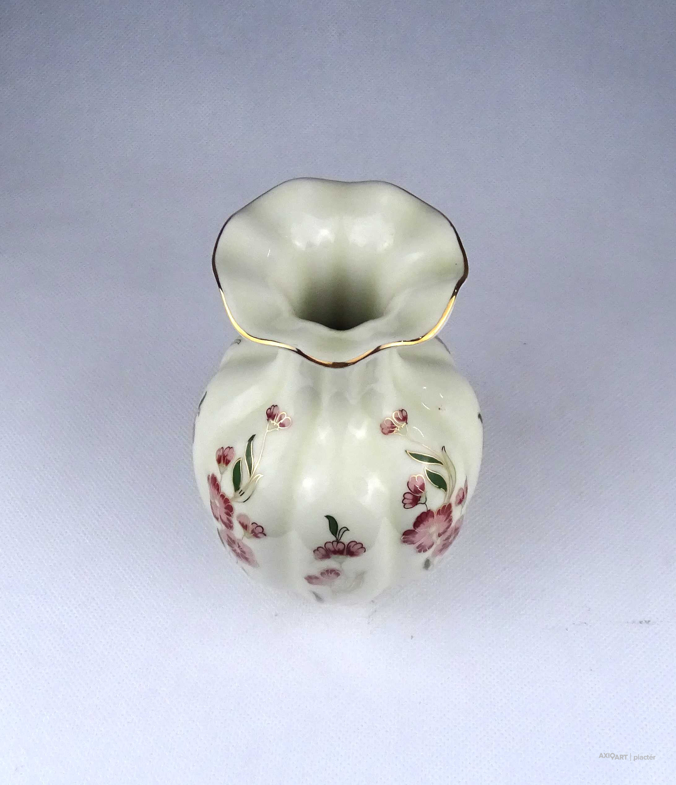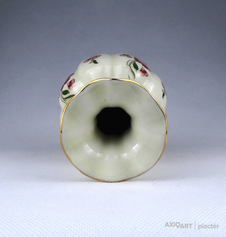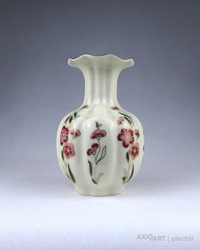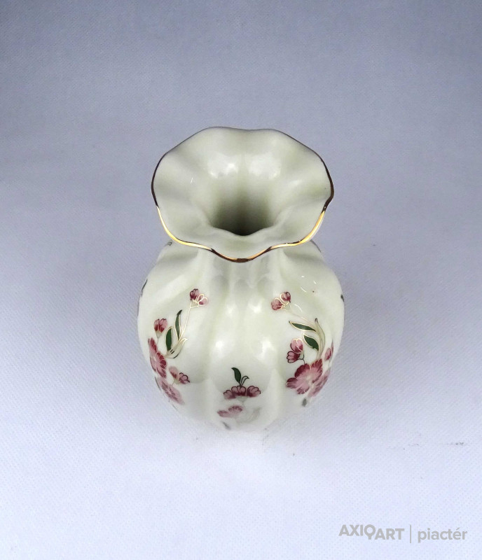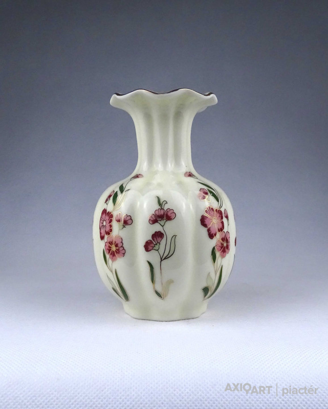 Vajszínű virágmintás gerezdes Zsolnay porcelán váza virágváza 15 cm