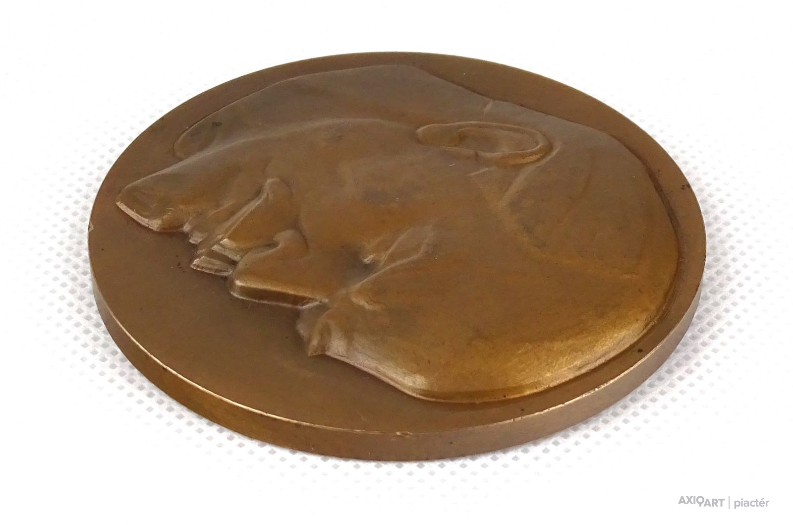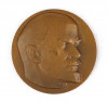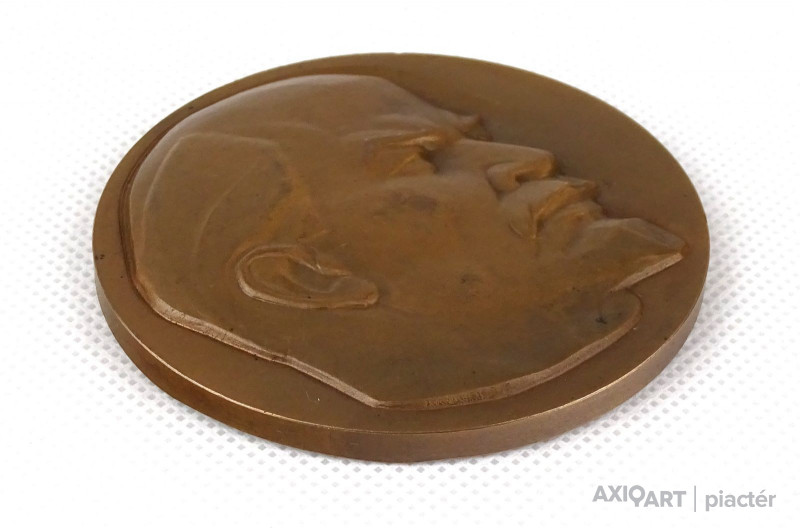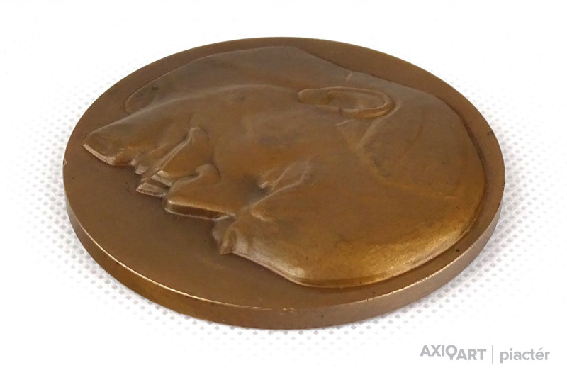 Régi kétoldalas bronz plakett, rajta plasztikus Lenin portré. Lenin születésének 100. évfordulójára készült plakett.