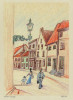 Váli Éva jelzéssel magyar művész 1970 körül : "Német városka"