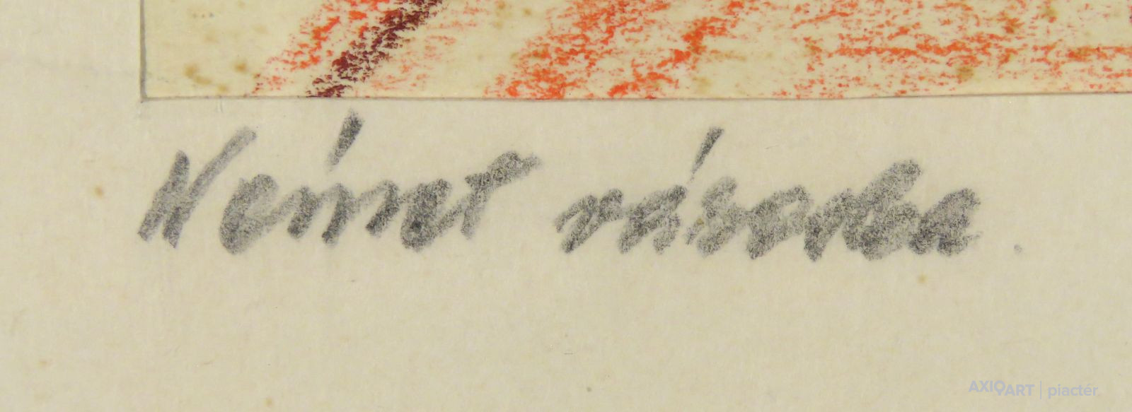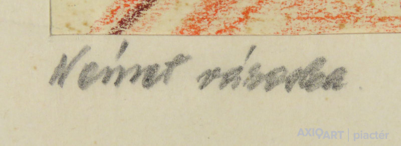 [1Y029/Z018] Olaj farost festmény, üveglap mögött, hibátlan képcsarnokos keretben. Hátoldalán Képcsarnok Vállalat papír címkéje: A művész neve: SCHÉNER MIHÁLY A kép címe: TÁJ Magasság: 66.5 cm Szélesség: 86 cm Súly: 6.54 kg Schéner Mihály festő, grafikus, szobrász, keramikus, bábtervező Medgyesegyháza, 1923-01-9 Elhalálozott: Budapest, 2009. május 11. Honlap: http://www.kormendigaleria.hu/kiadvany.html 1942-1947: Magyar Képzőművészeti Főiskola, tanára: Rudnay Gyula. 1978: Munkácsy-díj; 1984: érdemes művész; 1989: kiváló művész; 1995: Kossuth-díj. 1992-től a Magyar Művészeti Akadémia, 1993-tól a Széchenyi Irodalmi és Művészeti Akadémia tagja. 1956-ig tanított. 1982: Nagyatádi Faszobrász Alkotótelep, 1985: Nemzetközi Acélszobrász Alkotótelep, Dunaújváros. A stílusában felismerhető, mégis sokféle műtárgyat létrehozó ~ gazdag, állandóan alakuló életműve a folyton változó világban helyét kereső, az alkotói szabadságot megvalósító XX. századi képzőművész példázata lehetne. Magát expresszív-szürrealista alkotónak nevezi. Egyaránt dolgozik festékkel, textillel, fával, fémmel. Rajzol, szerkeszt, farag, épít, gyúr, varr és ragaszt, felhasználja a mézesbábok öntőformáit. Festő, rajzoló, textilszobor- és bábkészítő, fazekas, asztalos, esztergályos. Háromlépcsős folyamatban gondolkozik: rajzban tervez, majd fest, szobrot készít, “formába önt”, mindig a végső plasztikai megoldást keresi. Ami állandó és mégis játékosan változékony megjelenésű Schéner művészetében, az a gyermekkori emlékek által meghatározott népi mesterségek iránti tiszteletet kifejező motívumkincs, a tárgyi folklór formakészlete, amely már-már kézjegyként ismétlődik munkáin. Mitologikussá nőtt képzelete új lényeket teremt, pl: a Pigulát, amely disznótestű, emberfejű teremtmény. Schéner festményein a szürrealista motívumokat konstruktív szerkezetbe rendezi, a geometriát és az organikus természeti motívumokat egyaránt beépíti műveibe. A népi, népművészeti formakincsből merített lovas huszárok, betyárok, szegénylegények cifra szűr mentéje, piros csákója, fekete csizmája, az önálló életet élő zsinórdíszek és mézeskalács bábok, a kiskocsik a gyermekkori vásárok, búcsúk színes forgatagába vezet. A primér motívumokat aztán felváltják a vastagon felhordott felületbe karcolt jelek, vonalhálózatok, amelyek a játszó gyermek homokba rajzolt ábráit, a pásztorember fába vésett üzeneteit, az ősember barlang falába rótt mágikus jeleneteit idézik meg. A művész pillanatnyi érdeklődésének megfelelően a színek búvópatakként tűnnek el és jelennek meg ismét. A 60-as években leginkább a formákkal való játék érdekelte, a festmények felülete egyre gazdagodott: a táblaképek felületén applikációk jelentek meg, vagy lemállasztott rétegek hagyták maguk után hiányukat, motívumok nélküli ősformák, archetipikus képzetek bukkantak fel művészetében. A véletlenszerűnek látszó rétegekkel való játék azonban tudatos komponálás eredménye, amely később nyilvánvaló ritmusnak és formai szerkesztettségnek adja át a helyét, mint a Törvénytáblák c. sorozaton. A különböző művészi kifejezési formák egymásra termékenyítő hatással vannak, át- meg áthatják egymást. Textilszobrai, amelyekkel új műfajt teremtett, ugyanazzal az automatikus, expresszív-szürrealista módszerrel készülnek, mint festményei. A hagyományosan a népművészetben alkalmazott anyag, a filc lehetőséget ad a népi formakincs felelevenítésére, amely azonban a művész különös szürrealista átiratában jelenik meg. A szívekkel kivarrt, zsinórdíszes Posztókotlós c. művén mézesbábok lógnak, hátán huszárok lovagolnak. Egész sor textilből készült kéz-plasztikát alkot, amelyeket az ujjakra rávarrt díszekkel öltöztet, személyesít meg. A színes-különös világból aztán ~ újra puritán képi és formai rendbe juttatja el a nézőt, majd nemsokára tépett, gyűrt, vágott, csorgatott, repedezni hagyott szenvedélyesen vonagló képi felületeket hagy hátra. Schéner készített apró gyermekjátékokat, térstruktúra-tereket, mászókákat is. A magyar népi formák mellett szürreális játékaiban gyakran alkalmaz görög mitológiai alakokat, “elkentaurosodott” lovakat, Gorgó-fejeket, sellőket, hárpiákat, Pán-ábrázolásokat. Schéner nemcsak saját művészetéről publikál, hanem művésztársairól is számos írása jelenik meg, elsősorban az Új Auróra c. folyóiratban, amelynek egy ideig főmunkatársa volt. Irodalom kiállítása, Magyar Építőművészet, 1962/4. Húsz év után, Művészet, 1965/4. BOZÓKY M.: ~, Tiszatáj, 1968/5. PERNECZKY G.: Nincs uborkaszezon, Élet és Irodalom, 1969. augusztus 8. BARÁNSZKY-JÓB L.: ~, Művészet, 1969/9. LÁSZLÓ GY.: ~ kaposvári kiállítása, Jelenkor, 1969/4. MAJOR M.: Pásztorok, betyárok, huszárok - kezek, Tükör, 1970. szeptember 15. FRANK J.: Bemutatjuk ~t, Élet és Irodalom, 1972. május 6. ról kiállítása ürügyén, Képzőművészeti Almanach, Budapest, 1972 Sötétkék kokasok, Élet és Irodalom, 1973. szeptember 9. MAJOR M.: ~ játékai, Élet és Irodalom, 1974. július 27. BARTA J.: Egy különös művész, Alföld, 1974/6. VADAS J.: Szárnykészítők, Élet és Irodalom, 1975. október 4. JUHÁSZ F.: A halál ellen játszani, Élet és Irodalom, 1975. május 17. PAP G.: Kincsek és műkincsek, Művészet, 1975/6. P. SZŰCS J.: Az utak kettéválnak, Művészet, 1978/3. Békési művészet, Művészet, 1978/7. SZAMOSI F.: ~ [kismonográfia], Budapest, 1978 VADAS J.: Játék a játékkal, Élet és Irodalom, 1979. augusztus 18. NÉMETH L.: ~ műveiről, Művészet, 1979/4. MIKLÓS P.: Mit akar ez a múzeum?, Művésze