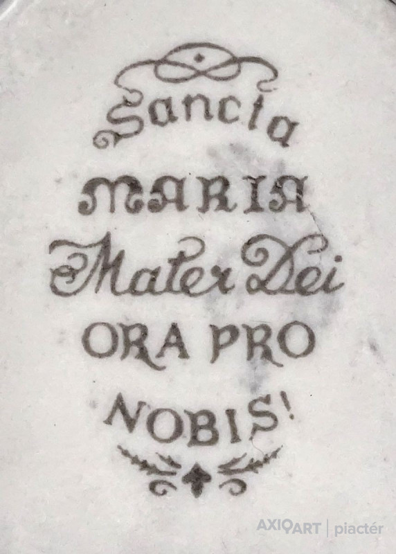 [1Y462/Z065] Hibátlan állapotú, jelzett kortárs Vertel Andrea kerámia kisplasztika, kerámia figura - Madonna szobor, anya gyermekével. Hátoldalán karcolt jelzés: VA (Vertel Andrea) Magasság: 27.7 cm Szélesség: 17 cm Hosszúság: 11 cm Súly: 1.135 kg Vertel Andrea keramikus Budapest, 1953-08-15 1971: Képző- és Iparművészeti Szakközépiskola, mesterei: Sándor István, Lőrincz Győző. 1993: a kecskeméti Nemzetközi Kerámia Stúdió ösztöndíja. 1975-től az Iparművészeti Vállalat és a Képcsarnok galériában forgalmazta munkáit. Egyedileg mintázott figurális kerámiát készít. Porcelánt és samottot is használ, a finom és a durva anyagok ellentétét aknázza ki alkotásaiban. Irodalom KESZTHELYI K.-LACZKÓ I.: A magyar kerámiaművészet I. Alkotók, adatok 1945-1998, Budapest, 1999. Egyéni kiállítások Egyéni kiállítások 1980 • Videoton Művelődési Ház, Székesfehérvár 1989 • Képcsarnok, Sopron • Dési Huber Terem, Veszprém • Kommunális Galéria, Vác • Idea Castellum • Puchheim 1991 • Royal Art Galéria, Tihany 1995 • Képcsarnok, Sopron • Medgyessy Terem, Debrecen • Rudnay Terem, Eger • Kastély Galéria, Kapolcs • József Attila Művelődési Ház, Göd Válogatott csoportos kiállítások Válogatott csoportos kiállítások 1988 • Internationales Art Festival, Deutsches M., München 1993 • Art revue Budapest, Budapest • Balassa Bálint Múzeum, Esztergom 1996 • XIV. Országos Kerámia Biennálé, Pécs. Forrás: artportal.hu