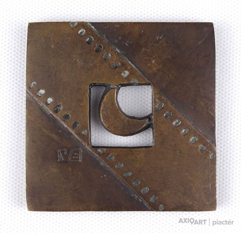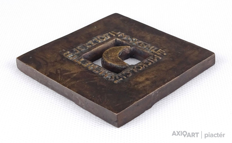 [1M128/X000] Szép állapotú kétoldalas bronz érem, bronz plakett, emlék plakett. Felirat: ISMERETTERJESZTŐ FILM SZEMLE MISKOLC Jelzés: VÉ (V.É.) Szélesség: 7.5 cm Hosszúság: 7.5 cm Súly: 0.3 kg Varga Éva szobrász Hajdúböszörmény, 1949-09-27 Szerző: Szolláth György-Wehner Tibor 1969-74: Magyar Képzőművészeti Főiskola, szobrász szak, mestere: Szabó Iván. 1973: XX. Vásárhelyi Őszi Tárlat díja; 1976: Miskolci Téli Tárlat nagydíja; 1977: Borsod megyei KISZ-nívódíj; 1977: a Fiatal Képzőművészek Stúdiója egy hónapos ösztöndíja Lengyelországban; 1982: Miskolci Téli Tárlat, Borsod-Abaúj-Zemplén Megye Tanácsának díja; 1982-84: Derkovits-ösztöndíj; 1985: Kosztolányi-kiállítás MM díja, Petőfi Irodalmi Múzeum; 1987-88: SZOT-ösztöndíj; 1988: Miskolci Téli Tárlat, Salgótarján Város Tanácsának díja; 1989: Izsó Miklós Művészeti díj; 1989: I. Zempléni Nyári Tárlat díja; 1989: II. Nemzetközi Portrészobrászati Triennálé, Érem-kategória I. díj, Sopot (PL); 1990: Kölcsey-pályázat Szatmárcseke díja, Petőfi Irodalmi Múzeum; 1991: II. Zempléni Nyári Tárlat díja; 1991: Katona József emlékkiállítás, II. díj, Kecskemét; 1994: Kondor Béla művészeti díj; 1996: A Nyíregyháza-Sóstói Alkotótelep kiállításának Pro Arte ezüstérme. Művésztelepek, amelyeken részt vett: 1994: Európai Szobrásztalálkozó és Művésztelep, Carhaix (FR); 1996: Nyíregyháza-Sóstói Éremművészeti és Kisplasztikai Alkotótelep. 1975-től a Miskolci Művésztelepen él. A szobrászat minden ágazatában dolgozó művész: megrendelésre emlékműveket, emlékszobrokat, portrékat, díszítő jellegű szobrokat, és autonóm szobrászati programja szellemében kisplasztikákat, kisszobrokat alkot, s mindemellett éremművészeti munkássága is jelentős. Ez a változatosság jellemzi műveinek szemléletét, anyagválasztását és technikai kivitelezését is: kőből faragott, bronzból öntött természetelvű és elvont körplasztikáit és domborműveit. Az ábrázoló, figuratív, expresszív megformáltságú munkákat a 90-es évektől a monumentális művek létrehozása mellett meditatív árnyaltságú, geometrikus bronz, vas, gipsz térformák kompozíciói váltották fel. Irodalom S. NAGY K.: ~ érmei (kat. bev., Szeged, 1981) SZABÓ E. D.: Két csönd határán: ~ kiállításáról, Napjaink, 1982/5. Miskolci művészek, Miskolc, 1997 (bibl.)  ~ csendéletei a Vigadó Galériában, Új Művészet, 1998/7. Egyéni kiállítások Egyéni kiállítások 1977, 1990 • Zilahy György Művészbarátok köre [Szanyi Péterrel], Tokaj 1982 • Miskolci Galéria, Miskolc (kat.) 1985 • Vereinsbank Galerie [Molnár Istvánnal], Wachtendonk (D) • Magyar Zenei Napok [Máger Ágnessel], Bad-Lippspringe (D) • Galéria, Sajóbábony 1987 • Sillye Galéria, Művelődési Központ, Hajdúböszörmény 1993 • Református műemléki templom sekrestyéje, Nyírbátor (kat.) • Művelődési Központ [Szanyi Péterrel], Oroszlány 1998 • Vigadó Galéria, Budapest Válogatott csoportos kiállítások Válogatott csoportos kiállítások 1973, 1974, 1976, 1982 • XX-XXII., 29. Vásárhelyi Őszi Tárlat, Tornyai János Múzeum, Hódmezővásárhely 1974 • Vásárhelyi Tárlatok 1964-73, Magyar Nemzeti Galéria, Budapest 1976, 1980, 1982, 1986, 1988, 1990, 1994 • Miskolci Téli Tárlatok 1977 • FIDEM, Magyar Nemzeti Galéria, Budapest 1977, 1979, 1981, 1991, 1995 • I., II., III., VIII., X. Országos Éremművészeti Biennálé, Lábasház, Sopron 1979 • FIDEM, Lisszabon 1979 • Mai Magyar Éremművészet, Stockholm 1980 • Mai Magyar Éremművészet, Oslo • Mai Magyar Éremművészet, Zoliborz G., Varsó • Mai Magyar Éremművészet, Magyar Ház, Berlin 1981 • Mai Magyar Éremművészet, Szociális és Kulturális Hivatal Galéria, Nyugat-Berlin 1981, 1983, 1985, 1988, 1994 • Dante Biennálé, Centro Dantesco, Ravenna 1982 • Az érem, Vigadó Galéria, Budapest 1987 • Art of Today II., Budapest 1987 • Magyar Művészetek Hete, Dortmund 1987, 1989, 1995 • X., XI., XIV. Országos Kisplasztikai Biennálé, Pécsi Galéria, Pécs 1988 • Tavaszi Tárlat, Műcsarnok, Budapest 1989 • Téli Tárlat, Műcsarnok, Budapest 1989 • II. Nemzetközi Portrészobrászati Triennálé, Sopot (PL) 1990 • Kép ’90, Műcsarnok, Budapest 1992 • FIDEM, British Museum, London 1993 • Négy magyar képzőművész kiállítása, Zeneiskola, Hagen (D) 1993 • Mai Magyar Éremművészet, Magyar Intézet, Bukarest 1994 • Tavaszi Tárlat, Közlekedési Múzeum, Budapest • FIDEM, Magyar Nemzeti Galéria, Budapest • Derkovits-ösztöndíjasok kiállítása (1955-1993), Szombathelyi Képtár, Szombathely • Magyar művészek kiállítása, Igazságügyi Palota Galéria, Duisburg 1995 • Helyzetkép/Magyar Szobrászat, Műcsarnok, Budapest • Névjegyérem, OTP Bank Galéria, Budapest • Borsod megyei művészek kiállítása, Bad-Schwalbach (D) 1996 • Nemzetközi Szobrászrajz Biennálé, Vigadó Galéria, Budapest • Fej vagy írás (éremkiállítás), Polgári Bank • A XX. Nyíregyháza-Sóstói Alkotótelep Zárókiállítása, Városi Galéria, Nyíregyháza • FIDEM, Neuchâtel • Magyar Kulturális Fesztivál, Salem 1997 • XV. Országos Kisplasztikai Biennálé, Pécs 1998 • V. Országos Szobrászrajz Biennálé, Pest Center 1999 • XII. Országos Éremművészeti Biennálé, Sopron 2001 • Szobrászaton innen és túl, Műcsarnok, Budapest. Művek közgyűjteményekben Művek közgyűjteményekben Forrás: artportal.hu