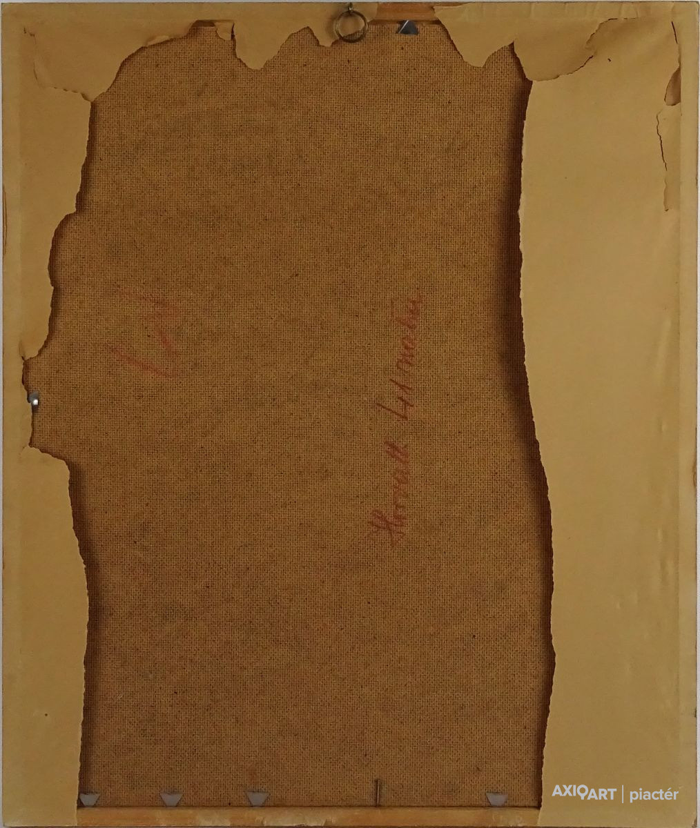 [1Y034/Z018] Olaj vászon festmény, üveglap mögött, szép állapotú képcsarnokos keretben. Akasztási lehetőséggel rendelkezik. Jelezve jobbra lent: Balog A. Hátoldalán a kereten Képcsarnok Vállalat címke töredék látható, rajta felirat: A művészeti alkotás címe: LEÁNY Magasság: 86 cm Szélesség: 66 cm Súly: 5.37 kg Balogh András (képei szignóján az 1960-as évektől Balog) (Budapest, 1919. március 14. — Budapest, 1992. március 18.) festőművész, kerttervező, művészeti szakíró, c. egyetemi tanár. Életpályája és munkássága Apai ágon a géresi Baloghok Szatmár megyéből a dél-erdélyi Alsó-Fehér megyébe származtak, anyai fölmenői a Székelyföldön: Csíkban, ill. Háromszéken éltek. Szülei az 1900-as évek elején költöztek Budapestre. A Képzőművészeti Főiskolán 1937-ben kezdte meg tanulmányait Burghardt Rezső tanítványaként. 1950-töl 1980-ig a Kertészeti Főiskolán (később Kertészeti Egyetem) tanított a kerttervezési tanszéken művészettörténetet, szabadkézi rajzot, ábrázoló geometriát és kertesztétikát. Az Iparművészeti Főiskolán óraadóként kertesztétikát adott elő. 1971-ben részt vett a firenzei Palazzo Strozziban rendezett biennálén, ahol aranyéremmel tüntették ki. Rendszeres önálló és csoportos kiállítások sora következett ezután nemcsak Magyarországon, hanem Olaszország és Németország számtalan városában, kiállított Finnországban, Kanadában is. Egyéni kiállításai gyakran katalógusokkal jelentek meg.[1][2][3] Nyaranként Tihanyban vagy Zsennyén alkotott. Festészetét poétikus realizmus jellemzi, dekoratív elrendezésű kompozíciói és lágy színvilága bensőséges hangulatot, szépséget, harmóniát árasztanak. (Lány egyszarvúval; Alvó, Emberpár és táj, stb.) Nagyon sok tájképet és portrét festett, történelmi személyiségekről is, 1978 és 1989 közt megfestette Mindszenty József bíboros portréját. Képei a Magyar Nemzeti Galériában, vidéki múzeumainkban, olasz, német, finn, észak-amerikai, kanadai, ausztráliai gyűjteményekben vannak.