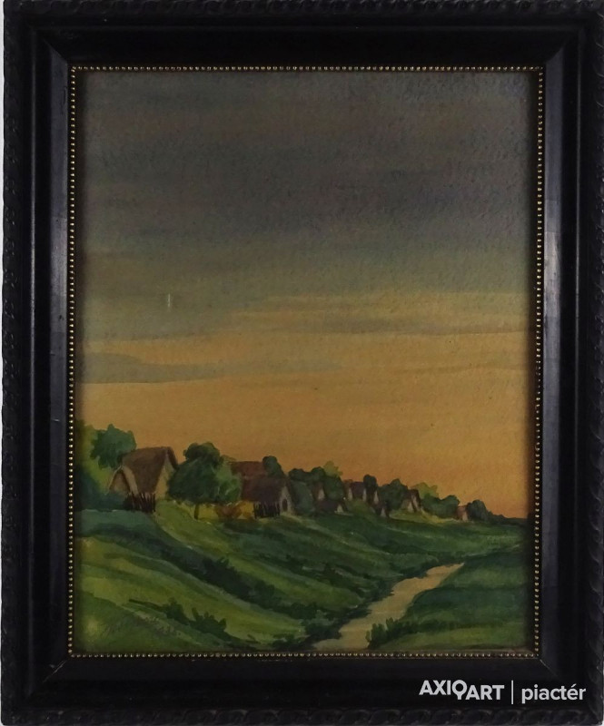papír akvarell üveglap mögött, régi fekete keretben. Akasztási lehetőséggel rendelkezik.