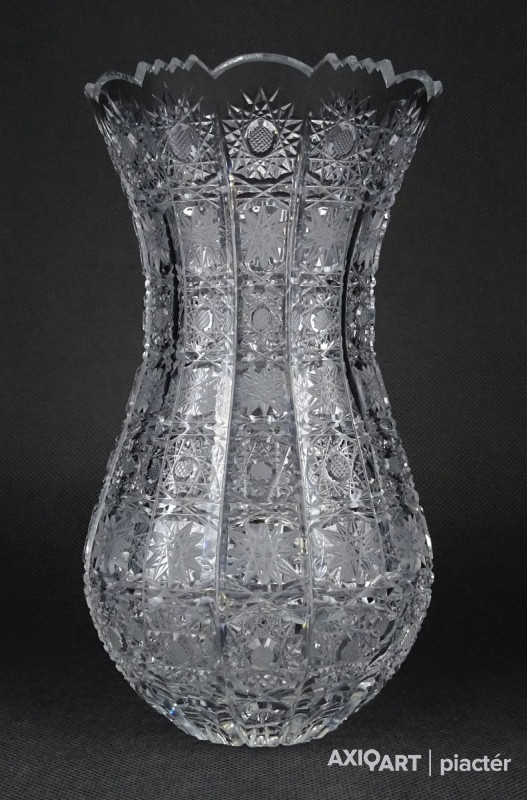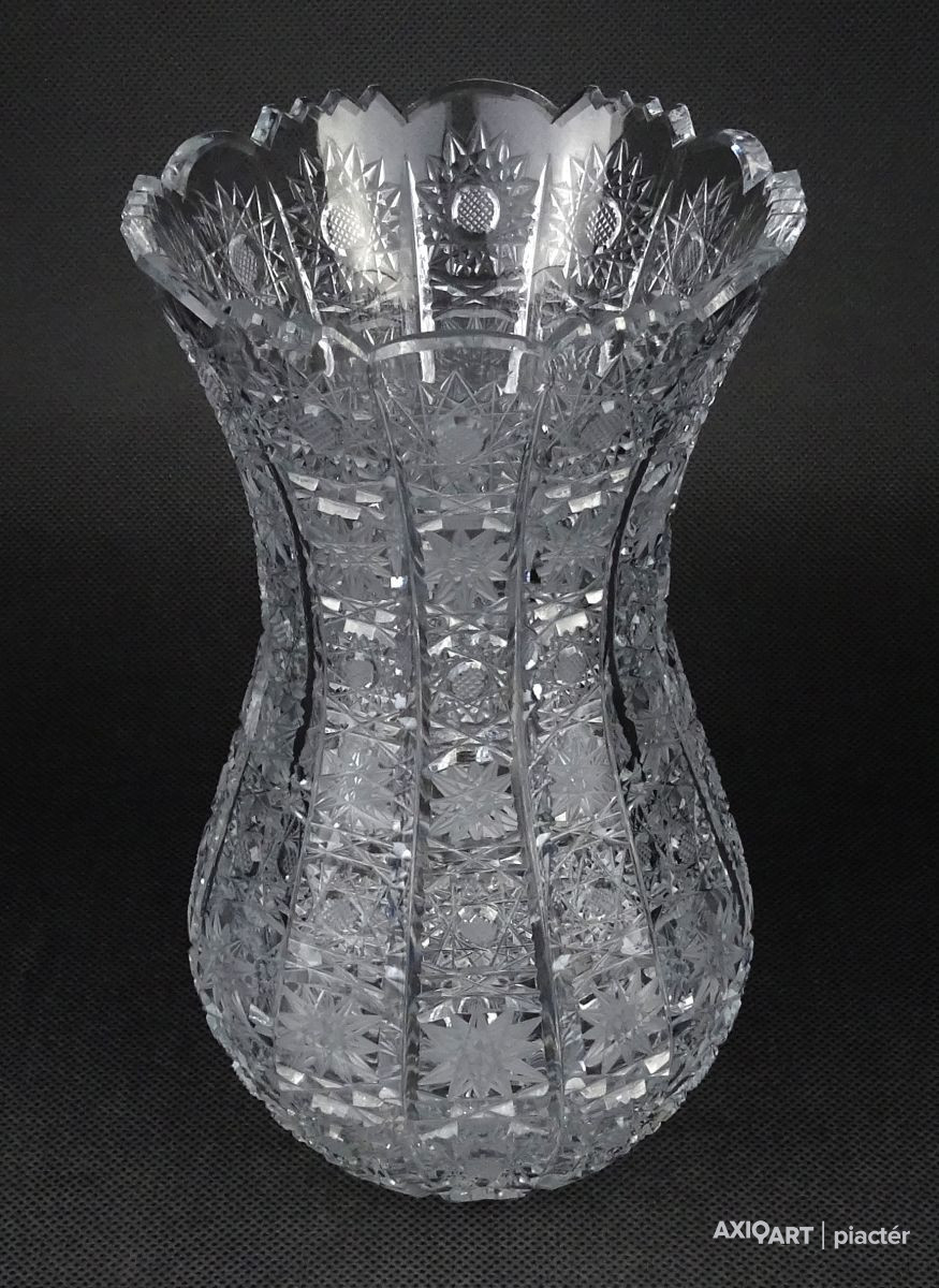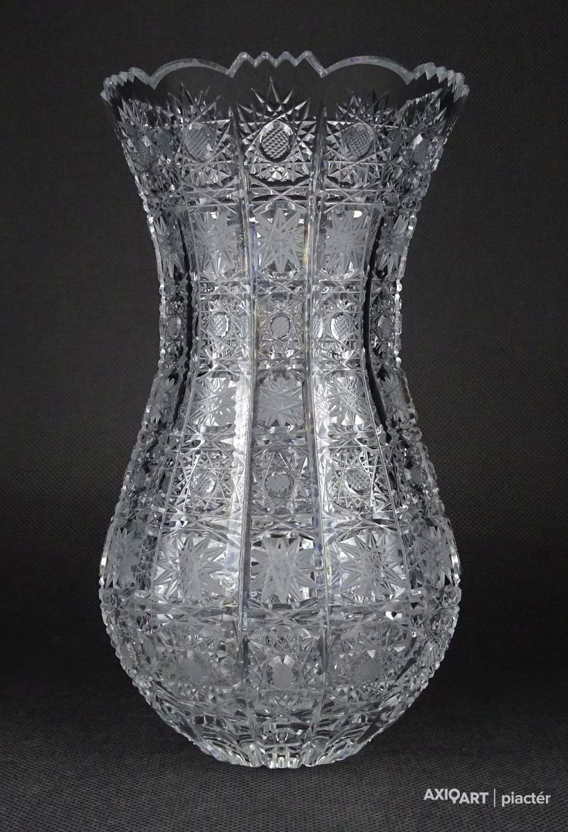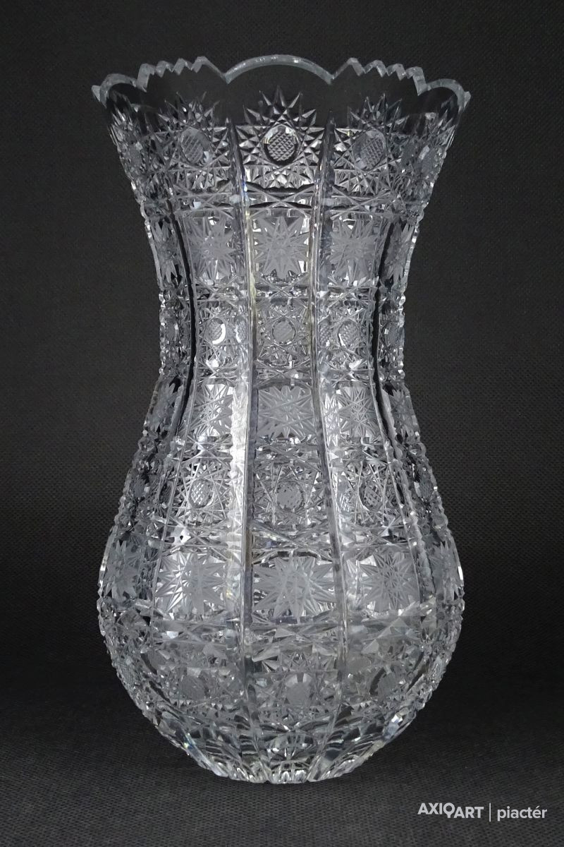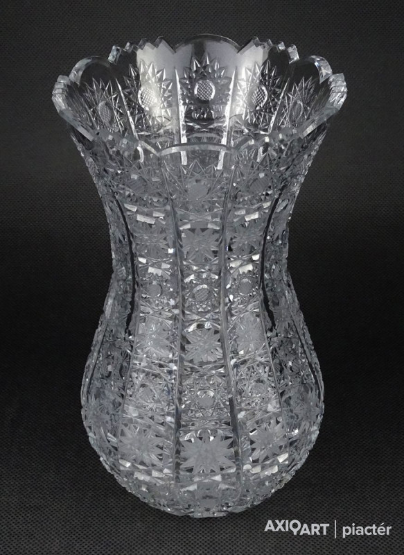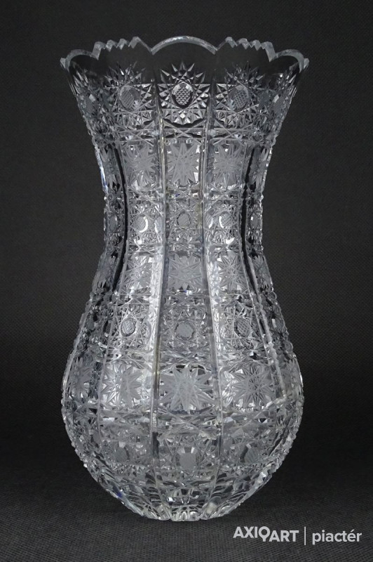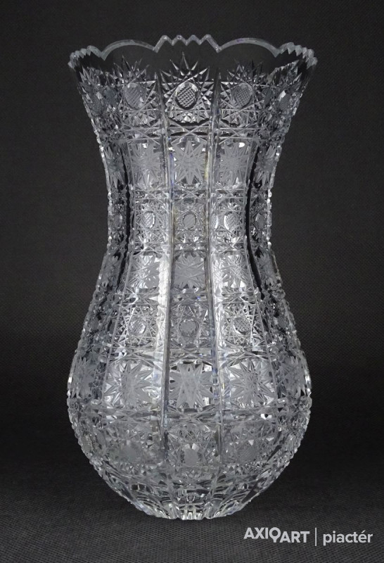Hibátlan állapotú, csiszolatokkal nagyon gazdagon díszített vastagfalú, kristály váza.