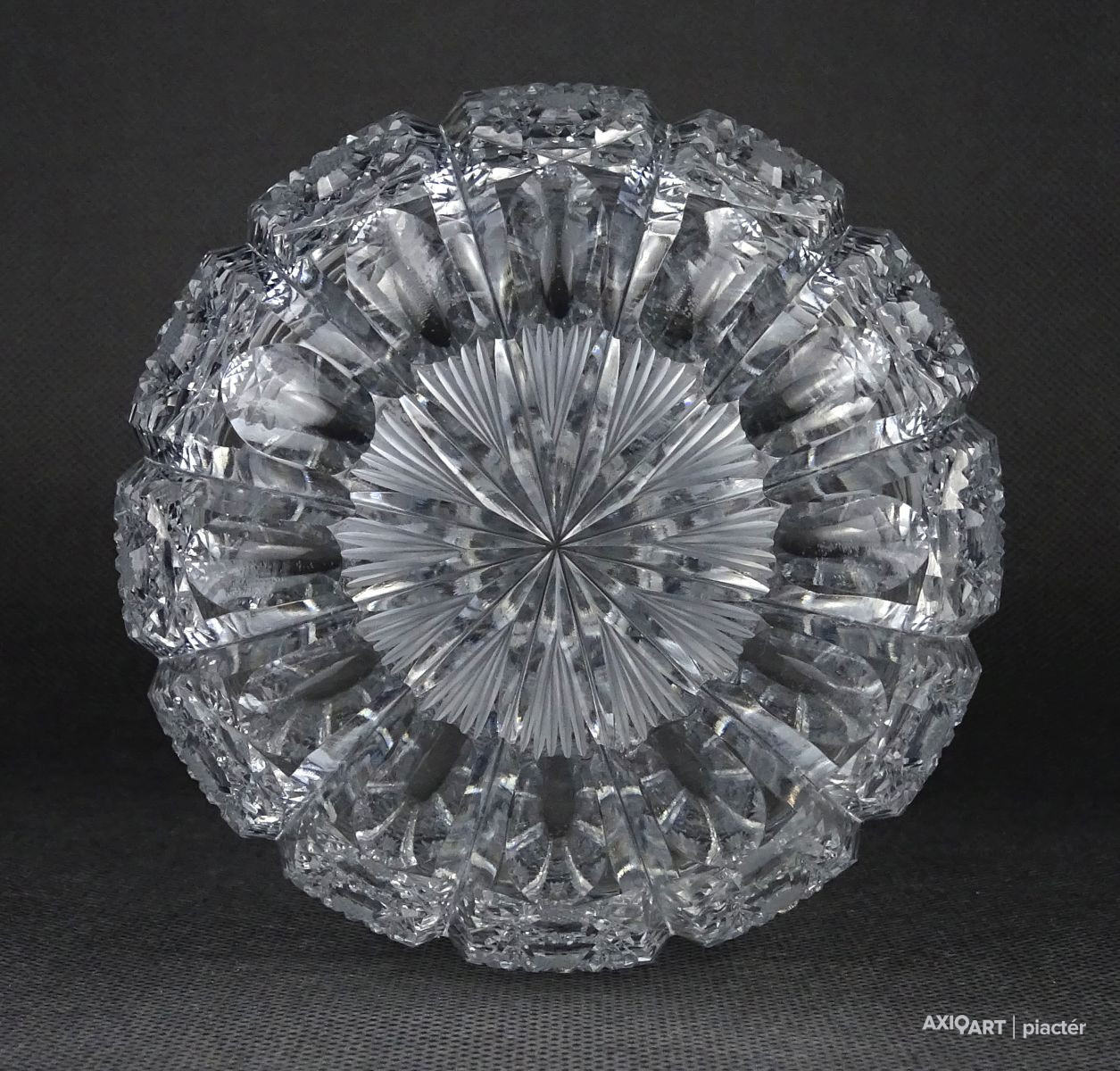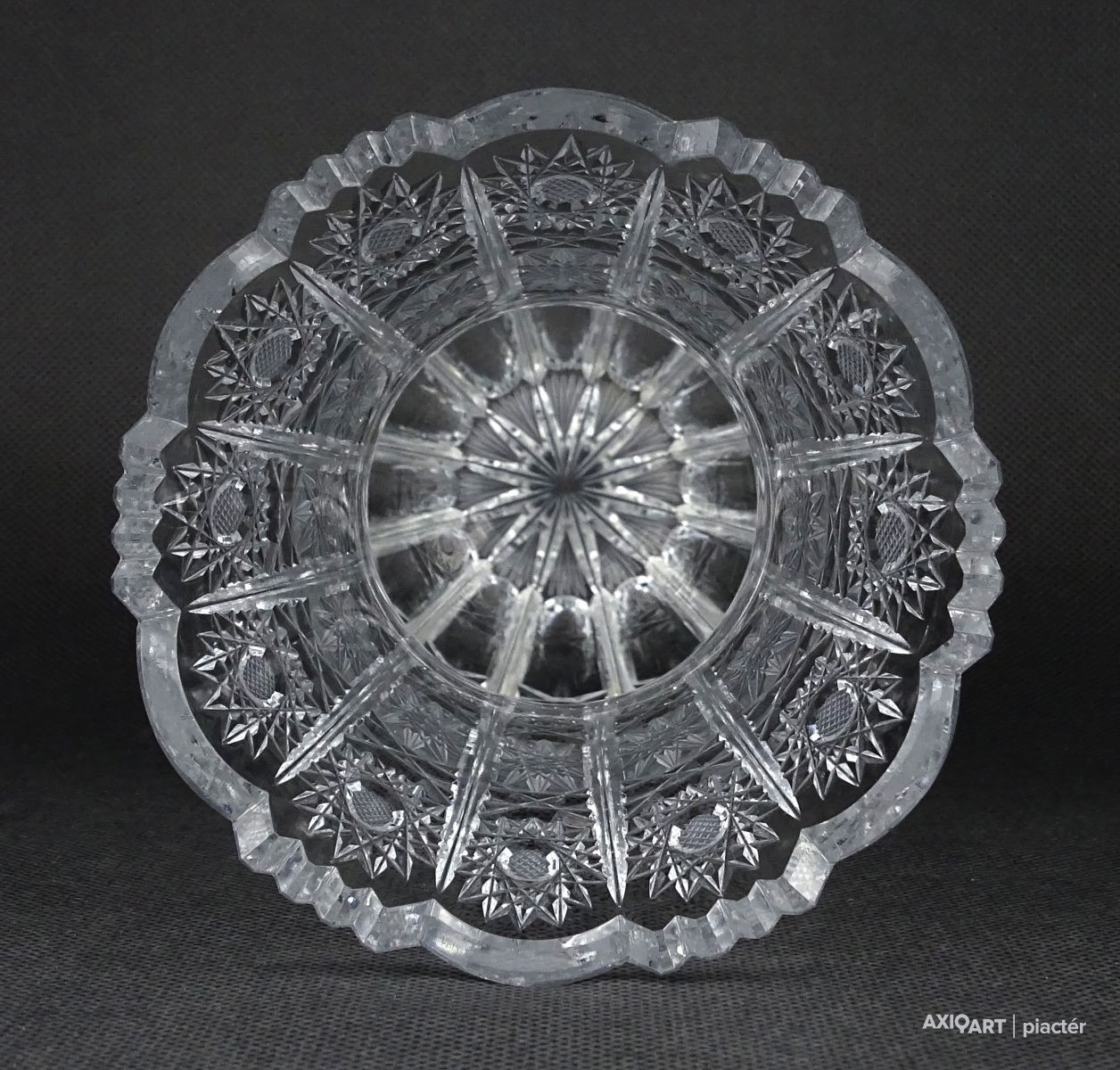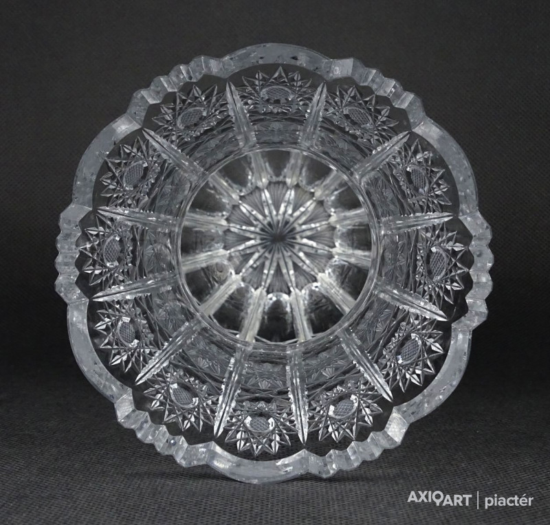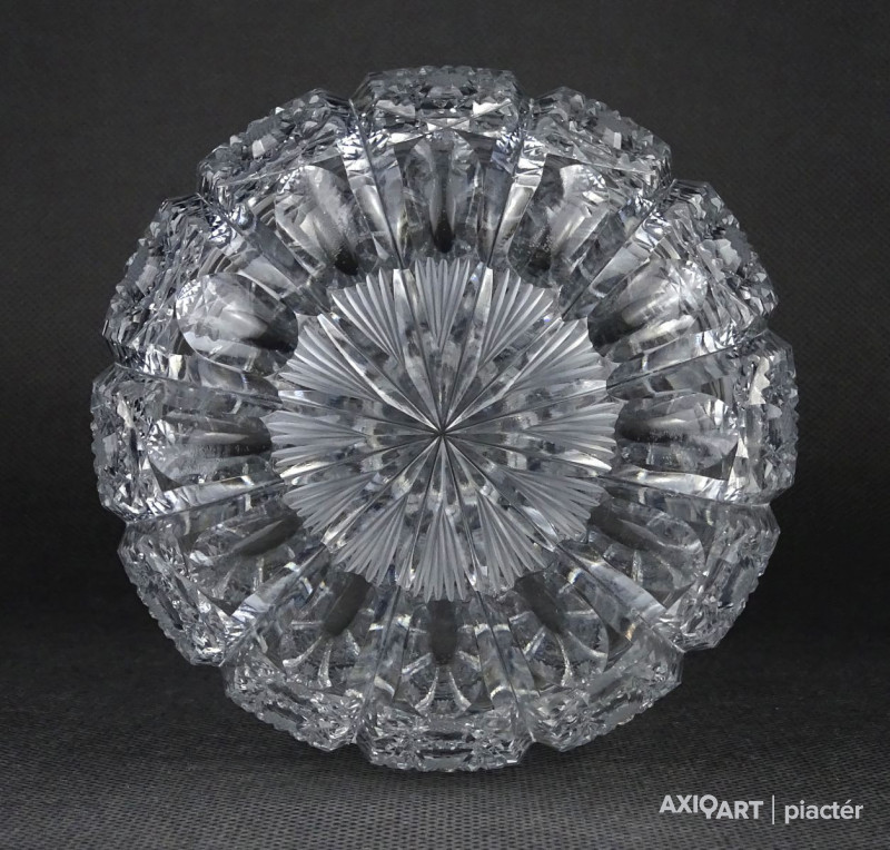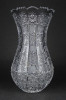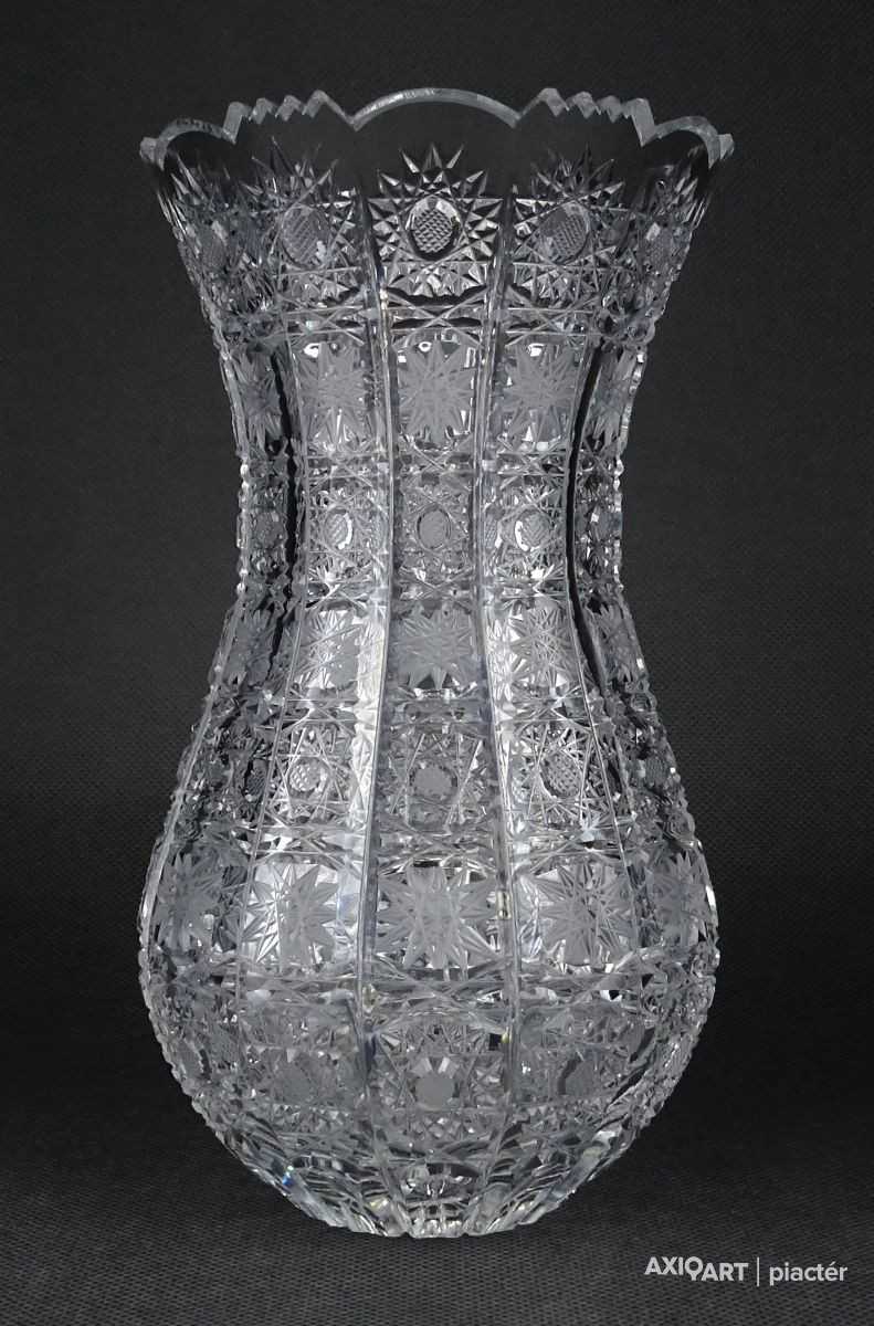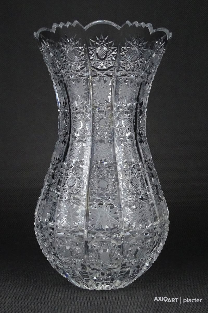 Hibátlan állapotú, csiszolatokkal nagyon gazdagon díszített vastagfalú, kristály váza.