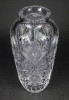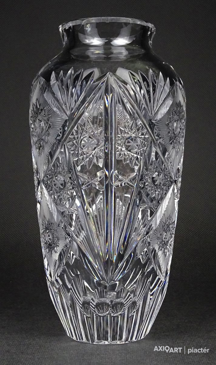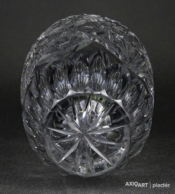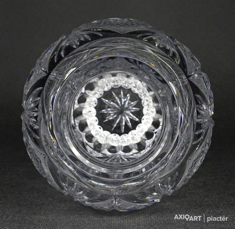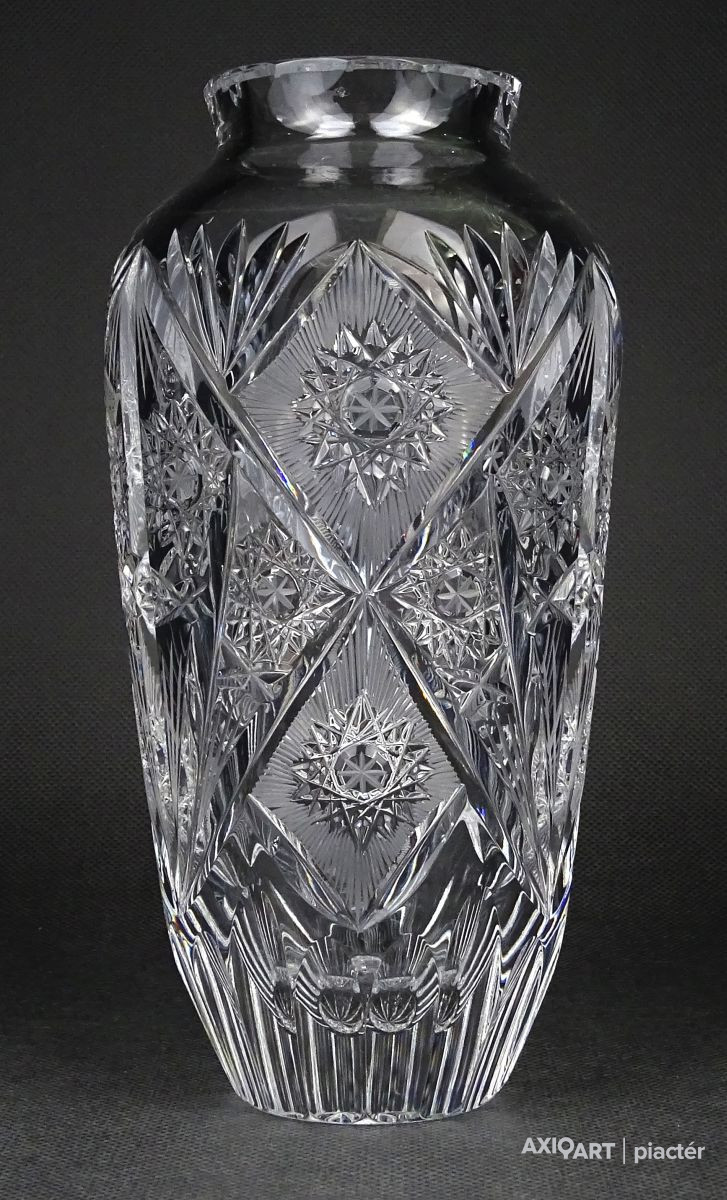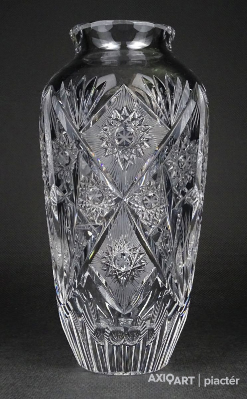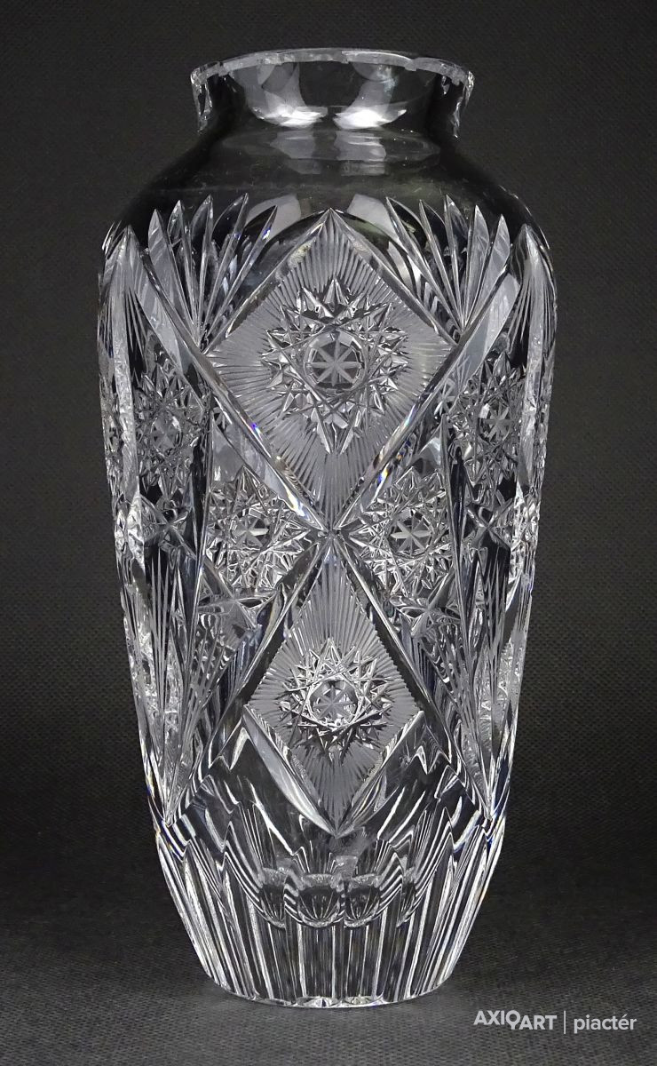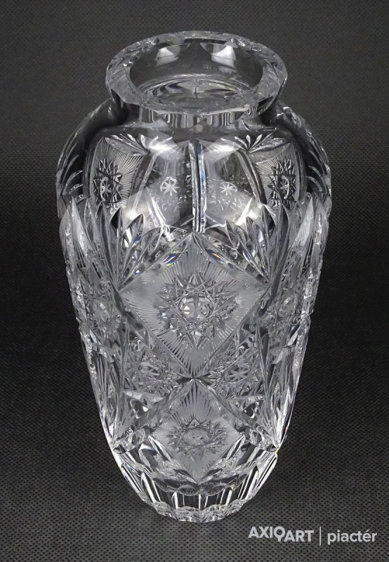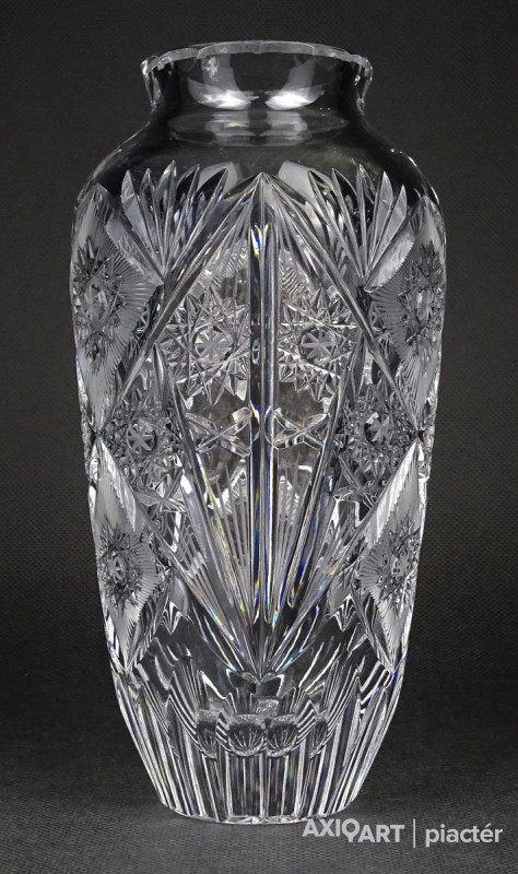 Hibátlan állapotú, csiszolatokkal díszített vastagfalú, kristály váza.