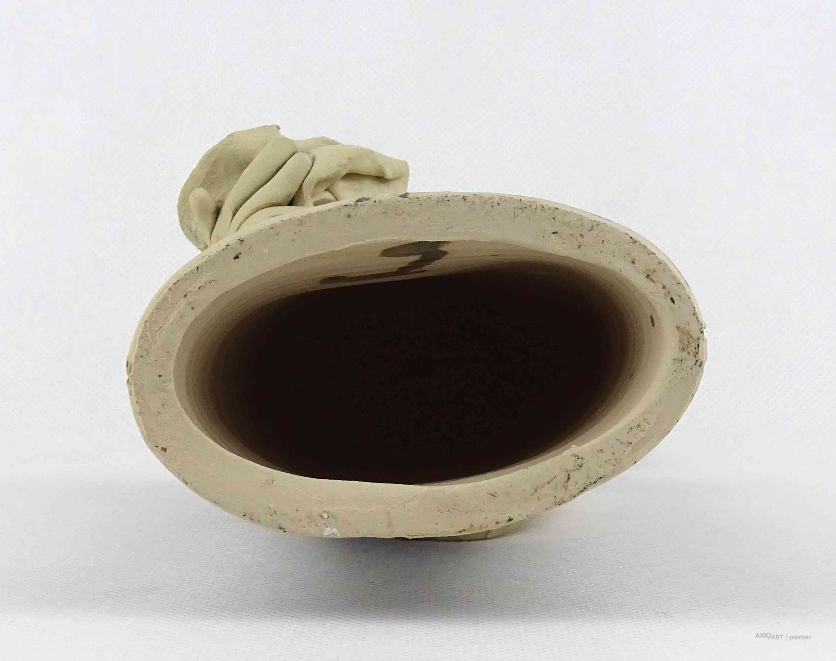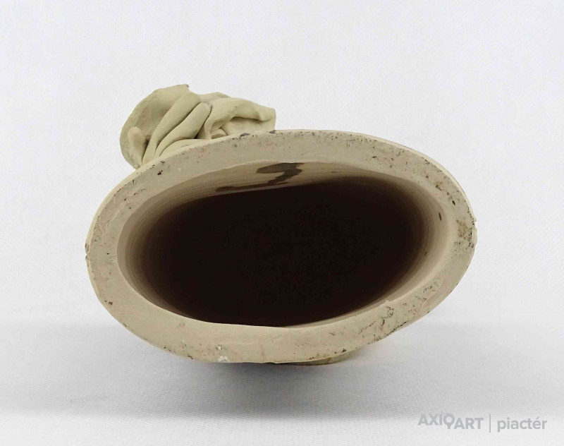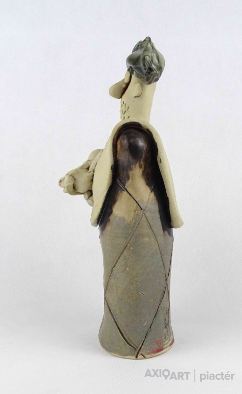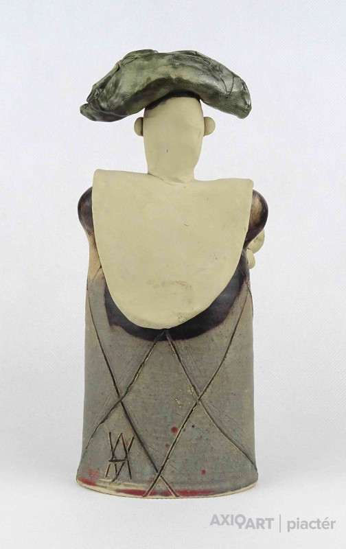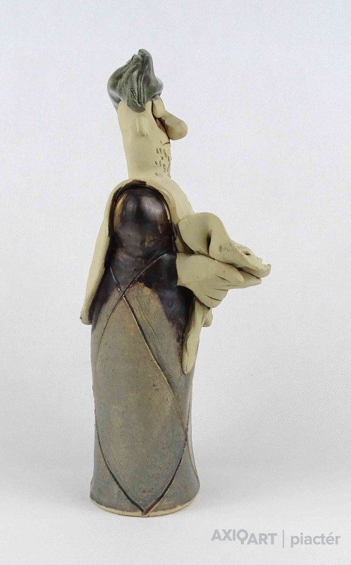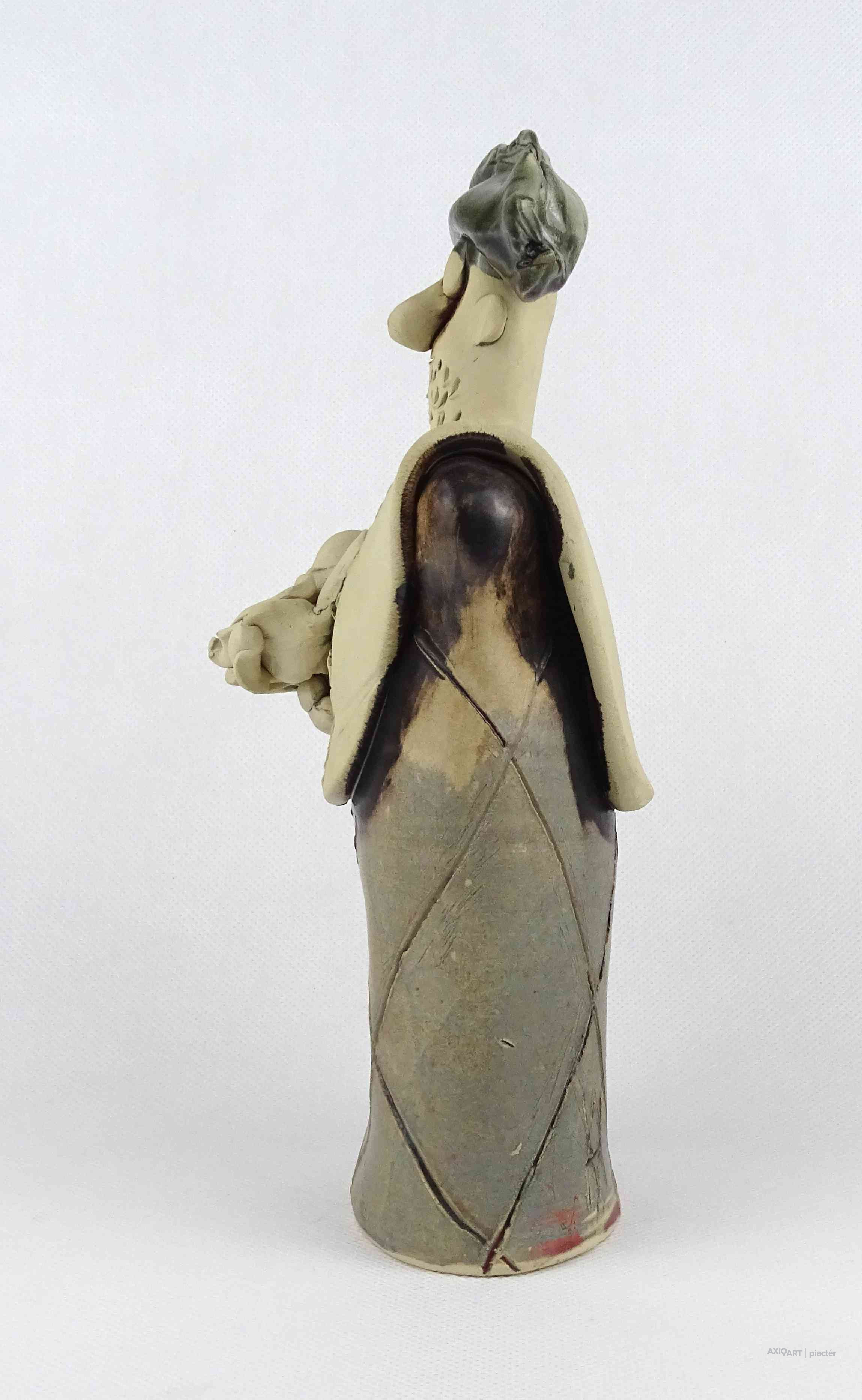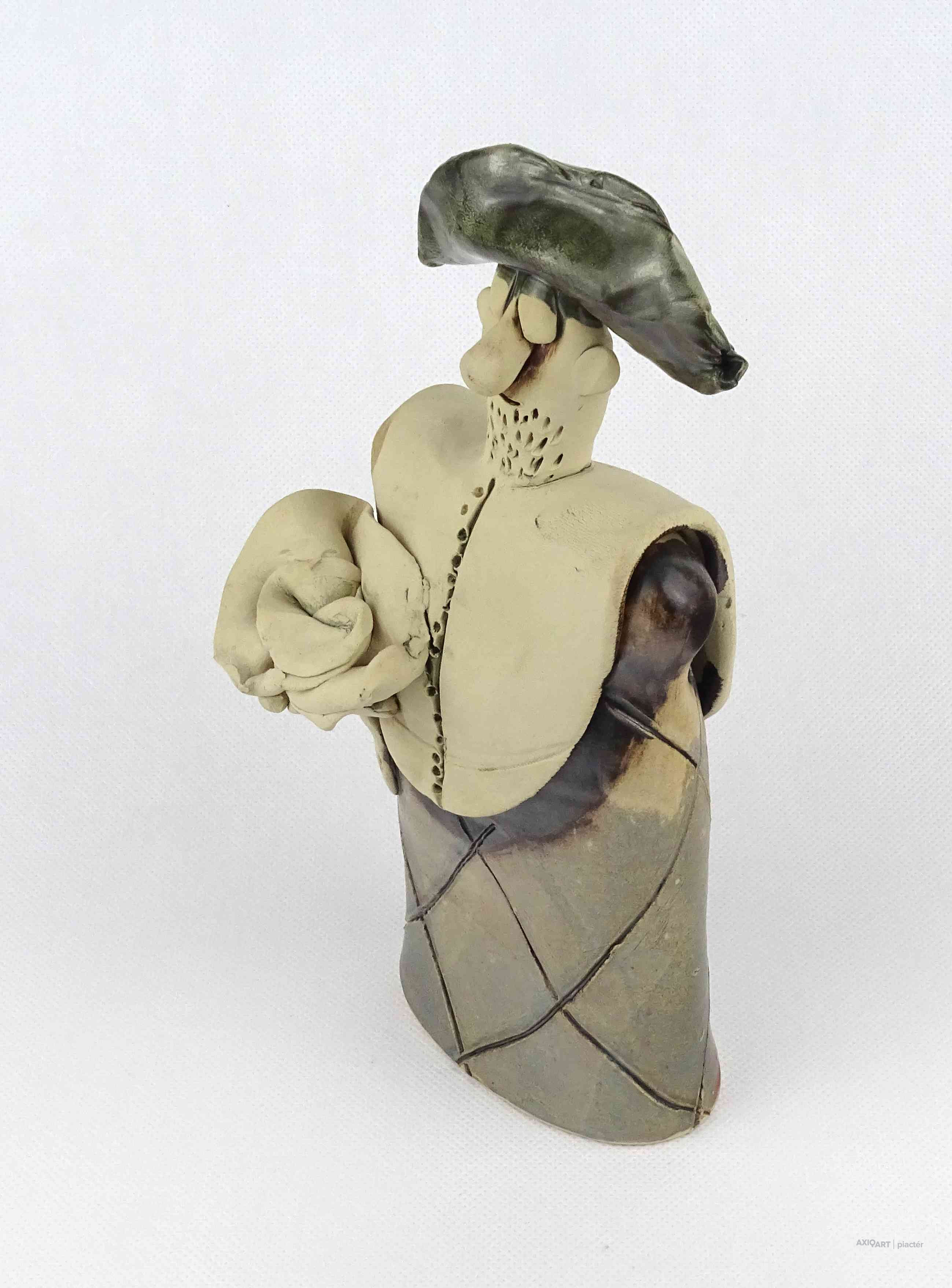 Hibátlan állapotú, jelzett kortárs Vertel Andrea kerámia kisplasztika, kerámia figura - férfi virágcsokorral.
