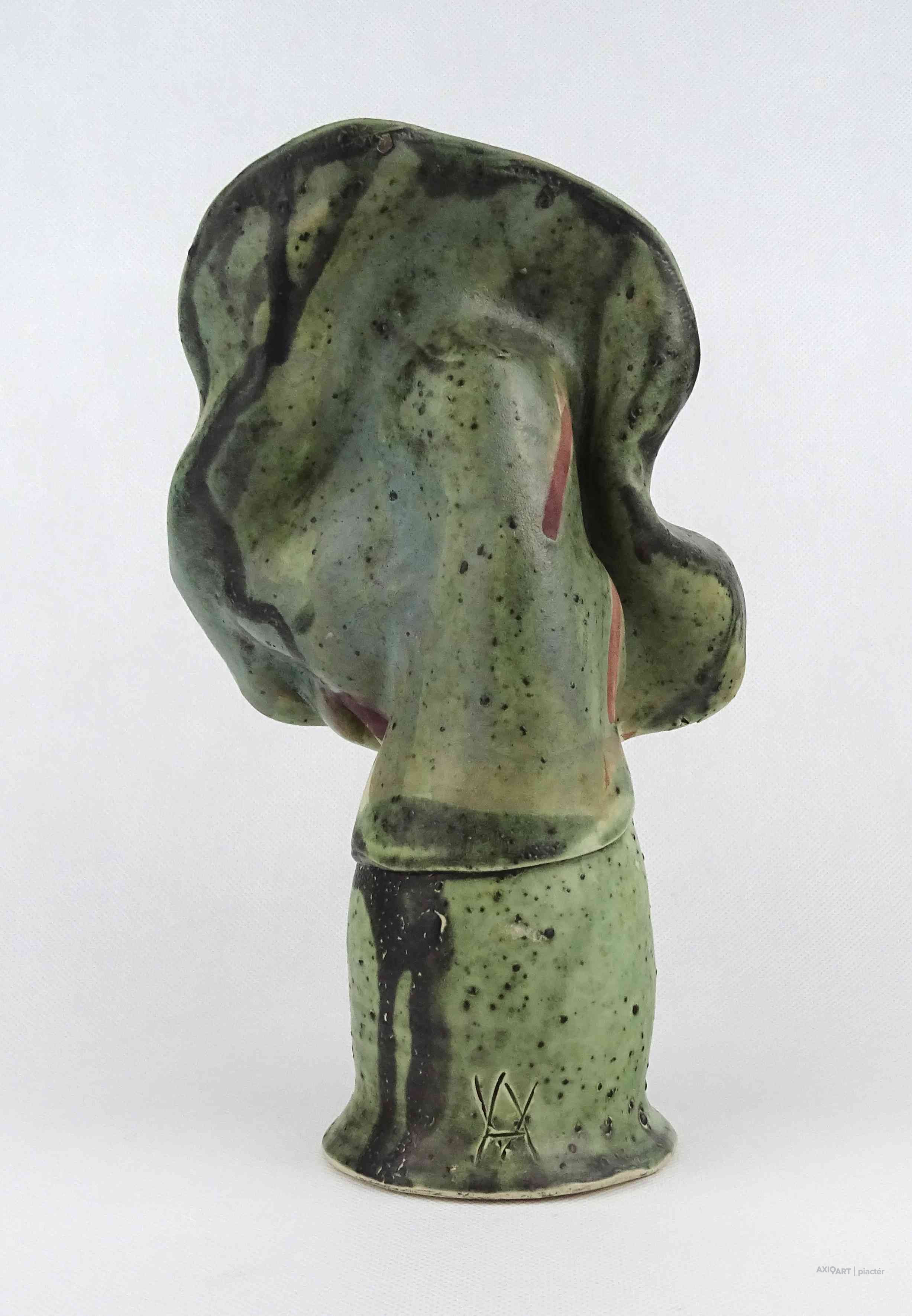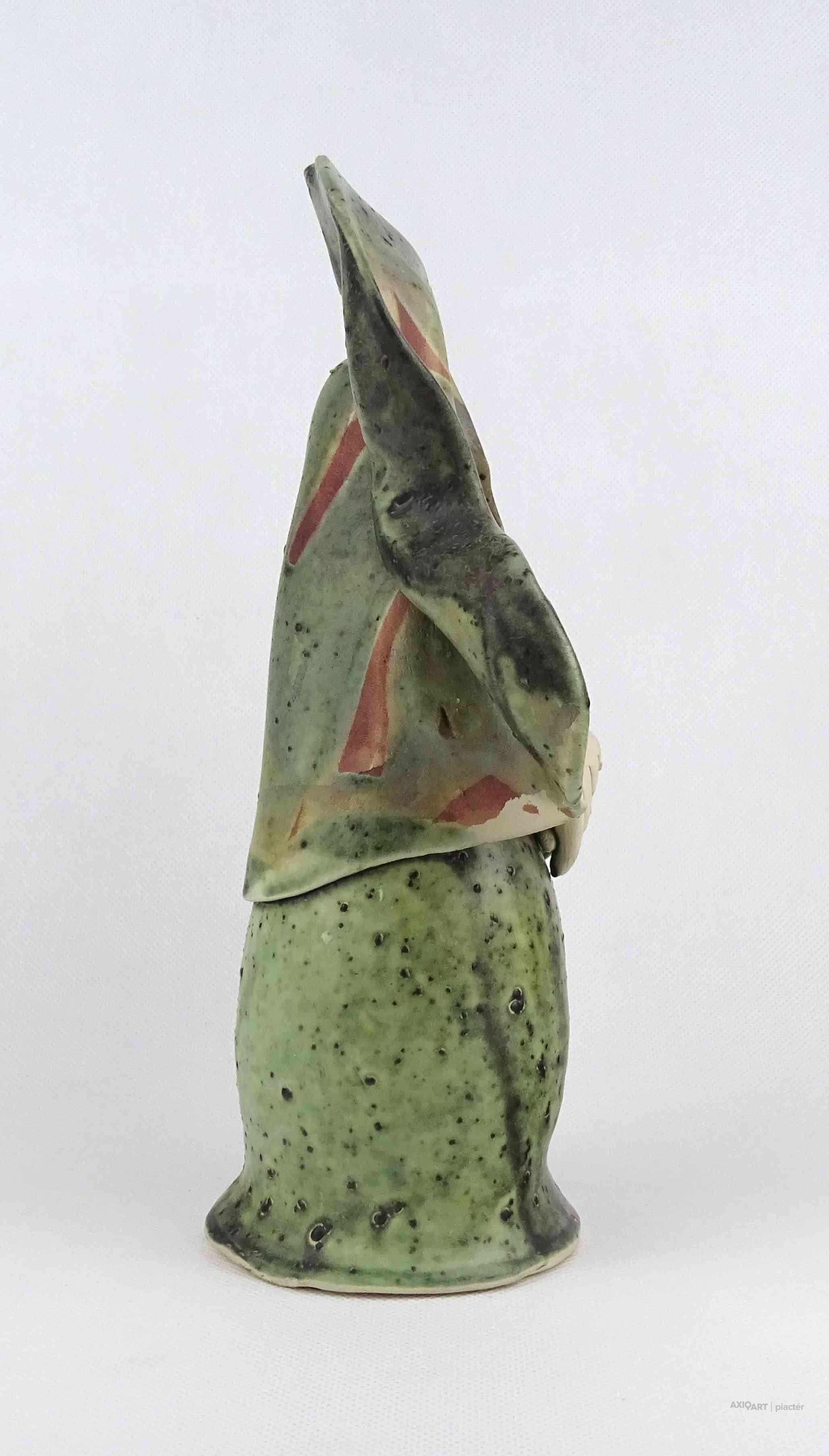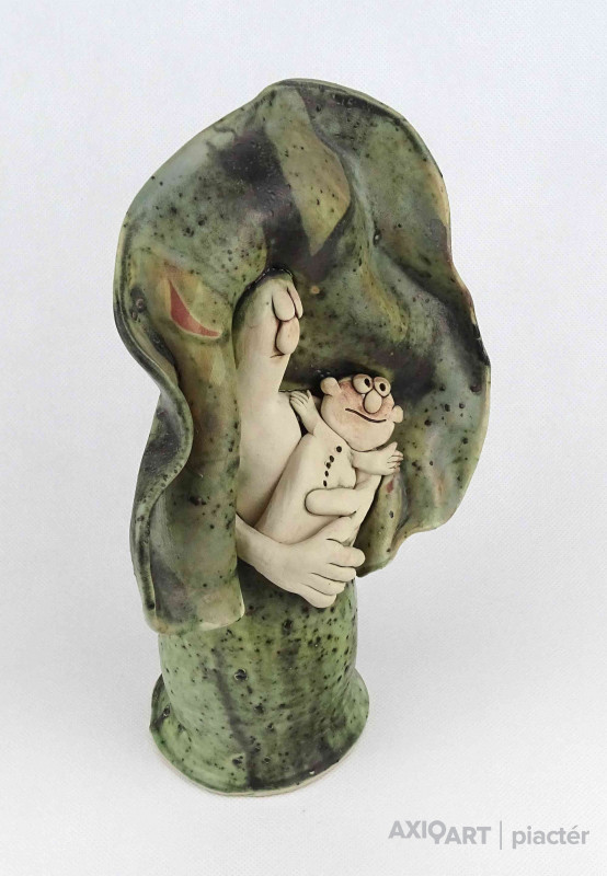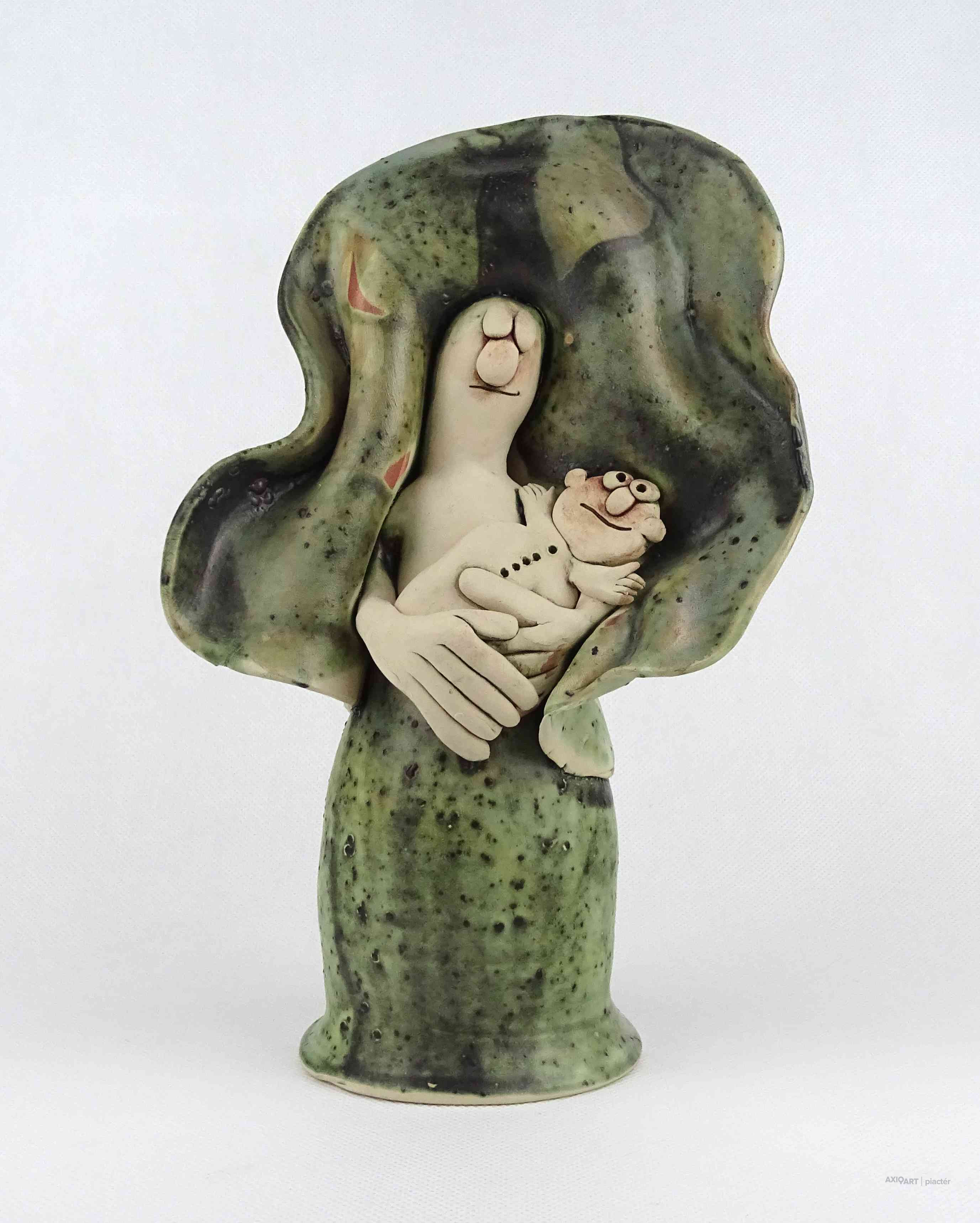 Hibátlan állapotú, jelzett kortárs Vertel Andrea kerámia kisplasztika, kerámia figura - Madonna szobor, anya gyermekével.