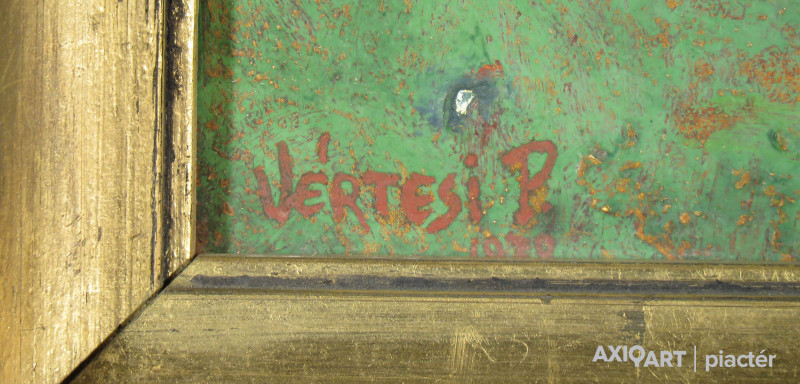 [FKD043/Bp5/61] A kép mérete: 60 x 80 cm keret nélkül. Készült: Olaj, Farostlemez A kép Vértesi Péter alkotása. Jelezve balra lent "Vértesi P." A festmény jó állapotban van. Keret: Ép