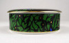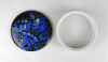 [1Z197/Z047] Hibátlan állapotú, Vészabó Noémi festőművész által tervezett Klára mintás, fekete - kék - zöld - arany színű, virág mintával díszített, jelzett, fedeles Hollóházi porcelán ékszertartó, gyűrűtartó bonbonier, porcelán szelence. Alján kék Hollóházi márkjelzés: 1777 HOLLÓHÁZA HUNGARY A tervező szignója feketével: VESZABONOEMI Magasság: 4.7 cm Szélesség: 12.2 cm Súly: 0.32 kg