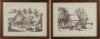 [1T229/040] Szépen keretezett, üveglap mögött található grafikai nyomat pár. Kettő darab vidéki ház állatokkal, keményfa keretben. Nyomdatechnikai nyomat pár. Akasztási lehetőséggel rendelkeznek. Magasság: 15.5 cm Szélesség: 20 cm Súly: 0.6 kg