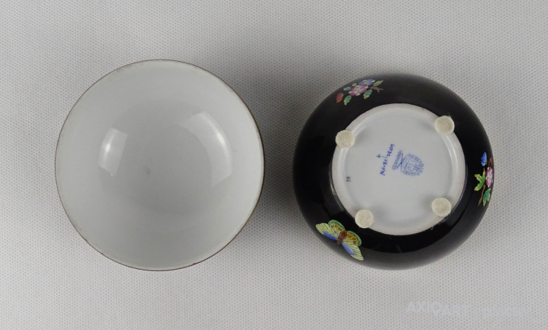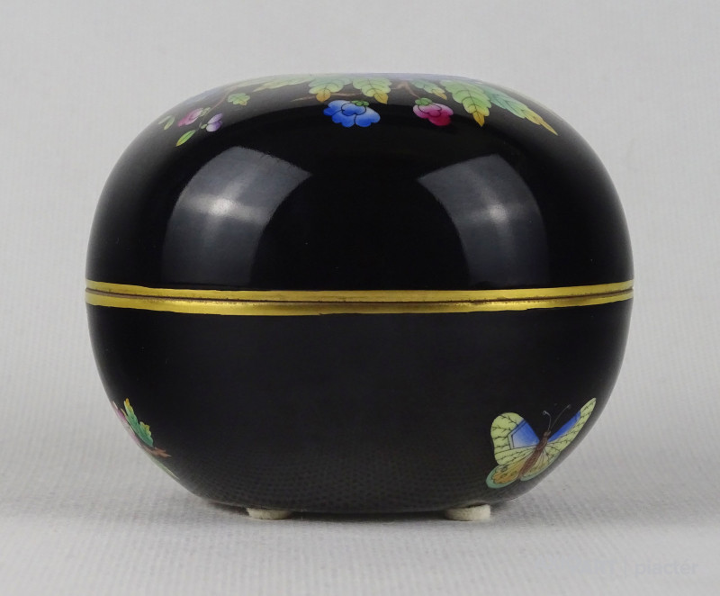 Viktória mintás fekete Herendi porcelán bonbonier