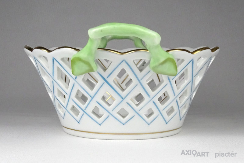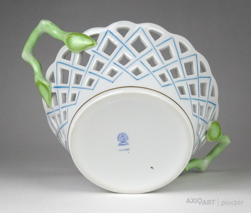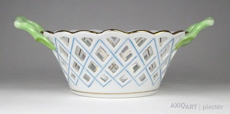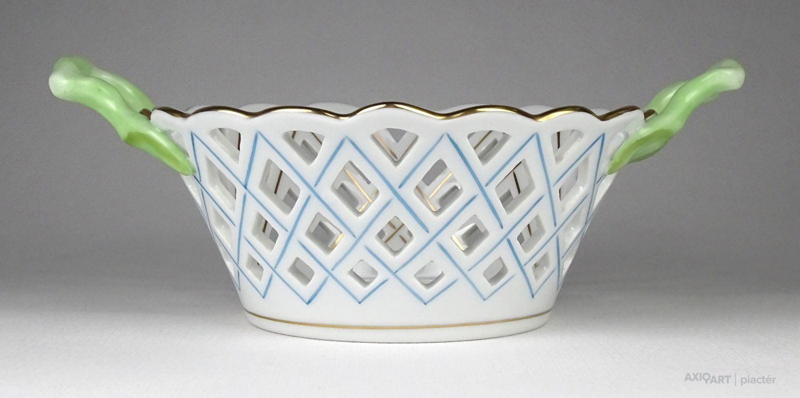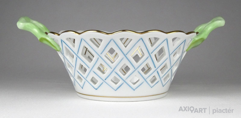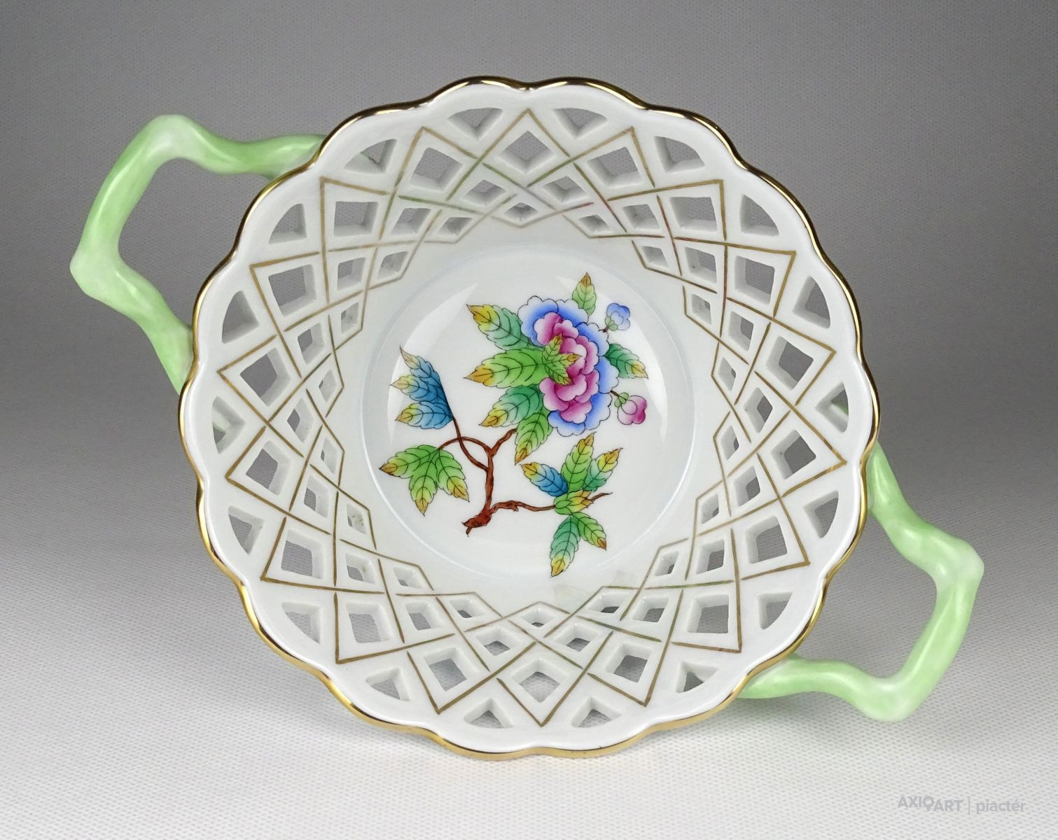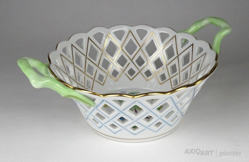 Hibátlan állapotú, áttört, két füles viktória mintás Herendi porcelán kosár, kínáló tál.