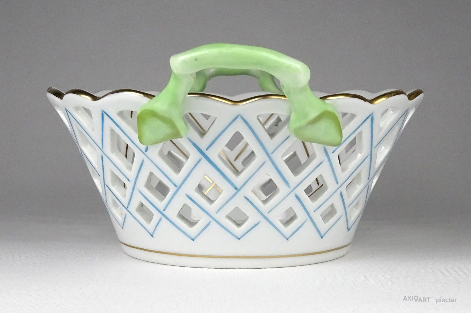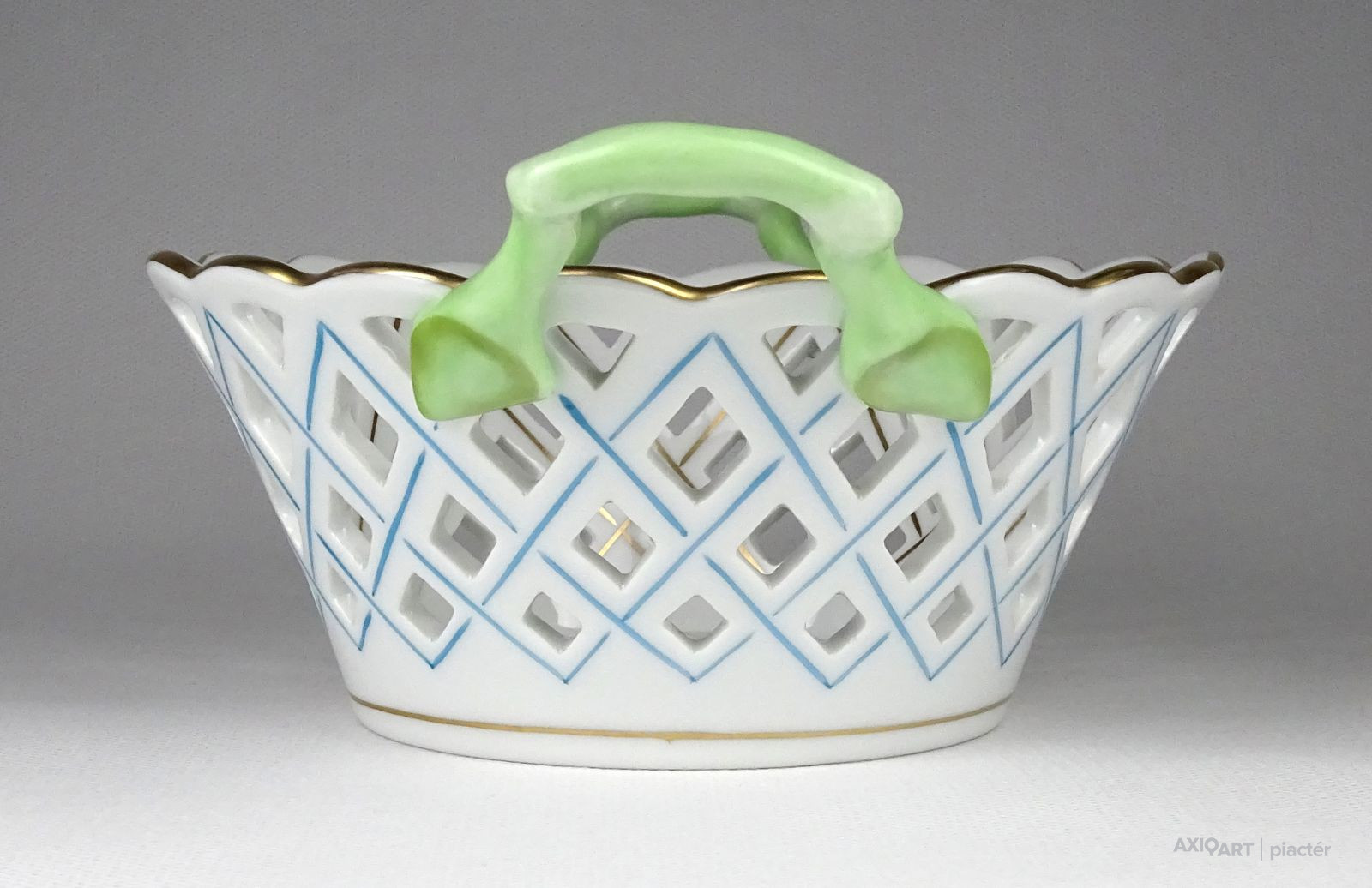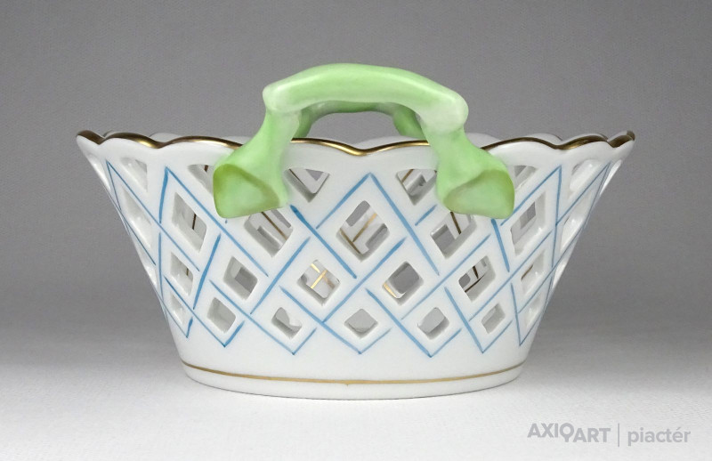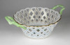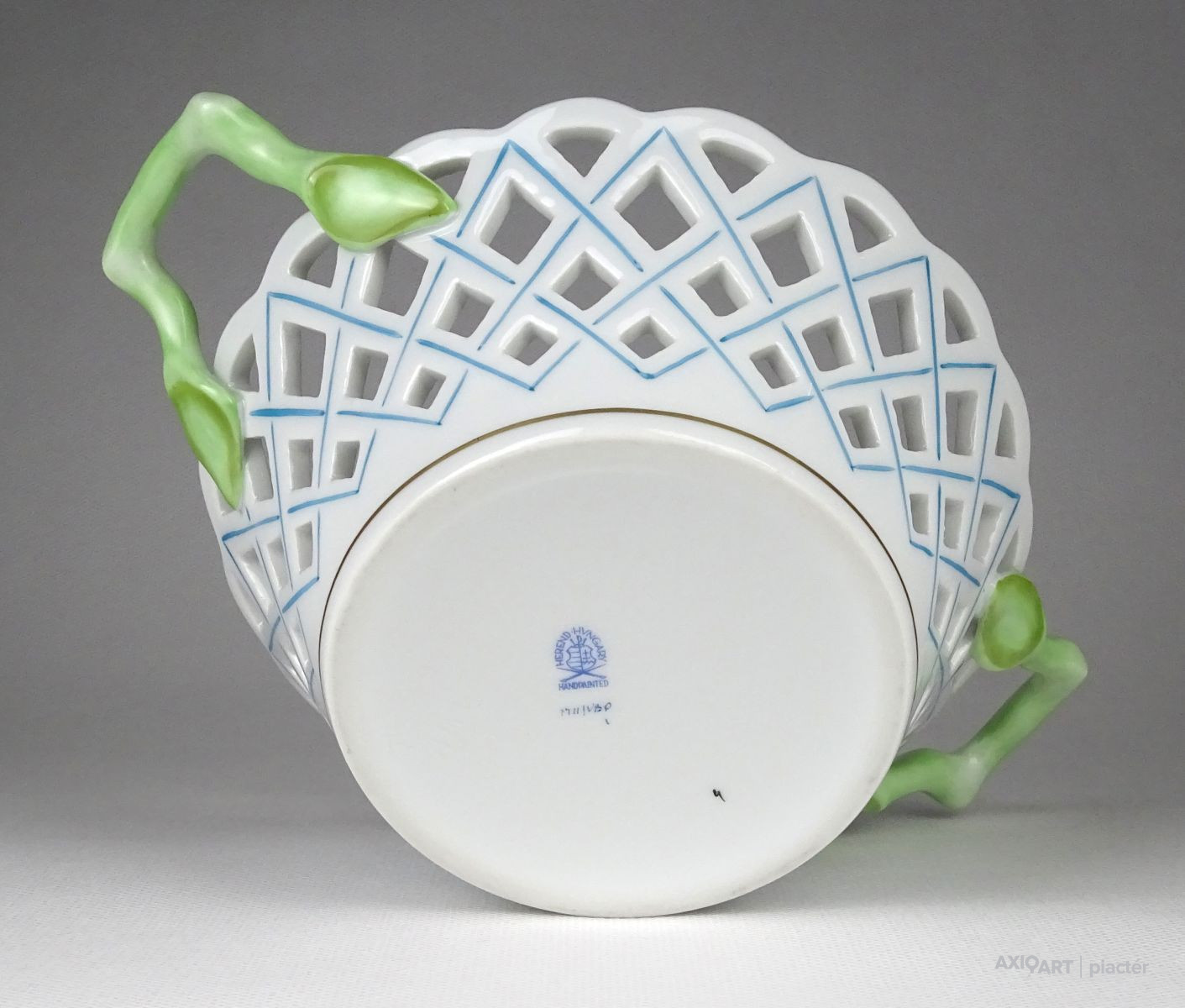 Hibátlan állapotú, áttört, két füles viktória mintás Herendi porcelán kosár, kínáló tál.