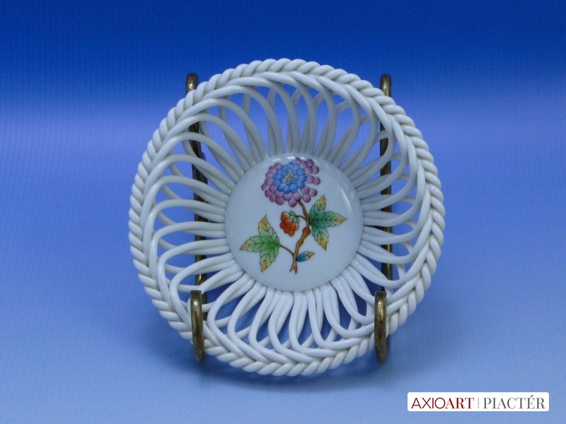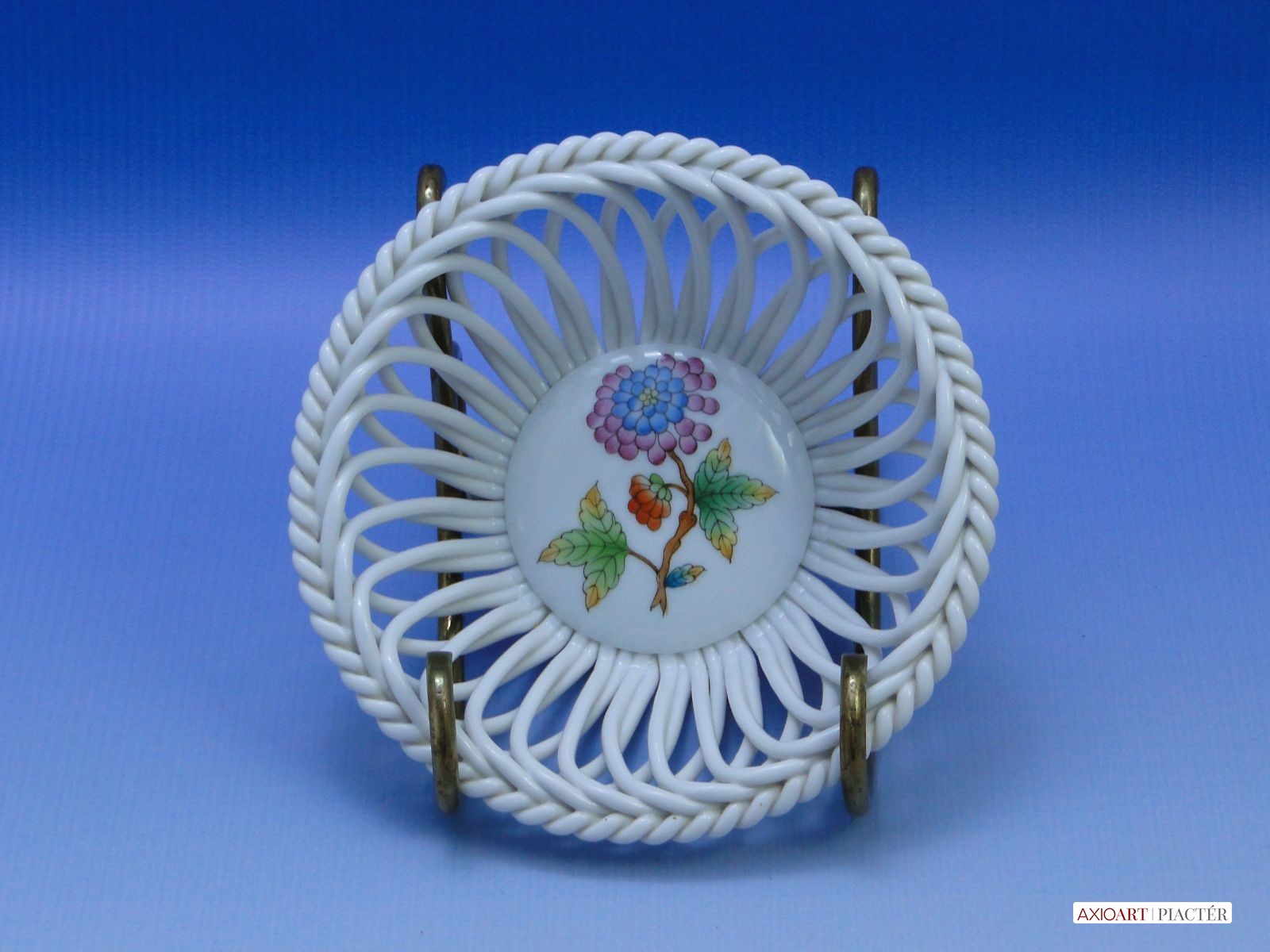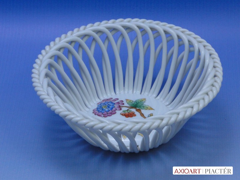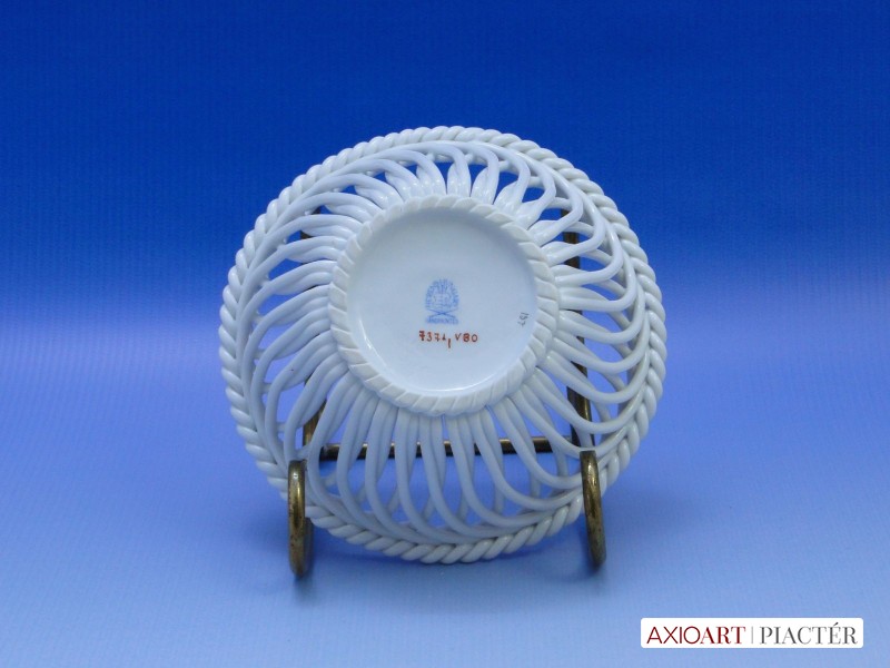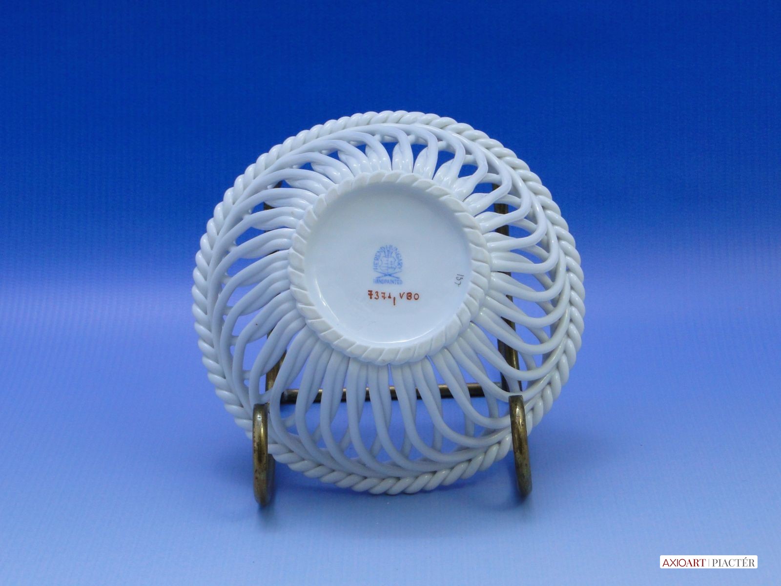 Hibátlan állapotú, gyönyörű fonatos, áttört díszes I. osztályú herendi porcelán, kosárka.