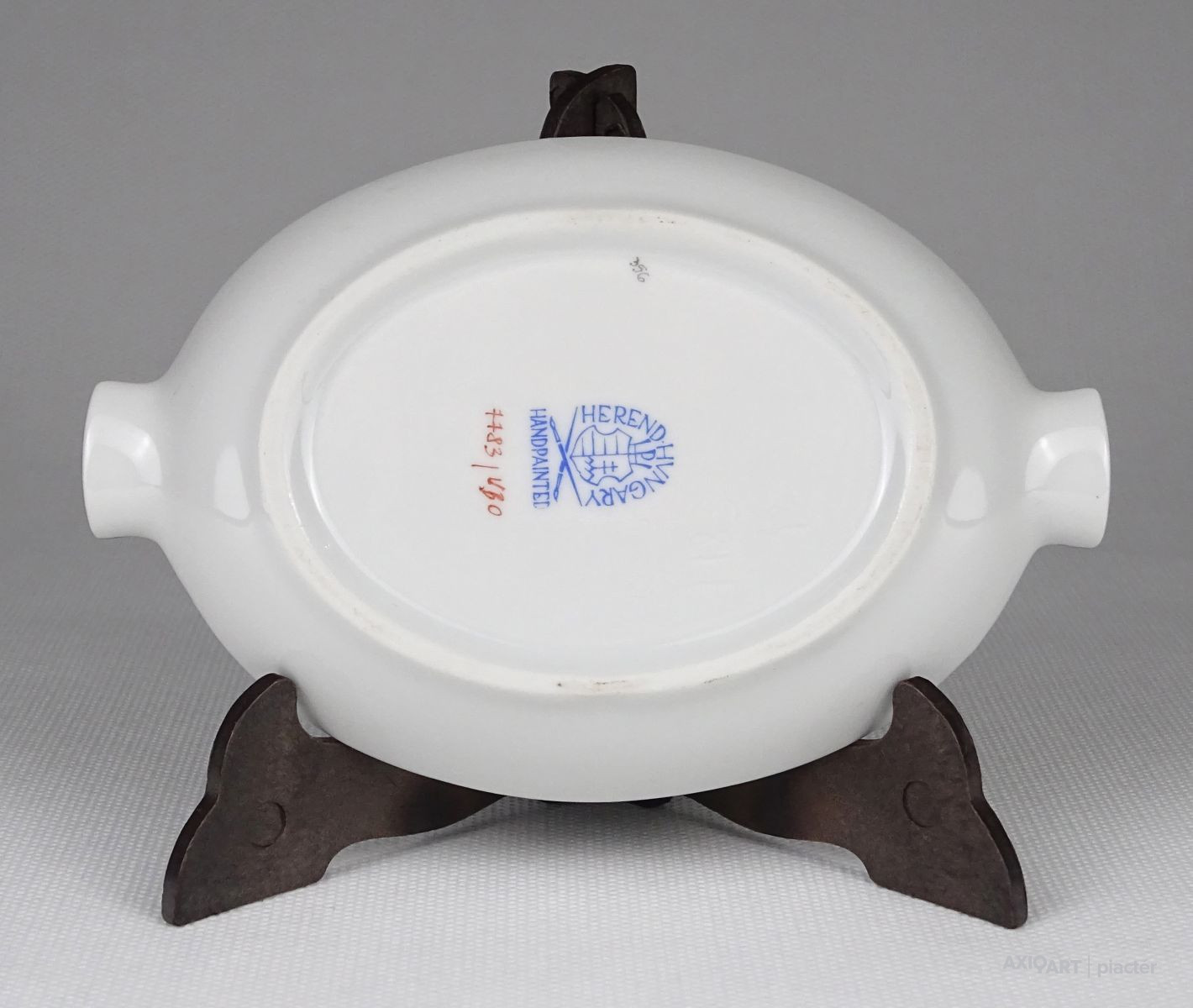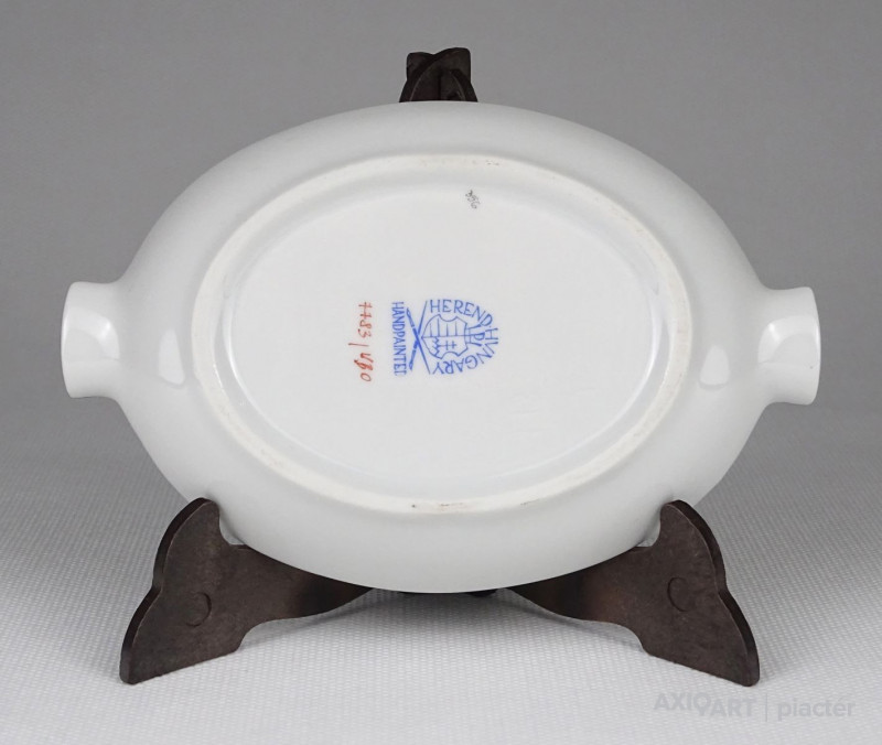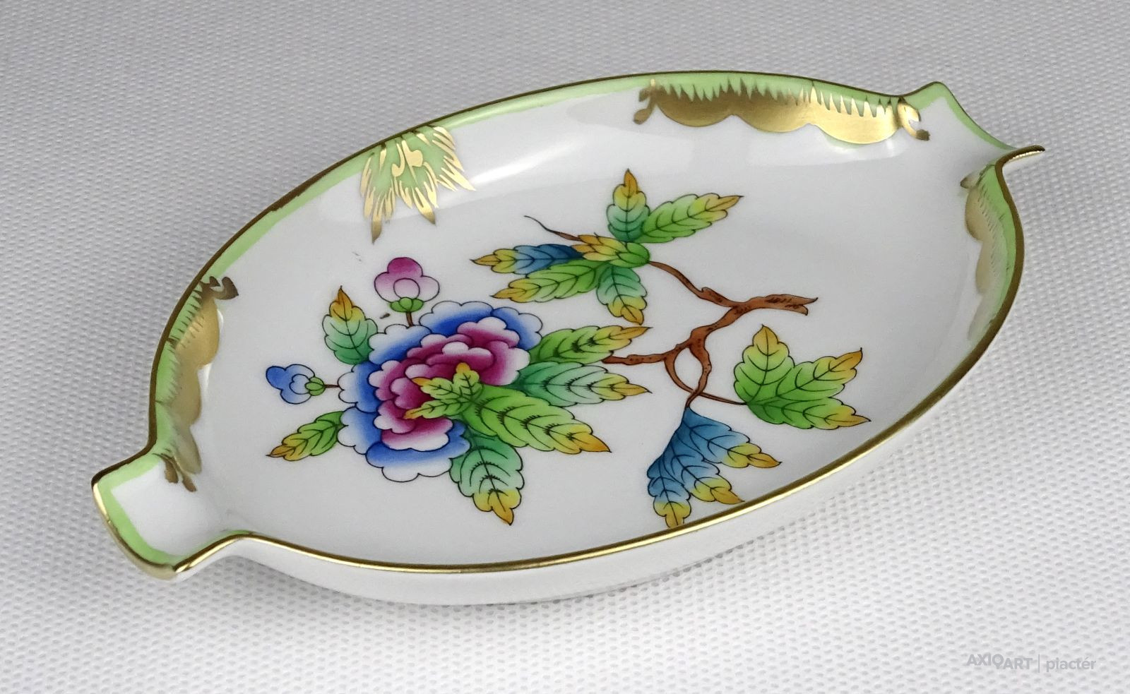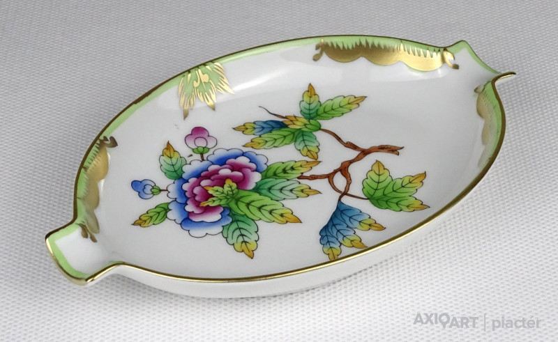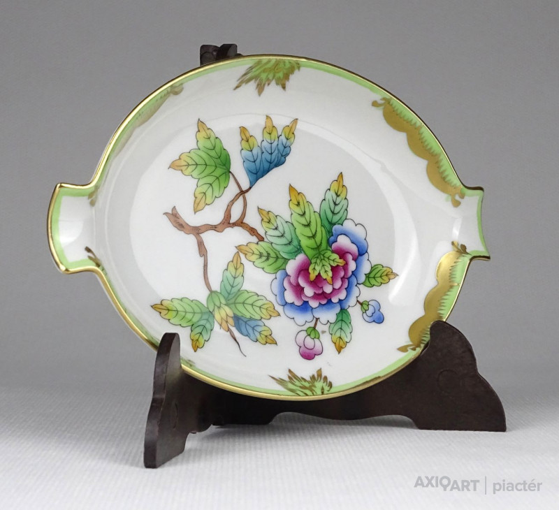 [1M793/Z022] Hibátlan állapotú, kétállásos Viktória mintás Herendi porcelán tál, tálka, hamutartó. Alján kék Herendi jelzés: HEREND HUNGARY HANDPAINTED Mélynyomással: HEREND Formaszám pirossal: 7783/VBO Szélesség: 8.8 cm Hosszúság: 13.4 cm Súly: 0.075 kg