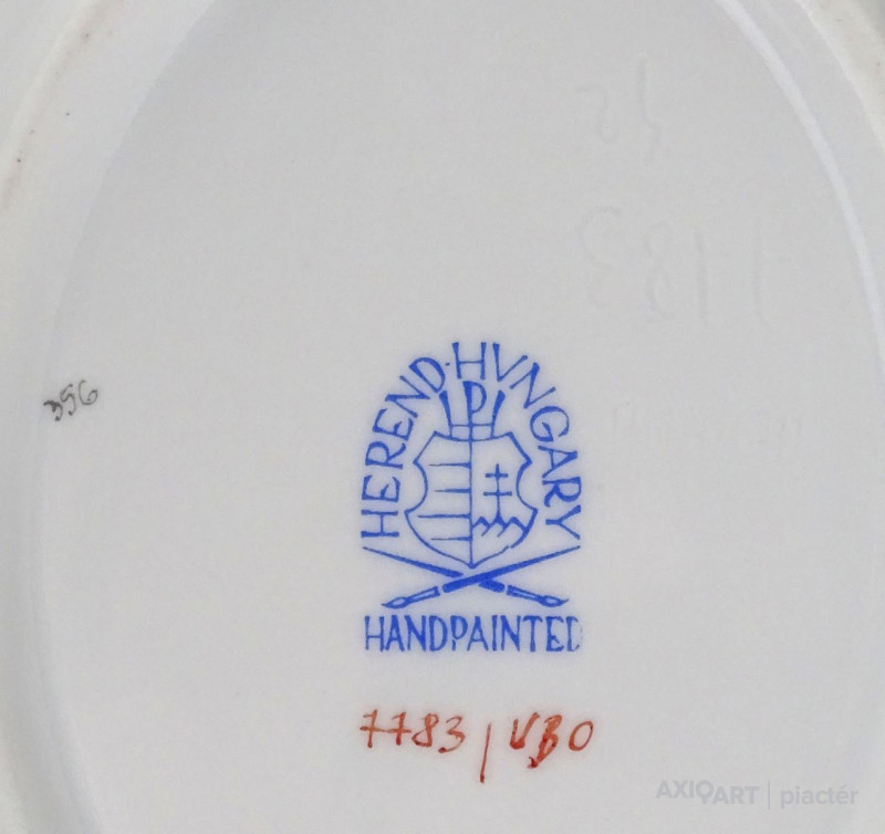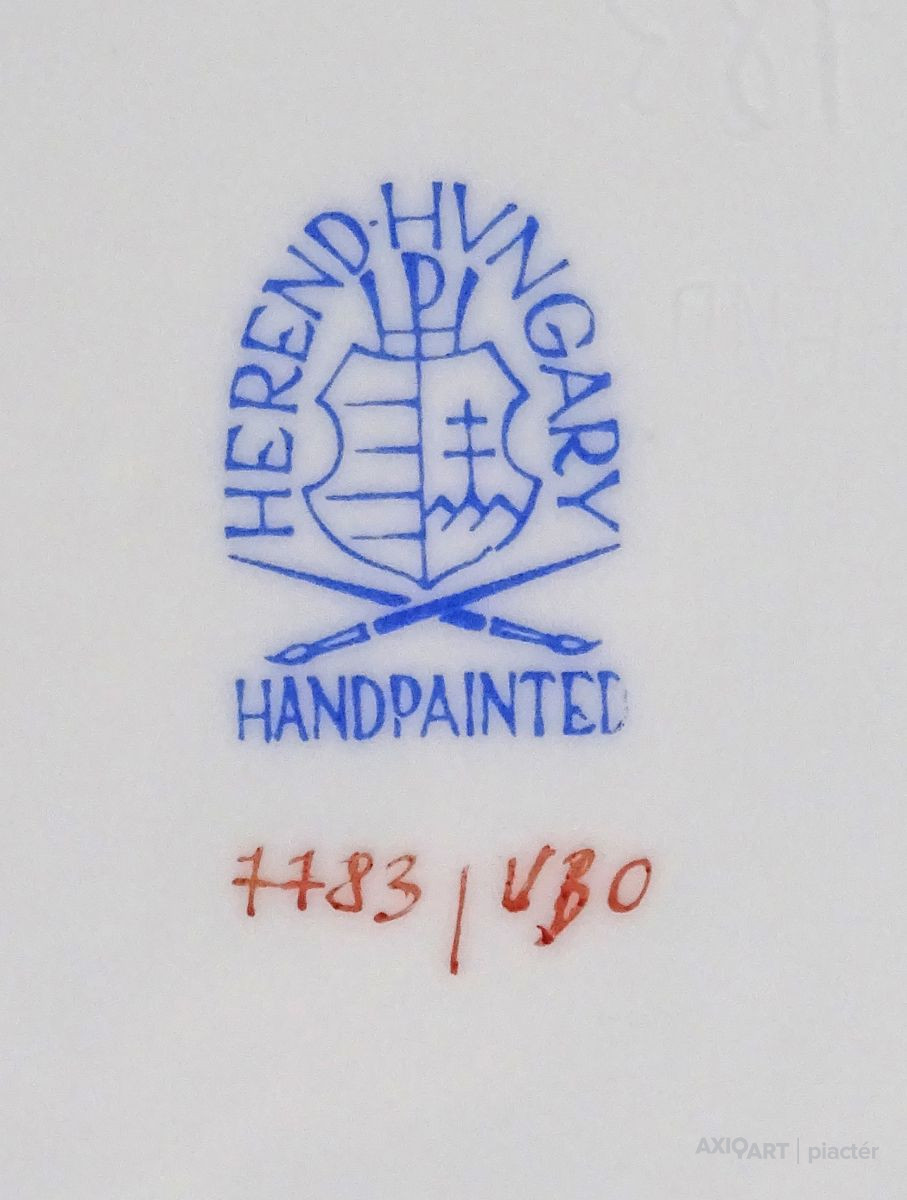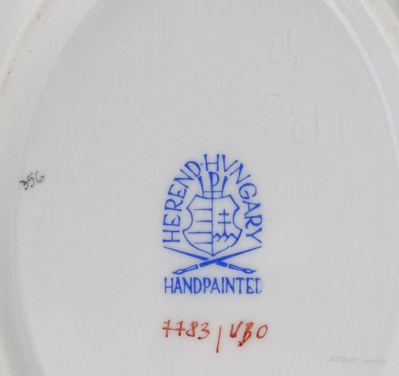 [1M793/Z022] Hibátlan állapotú, kétállásos Viktória mintás Herendi porcelán tál, tálka, hamutartó. Alján kék Herendi jelzés: HEREND HUNGARY HANDPAINTED Mélynyomással: HEREND Formaszám pirossal: 7783/VBO Szélesség: 8.8 cm Hosszúság: 13.4 cm Súly: 0.075 kg