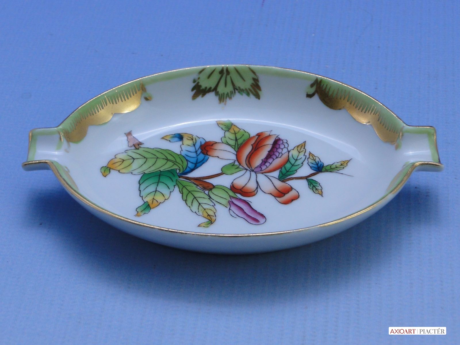 [0C495/VTR-15] Hibátlan állapotú, Viktória mintás herendi porcelán tál, tálka, hamutartó. Alján kék herendi jelzés: HEREND HUNGARY Formaszám: 7784 Mélynyomással: HEREND Szélesség: 7.5 cm Hosszúság: 11.4 cm Súly: 0.053 kg