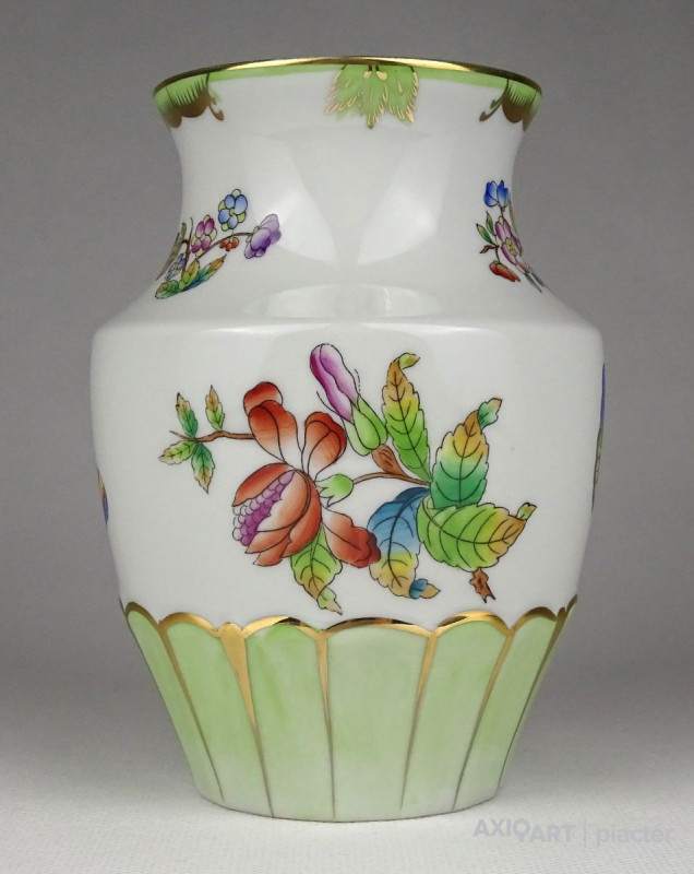 [1L640/BX-8] Hibátlan állapotú, Viktória mintás Herendi porcelán váza, díszváza. Alján kék Herendi jelzés: HEREND HUNGARY Magasság: 14 cm Szélesség: 10 cm Súly: 0.335 kg
