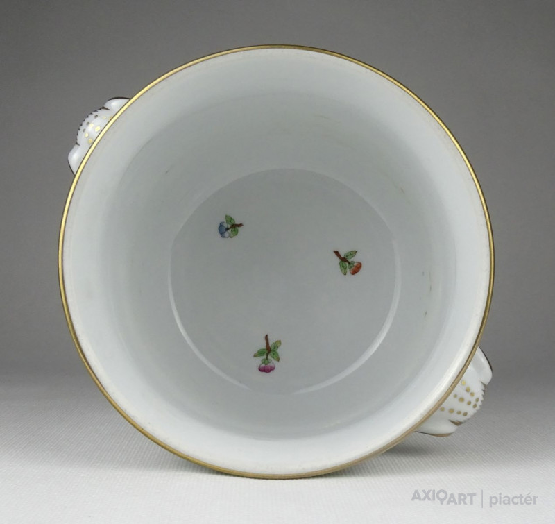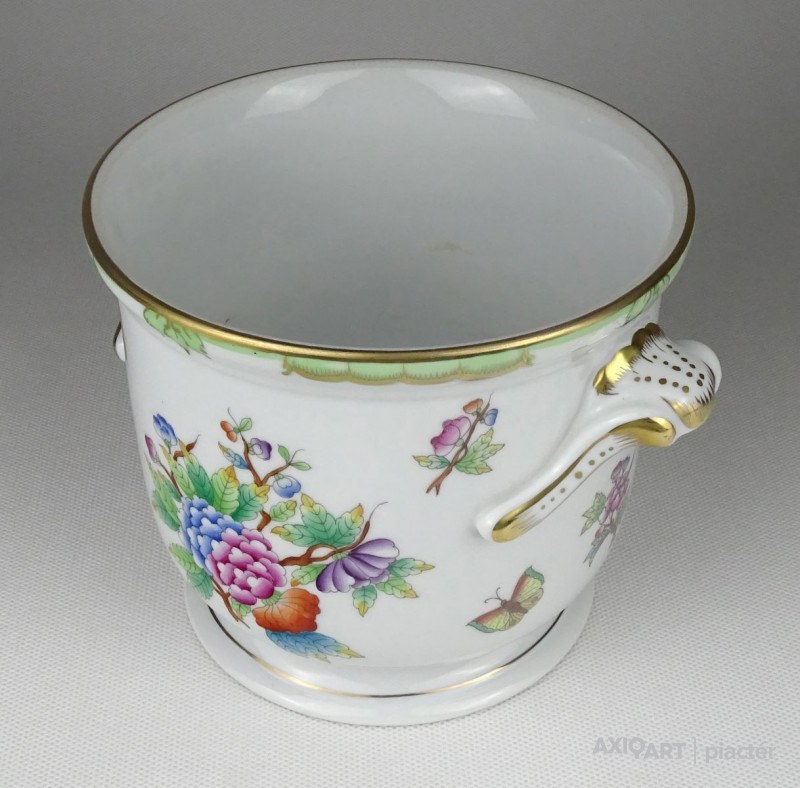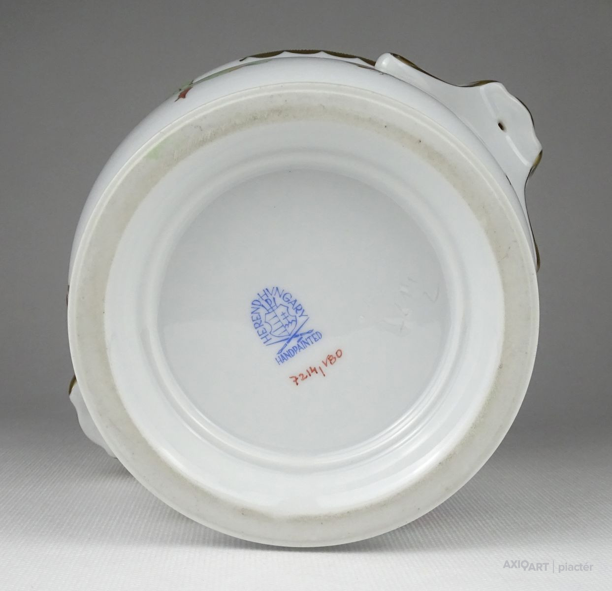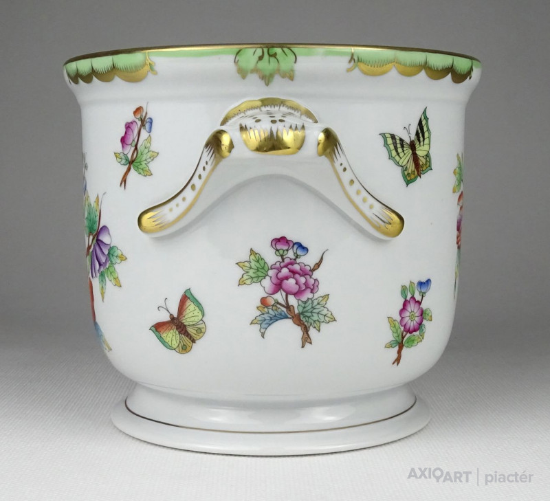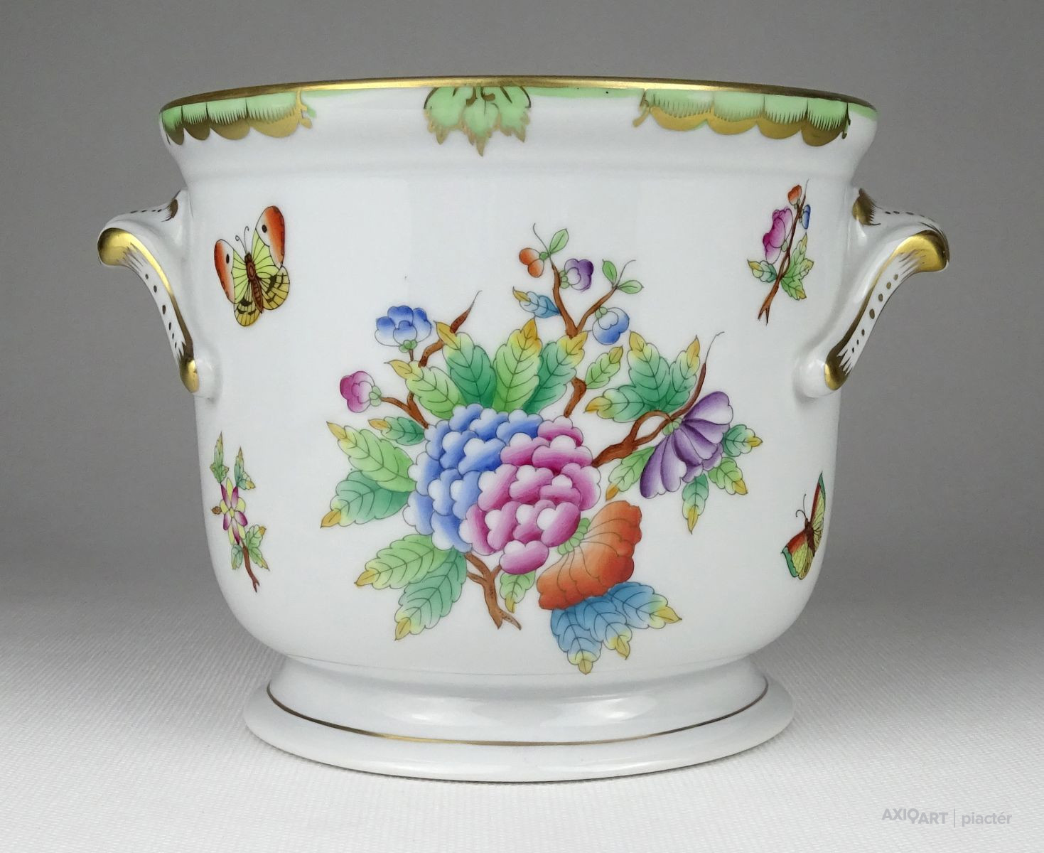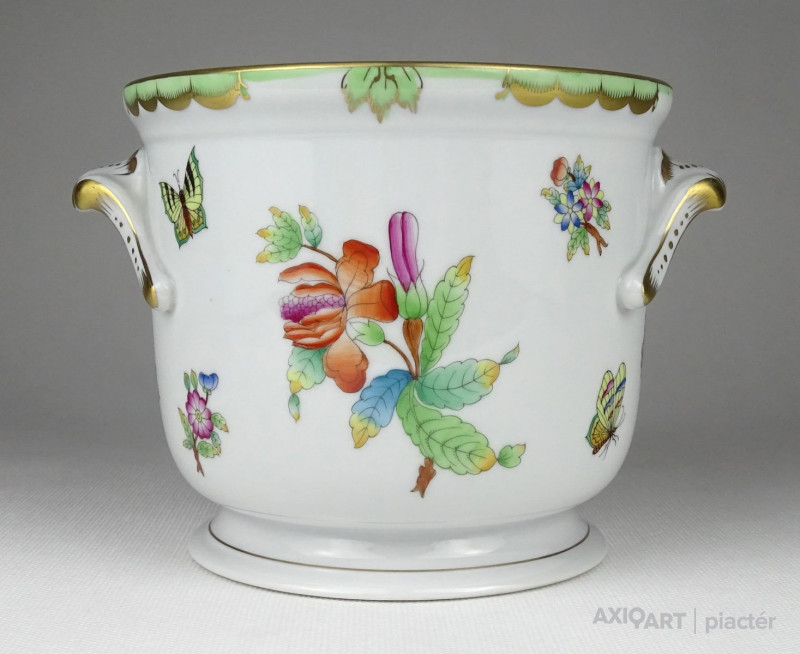 [1Q665/BX-8] Hibátlan állapotú, aranyozott, Viktória mintás porcelán kaspó. Alján kék Herendi jelzés: HEREND HUNGARY HANDPAINTED Mélynyomással: HEREND Formaszám pirossal: 7214/VBO Aranyozása hibátlan, ajándékba adható! Magasság: 12 cm Szélesség: 14 cm Hosszúság: 17 cm Súly: 0.62 kg