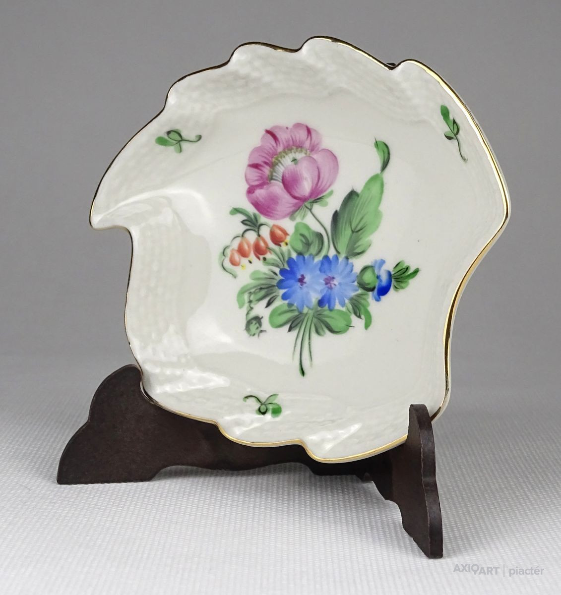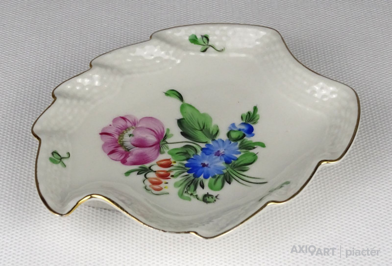 Virág mintás Herendi levél alakú porcelán tálka hamutál