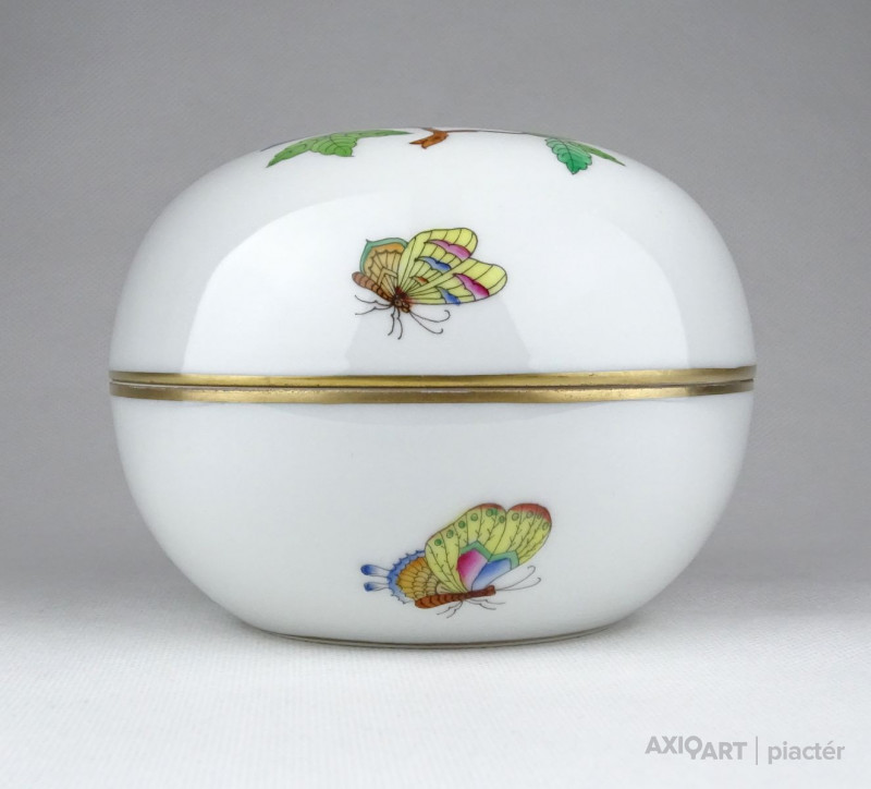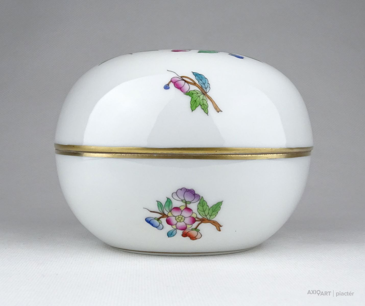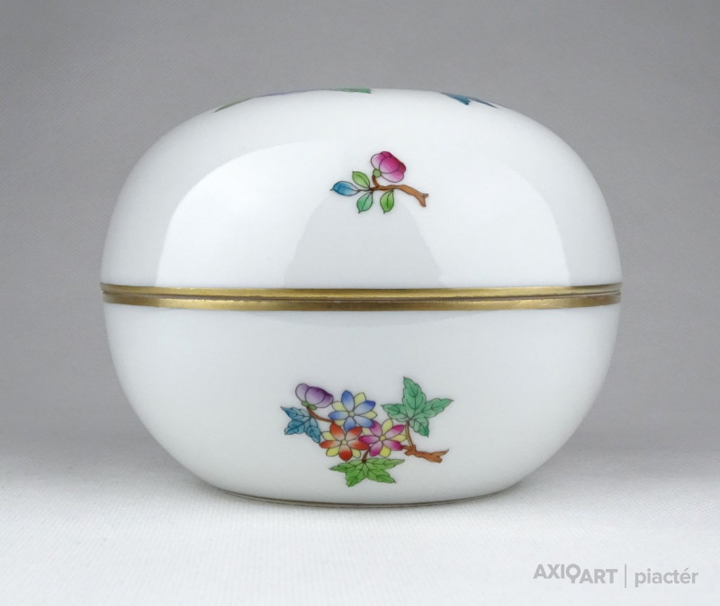 Hibátlan állapotú, jelzett, nagyméretű, aranyozott, kézzel festett, virág mintás Herendi porcelán bonbonier. Teljesen hibátlan, azonnal ajándékba adható állapotban van.