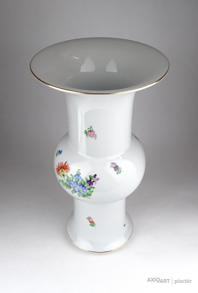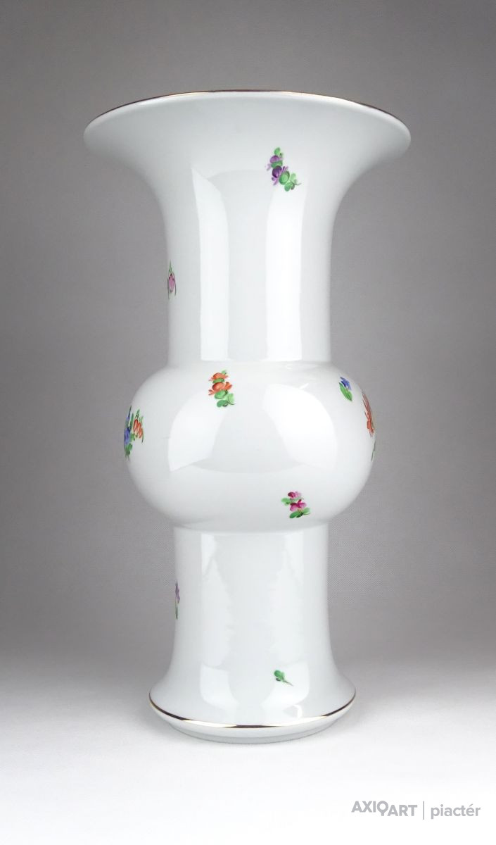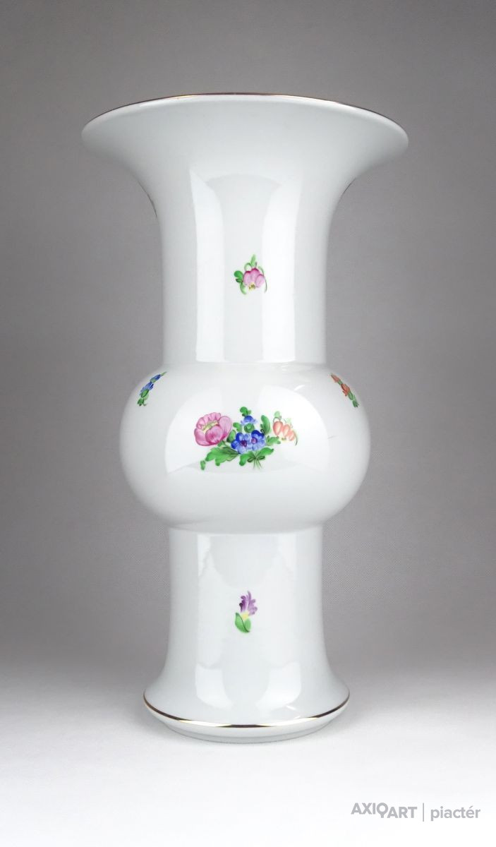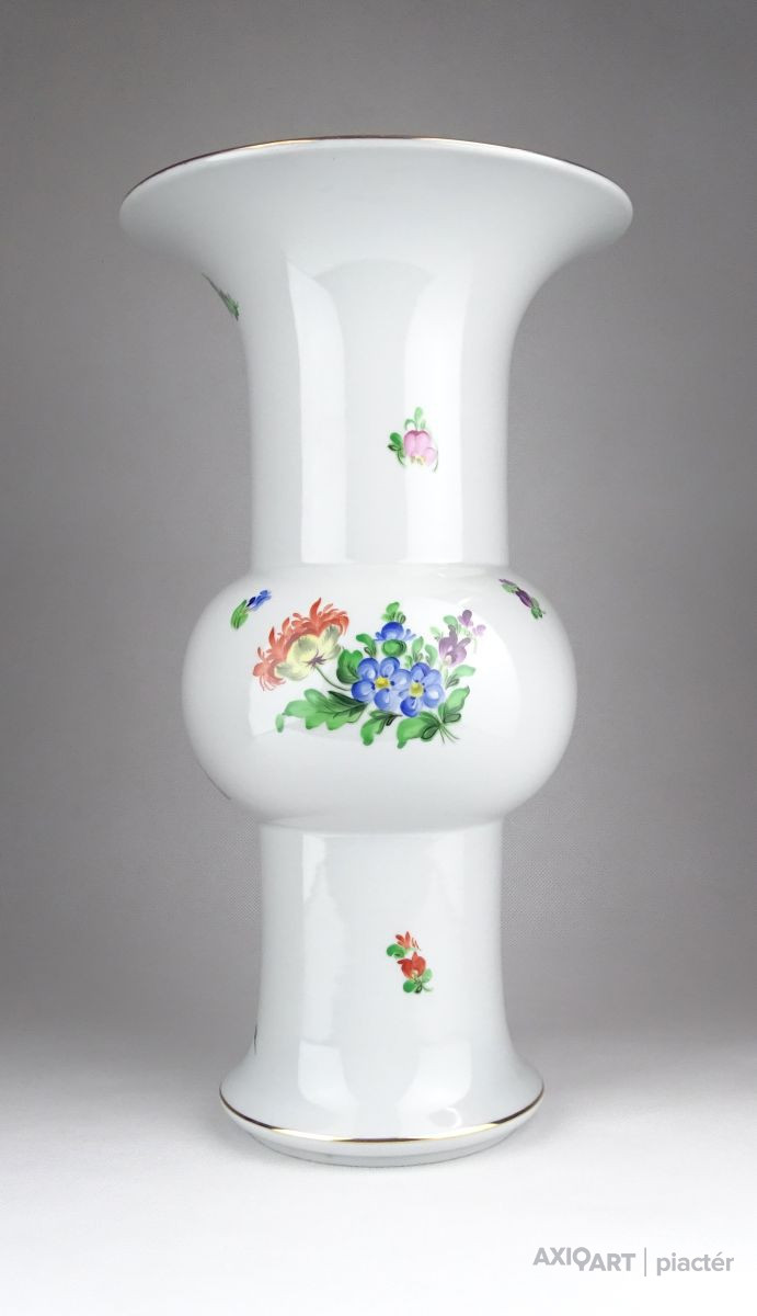 [0Y007/BX-8] Hibátlan állapotú, nagyméretű virágmintás Herendi porcelán váza, díszváza. Alján kék Herendi ecsetes jelzés: HEREND Mélynyomással: HEREND Formaszám: 6651 Magasság: 35 cm Szélesség: 20 cm Súly: 1.97 kg