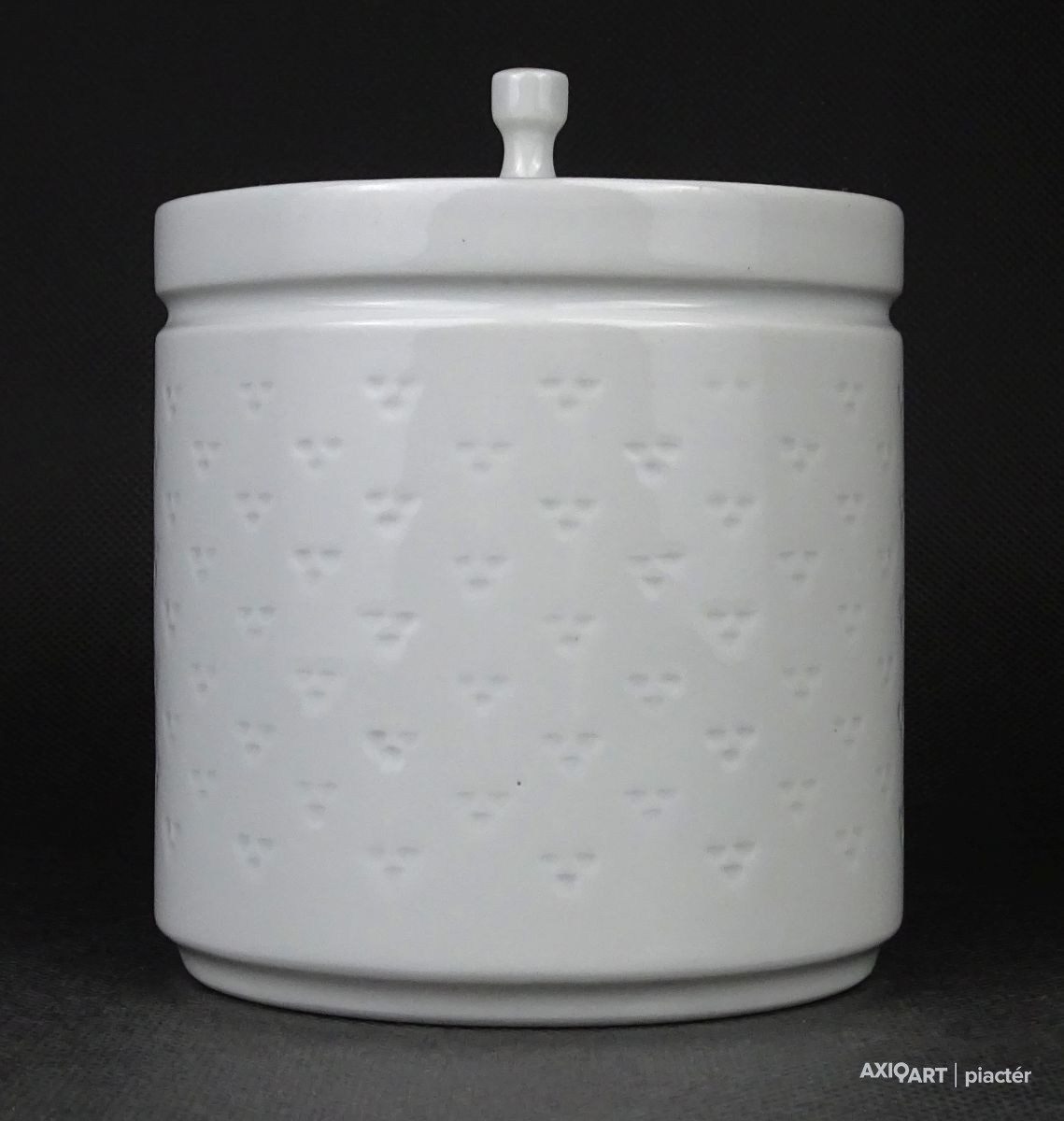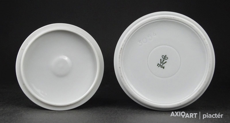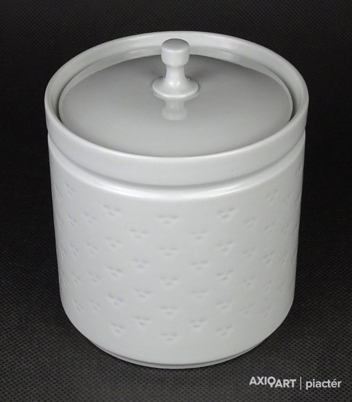 [1O662/X102] Régi, hibátlan állapotú, rizsszem díszes porcelán tégely, porcelán bonbonier. Alján zöld koronás Wallendorf porcelán márkajelzés: W 1764 Formaszám: 3054 Magasság: 13 cm Szélesség: 10.5 cm Súly: 0.395 kg