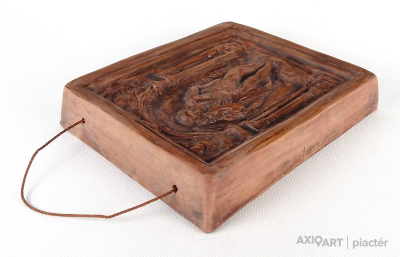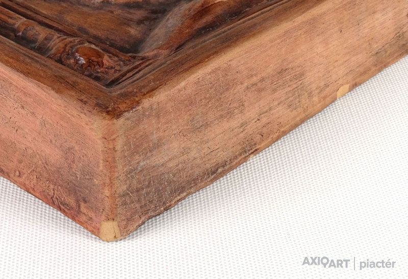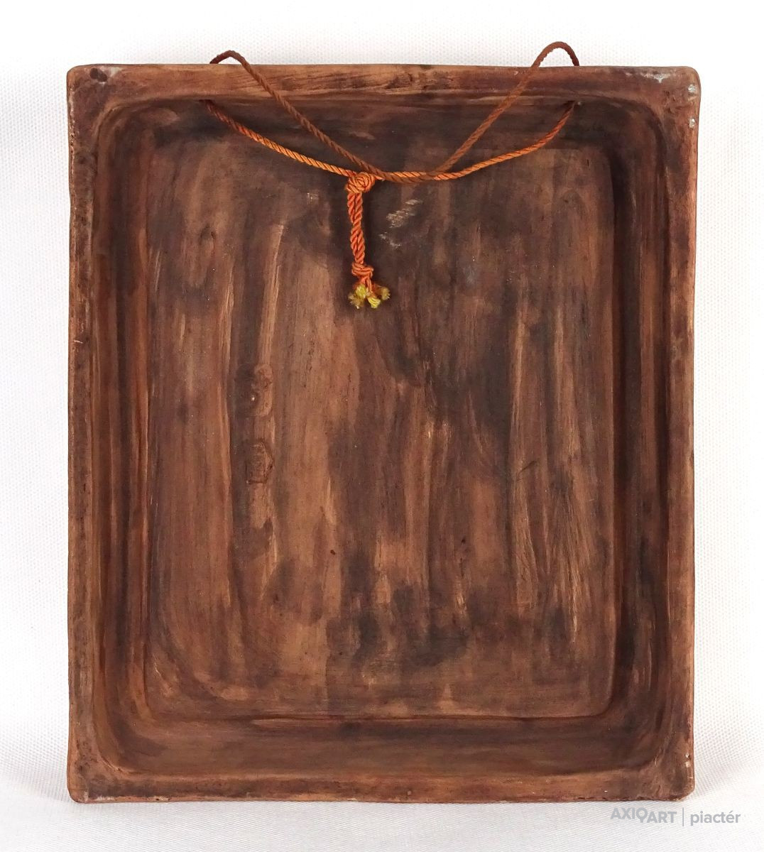 [1J618/X267] Szép állapotú, akasztási lehetőséggel rendelkező jelzett kerámia múzeumi másolat, kerámia fali dísz. Egyik sarkán lepattanás található, lásd fotó. Rajta felirat: WINTER Hátoldalán jelzés, lásd fotó: Magasság: 26.5 cm Szélesség: 22.5 cm Súly: 1.655 kg
